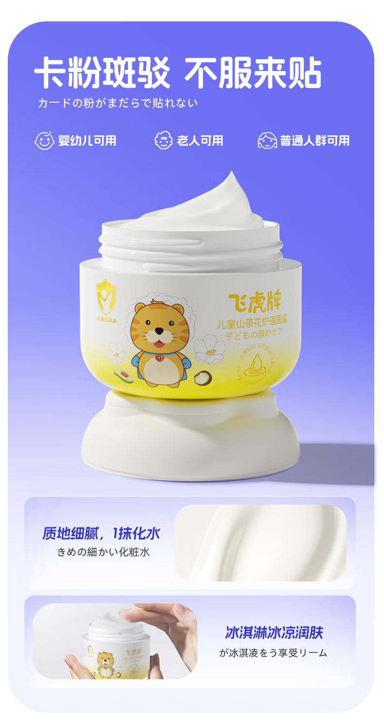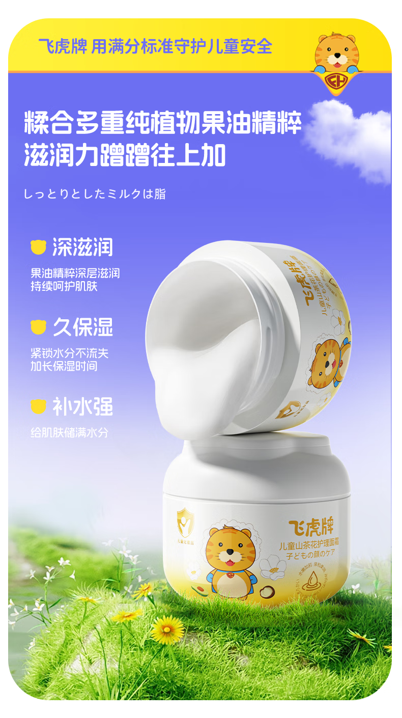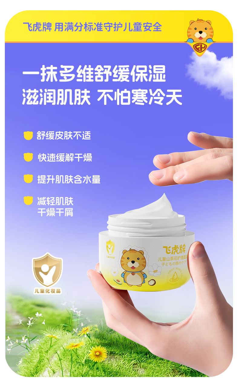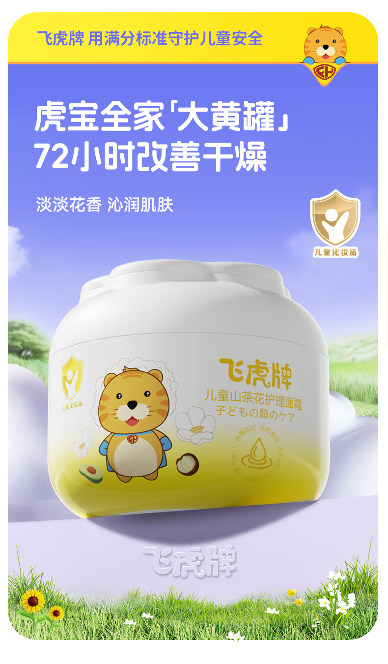 飞虎牌儿童山茶花面霜乳0-3-6-12岁以上秋冬季保湿补水婴儿宝宝50g