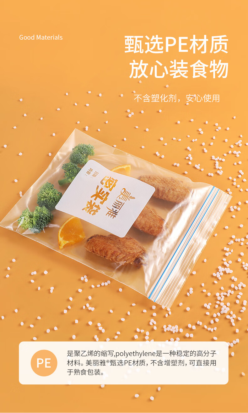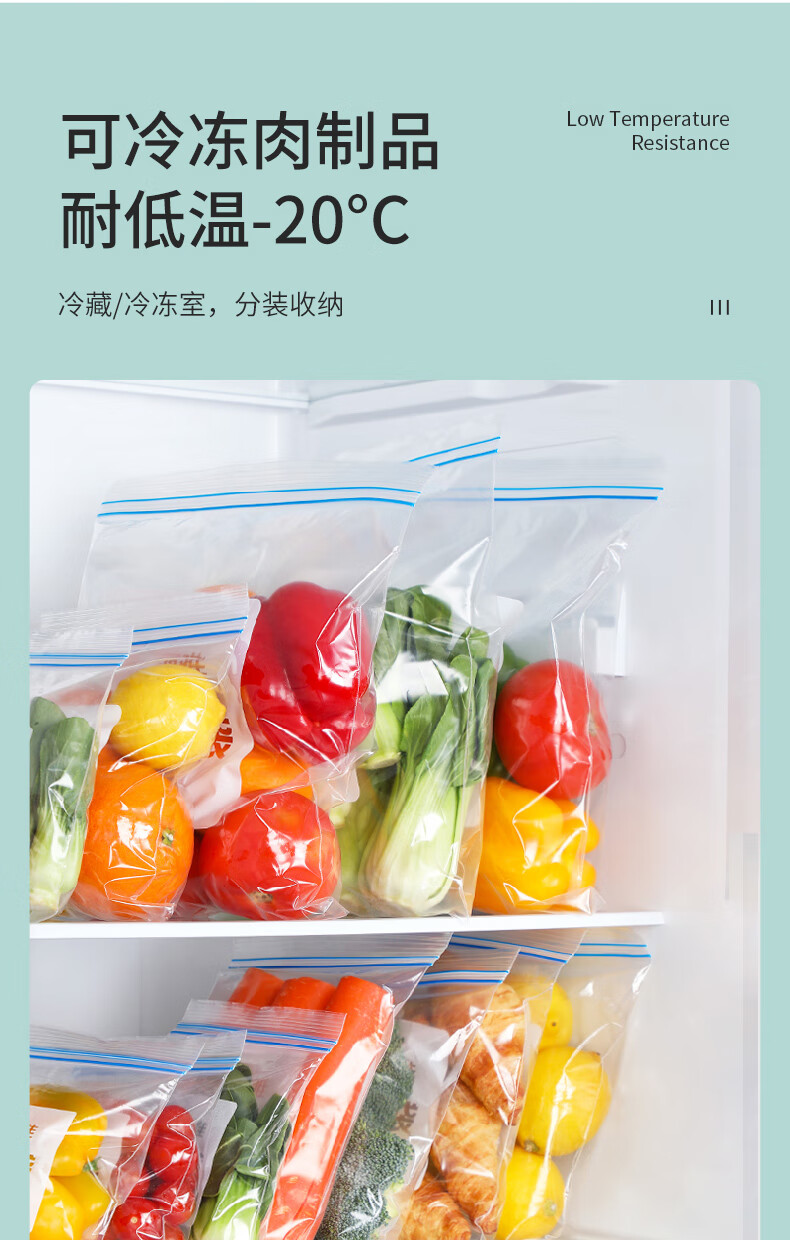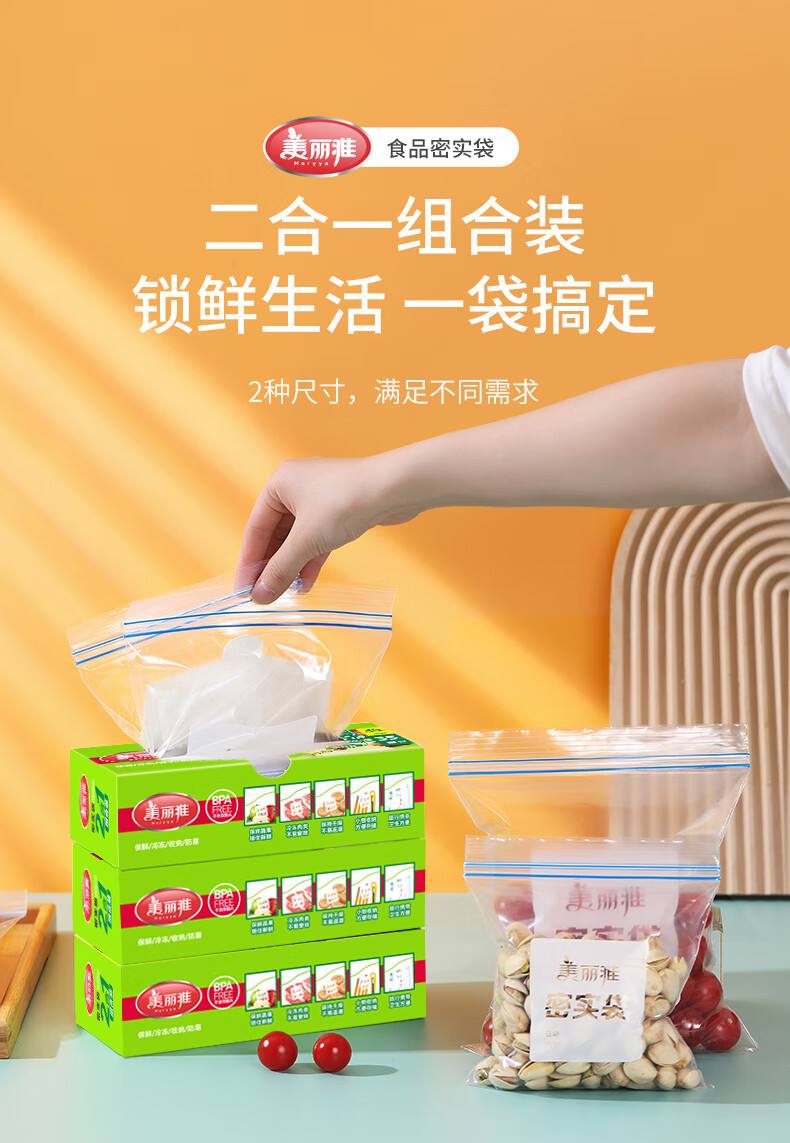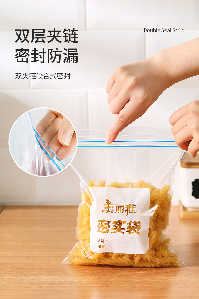 美丽雅(MARYYA)收纳袋 食品级加厚自封袋 家用厨房分装收纳袋防水防潮可微波炉 【小号35只+中号55只+大号20只】共110只