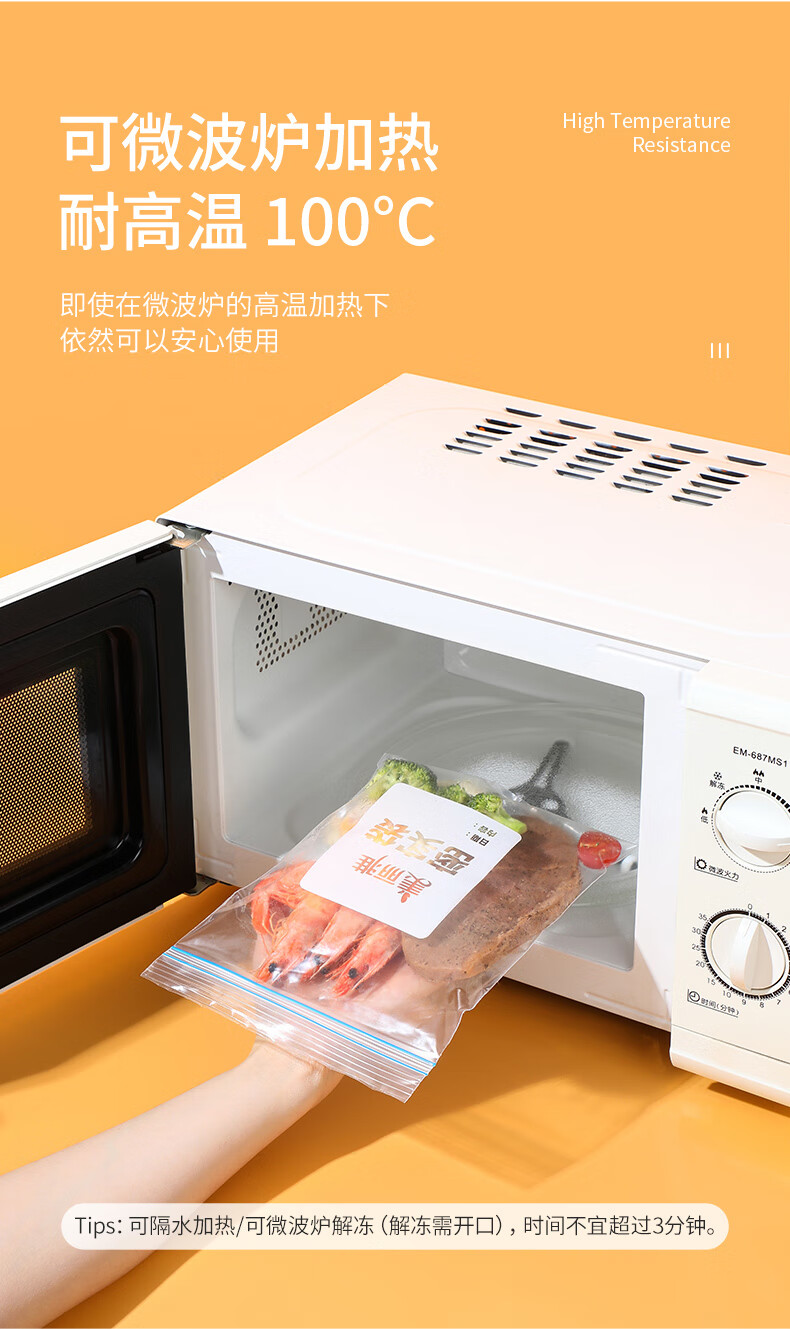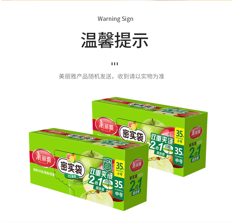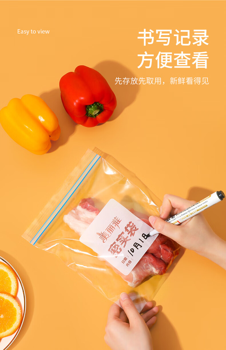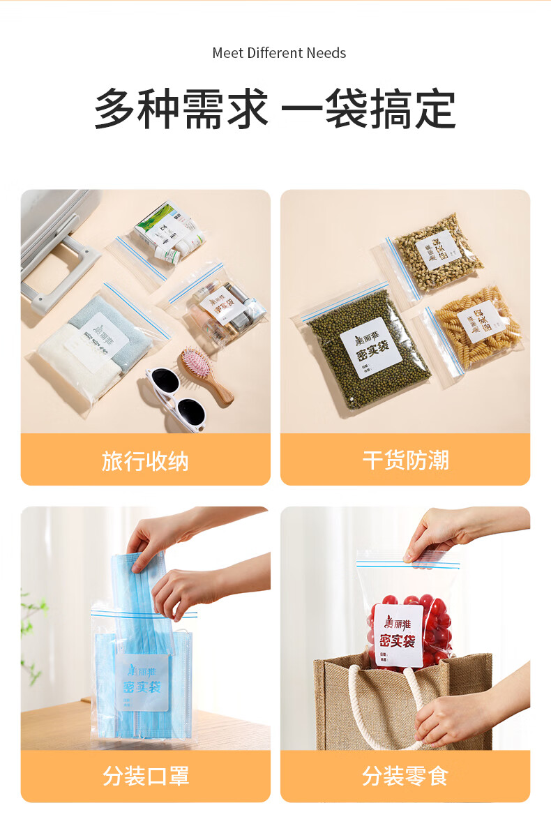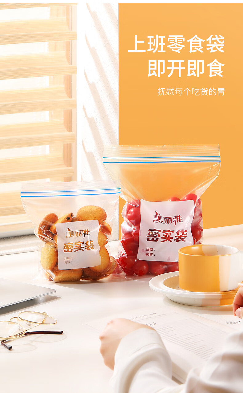 美丽雅(MARYYA)收纳袋 食品级加厚自封袋 家用厨房分装收纳袋防水防潮可微波炉 【小号35只+中号55只+大号20只】共110只
