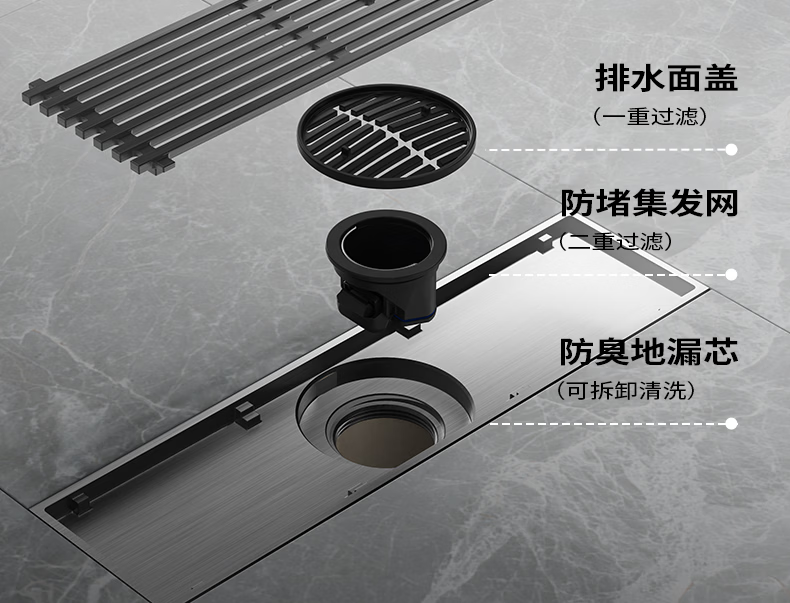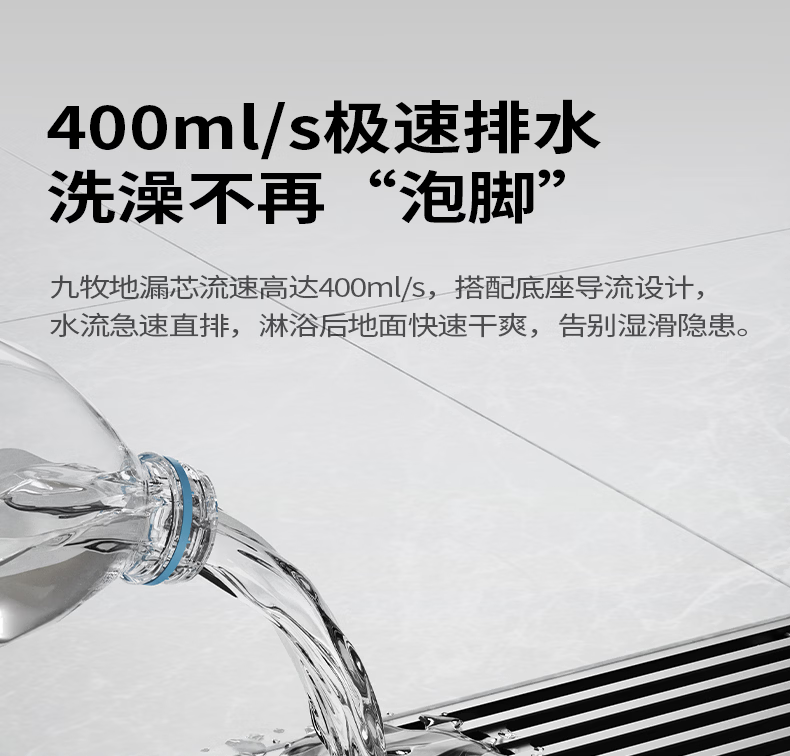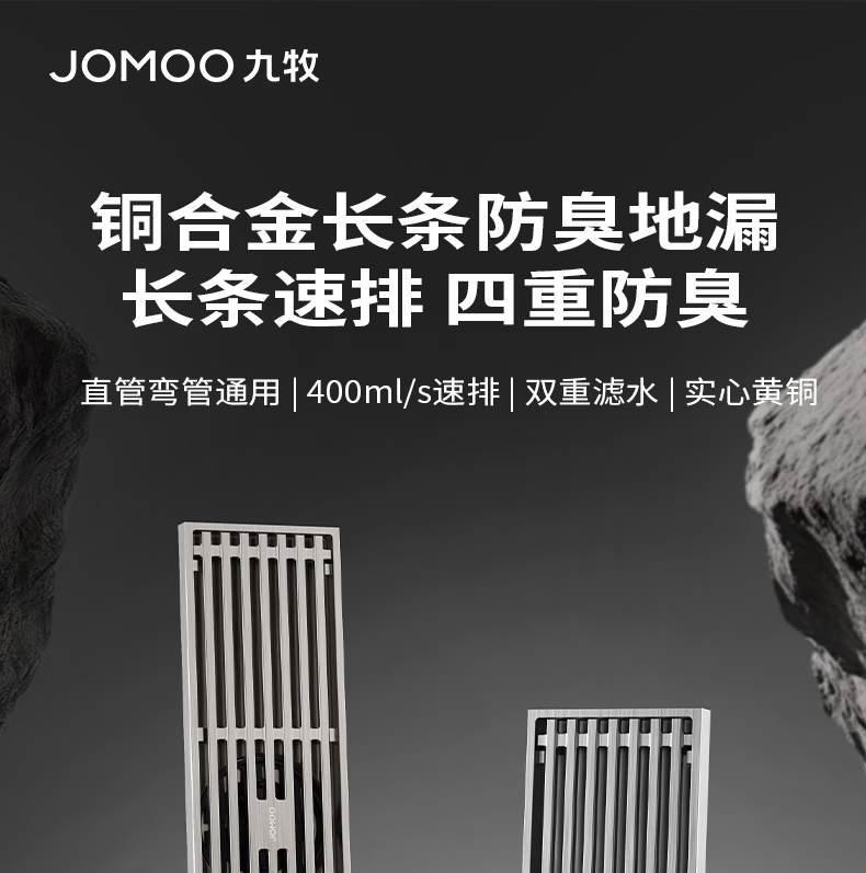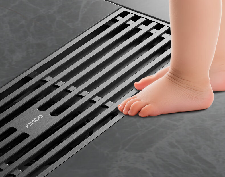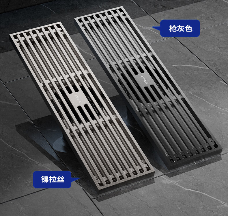 九牧地漏加长铜合金长条速排大流量防虫防反水防臭镍拉丝枪灰色92515