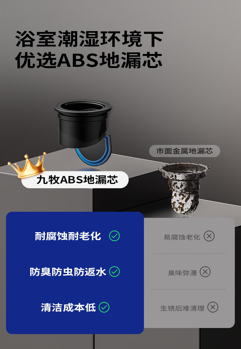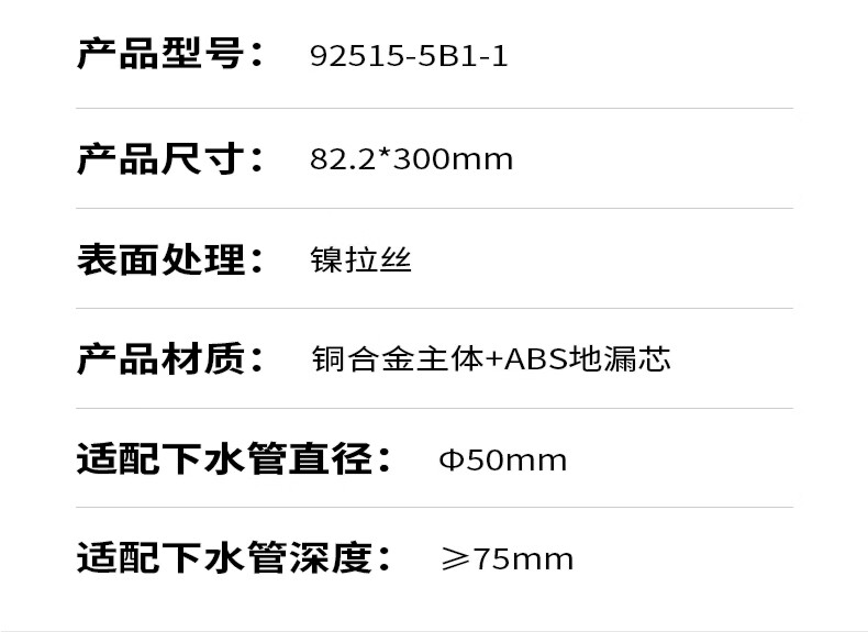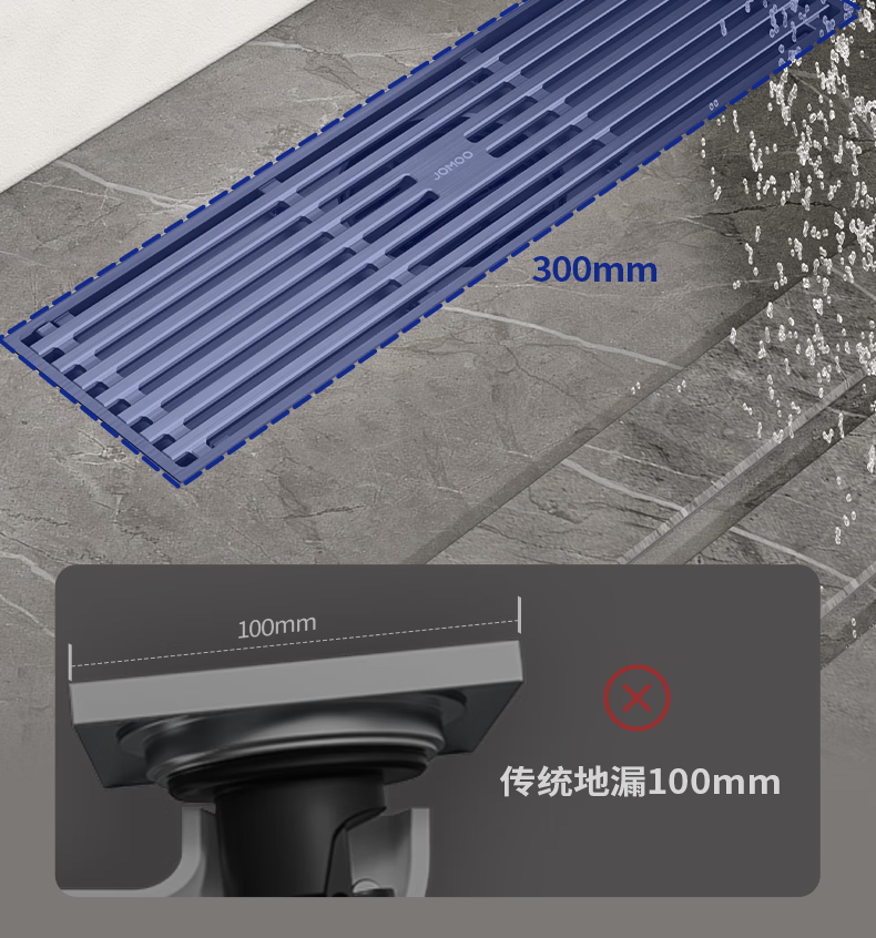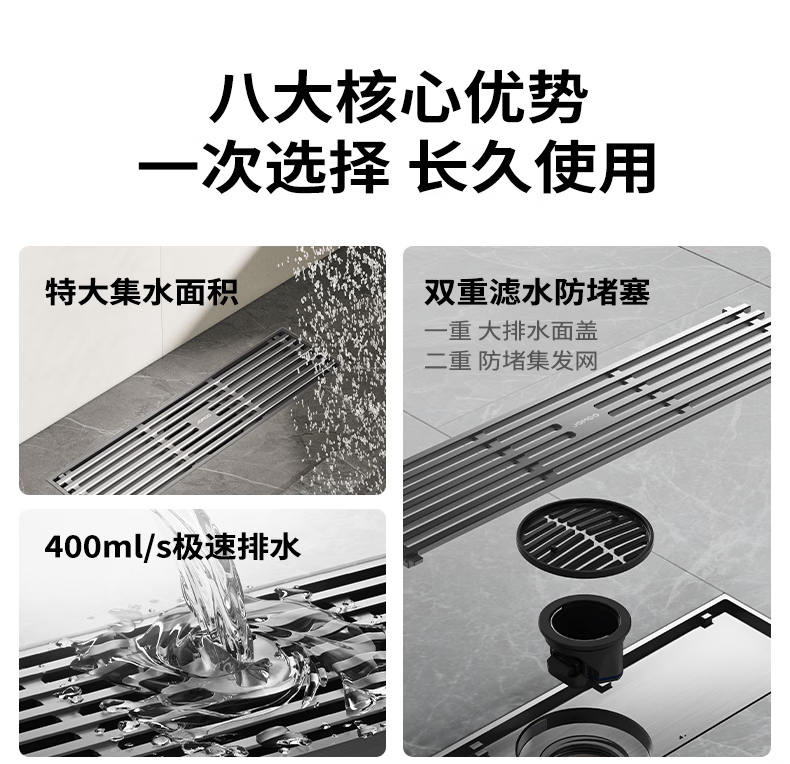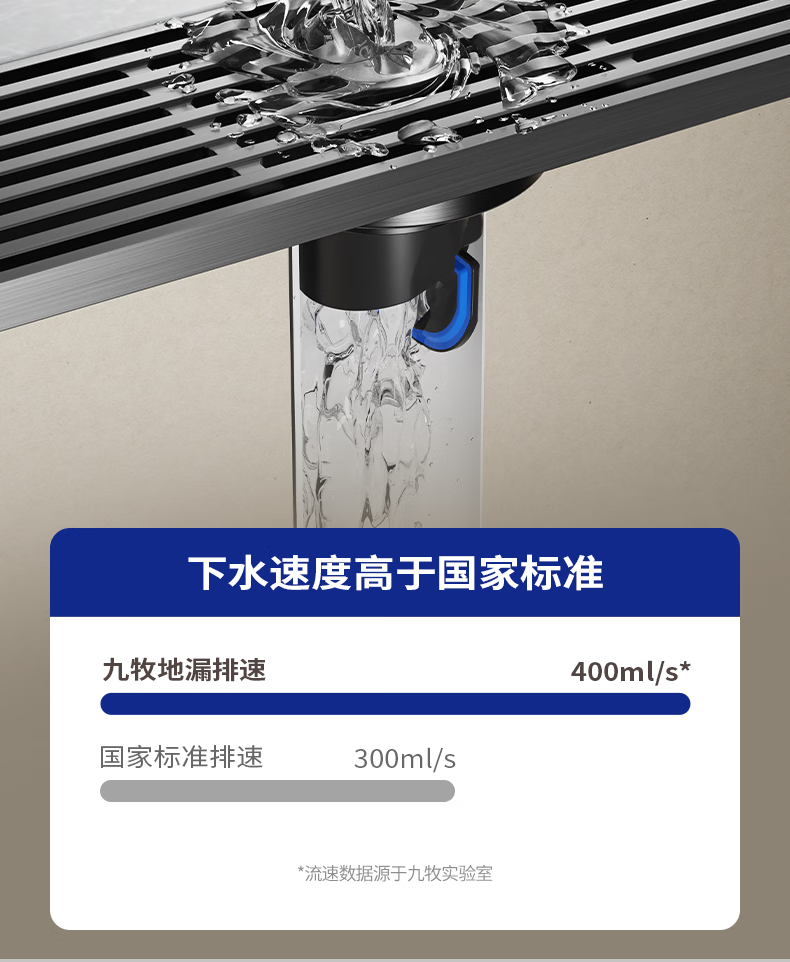 九牧地漏加长铜合金长条速排大流量防虫防反水防臭镍拉丝枪灰色92515
