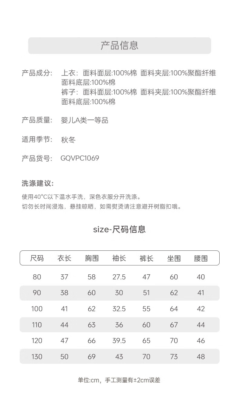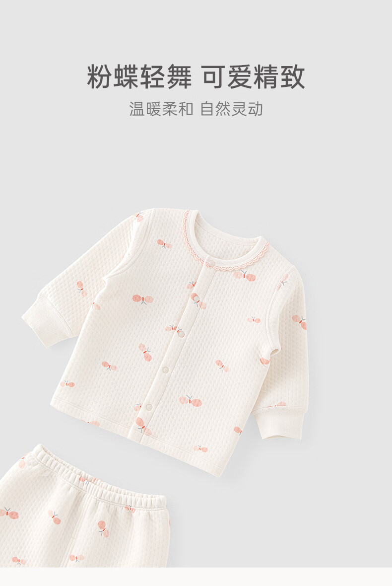乖奇熊秋冬季宝宝夹丝棉衣服裤子分体套装儿童长袖长裤婴幼儿保暖两件套 奶白蝴蝶飞呀 100