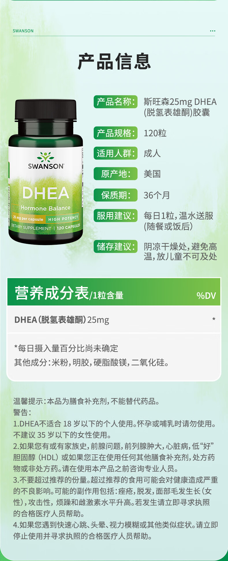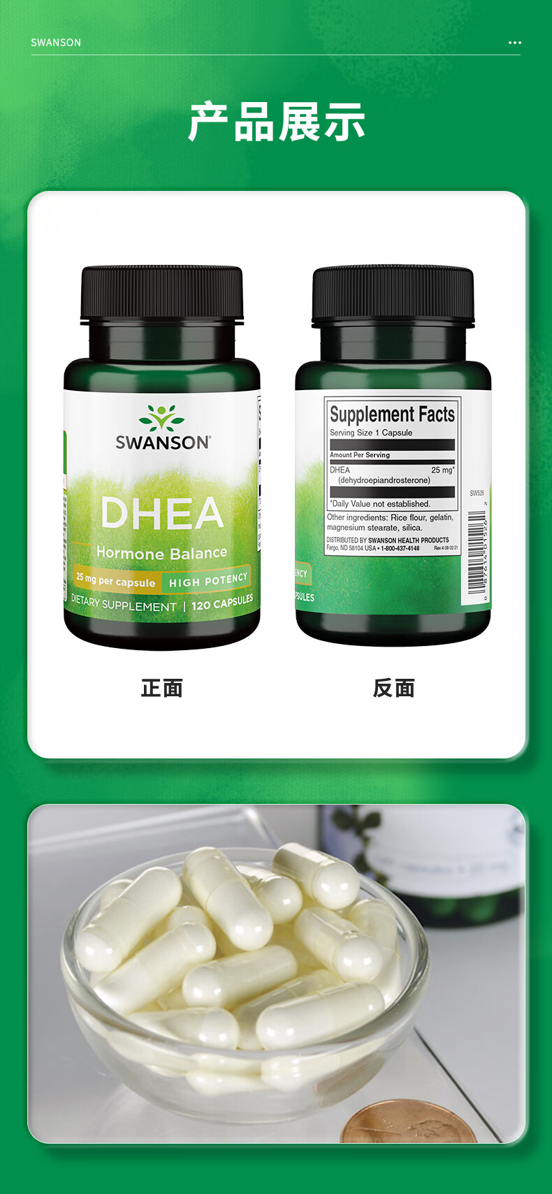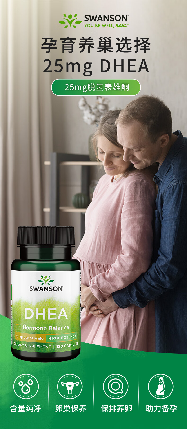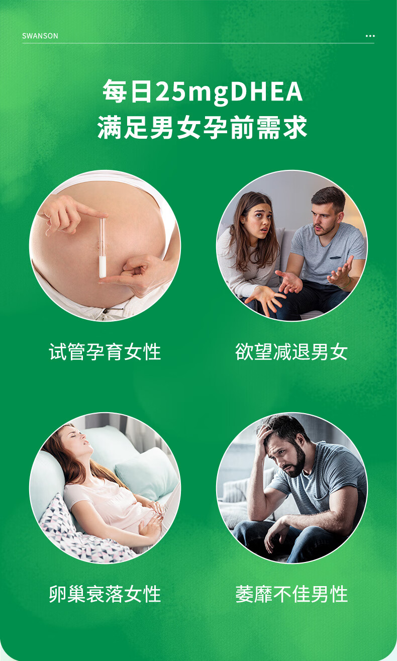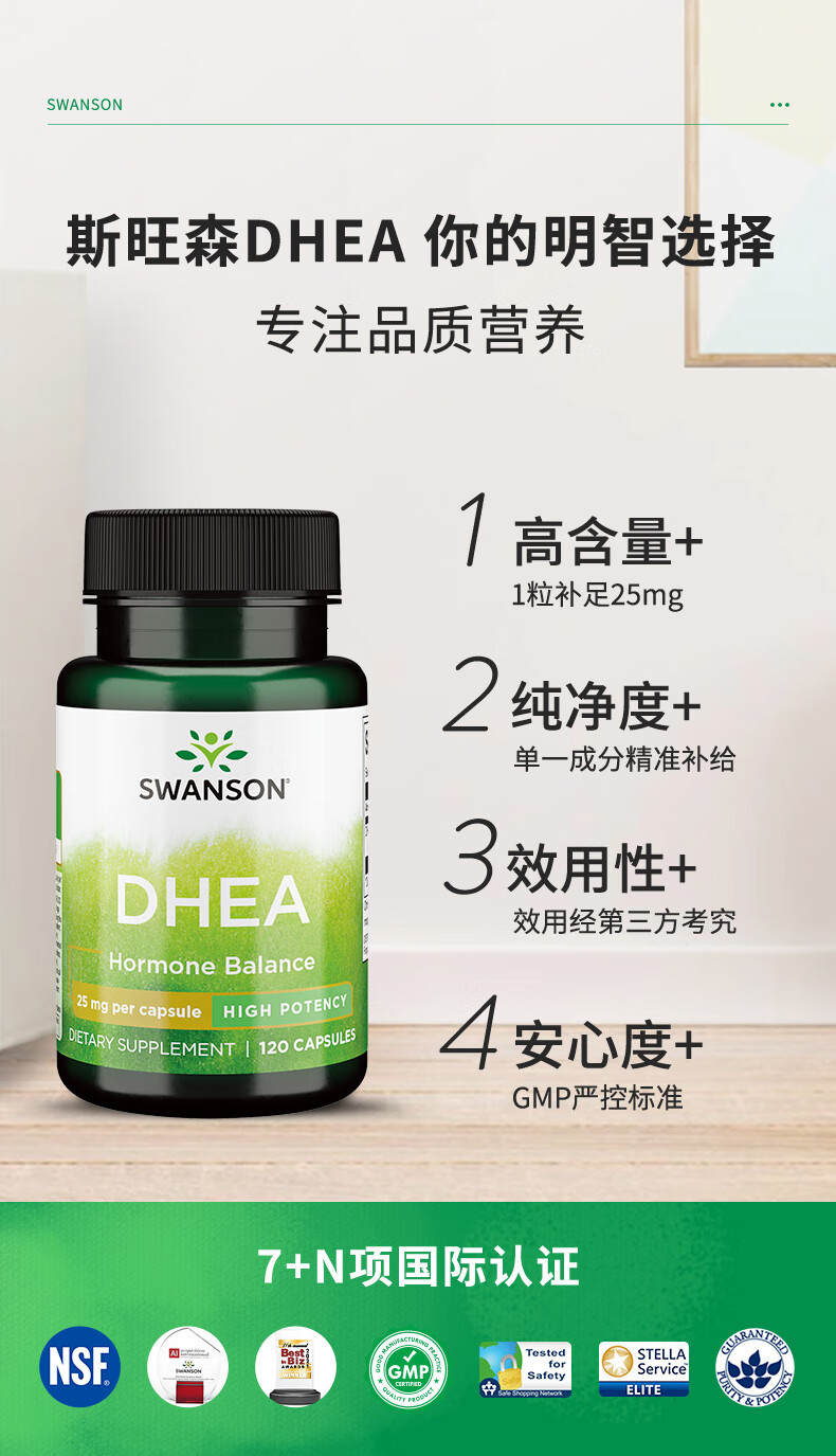斯旺森(SWANSON)女性高效DHEA备孕脱氢表雄酮胶囊 美国原装进口 DHEA脱氢表雄酮胶囊120粒