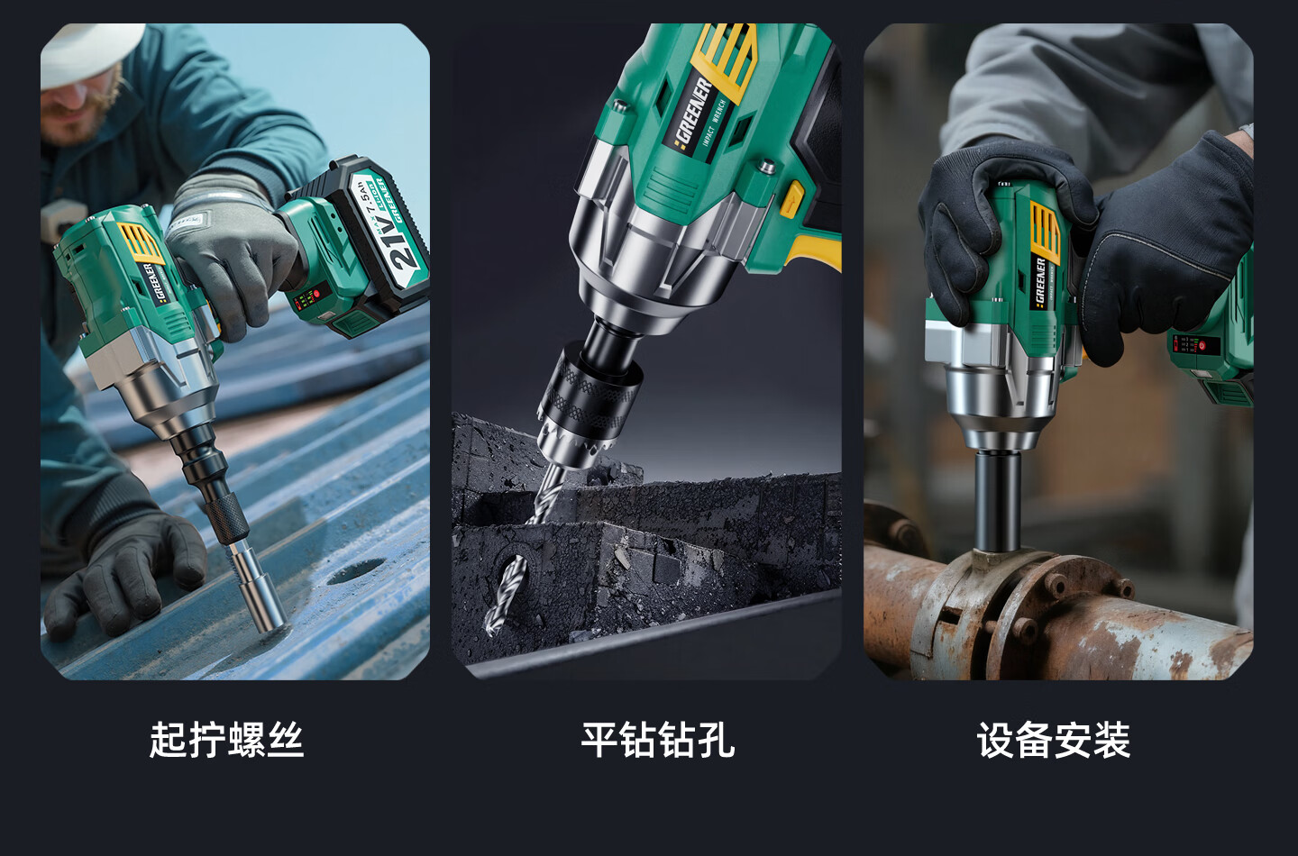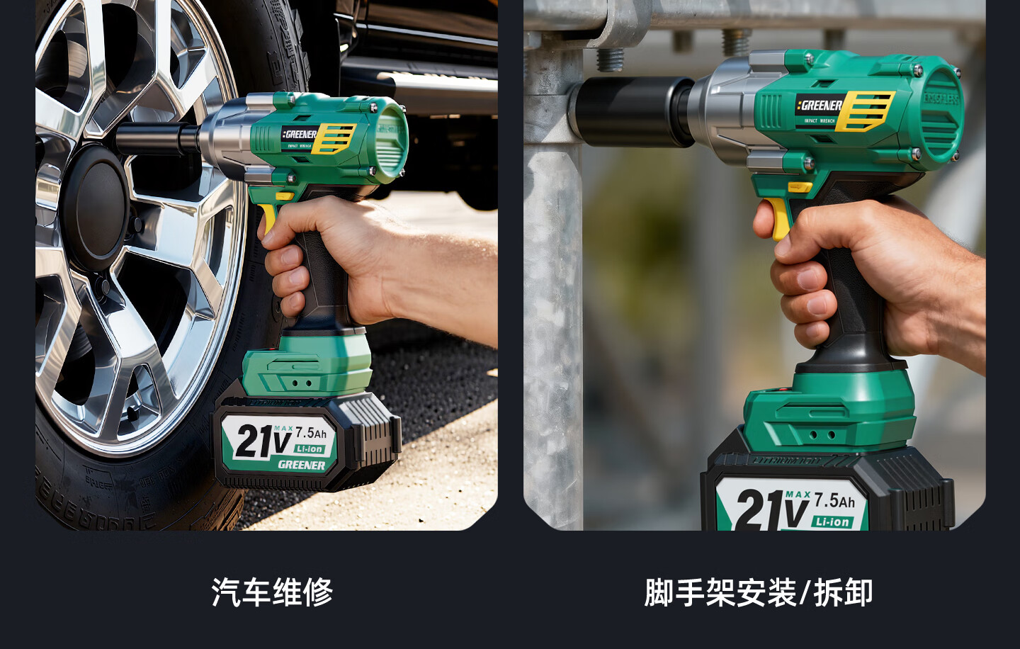 GREENER大扭力电动扳手无刷锂电冲击风炮轮胎汽修专用重型充电板工具 900N·m无刷至尊款【15节7.5Ah】一电一充+豪华53件套