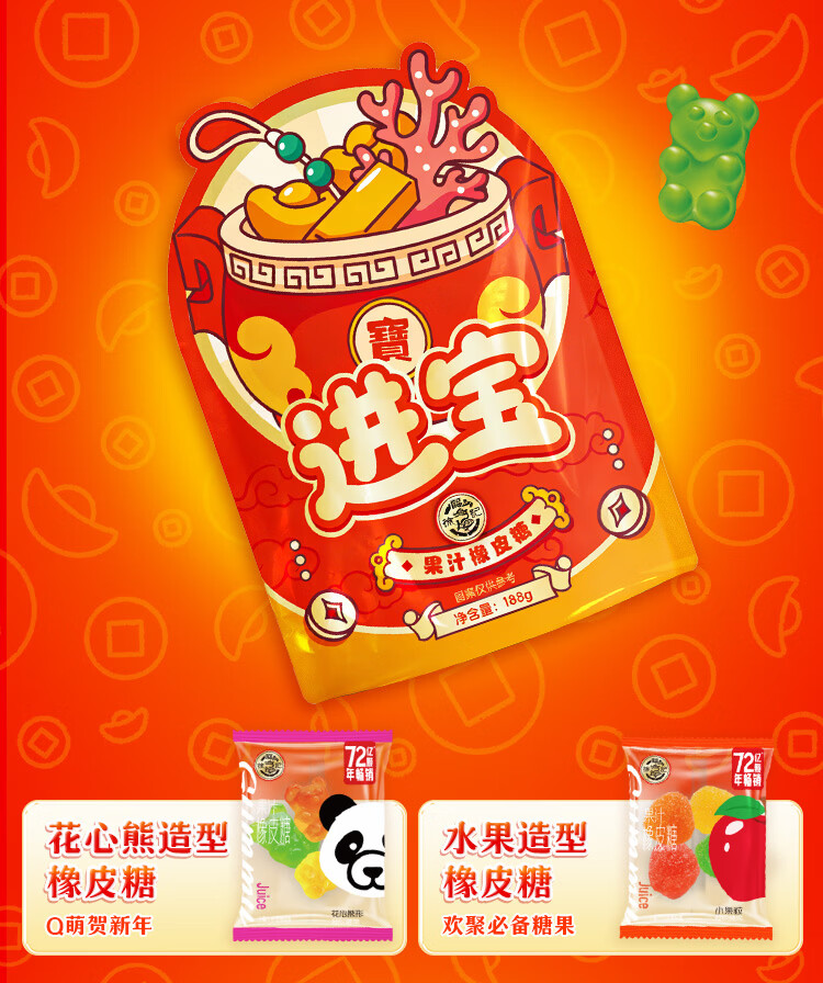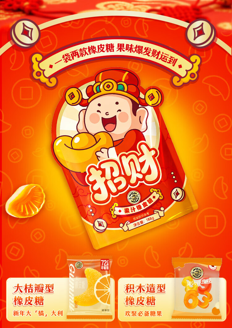 徐福记 招财新年氛围软糖188g 新年送礼 节日礼物喜庆喜礼 侯明昊推荐