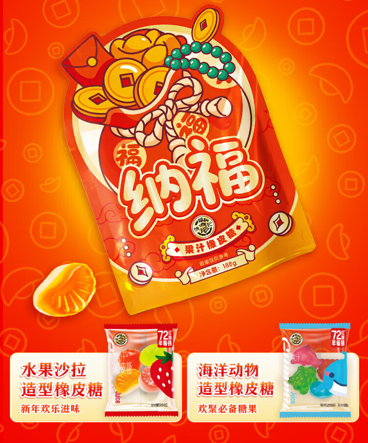 徐福记 纳福新年氛围软糖188g 新年礼物 节日送礼喜庆喜礼 侯明昊推荐