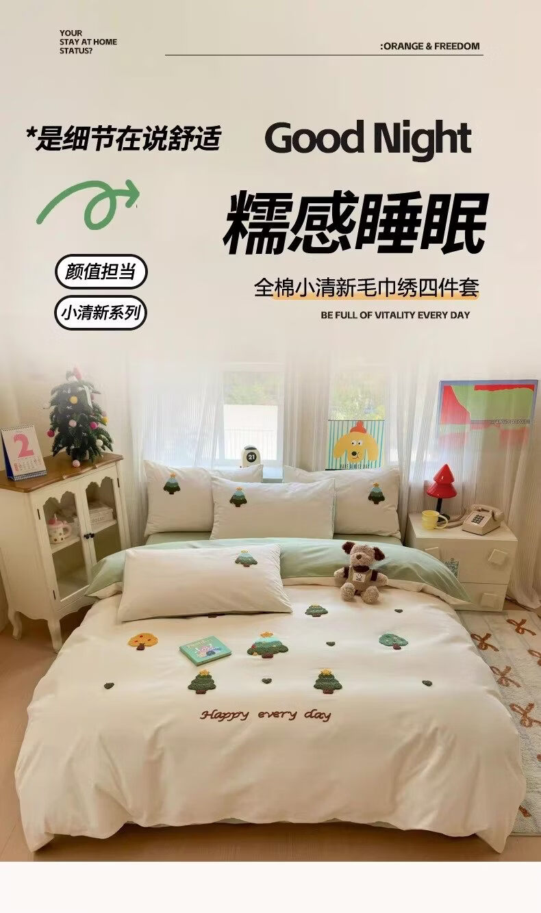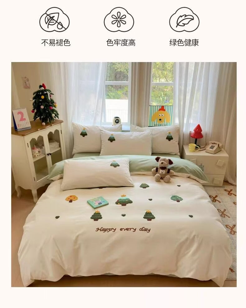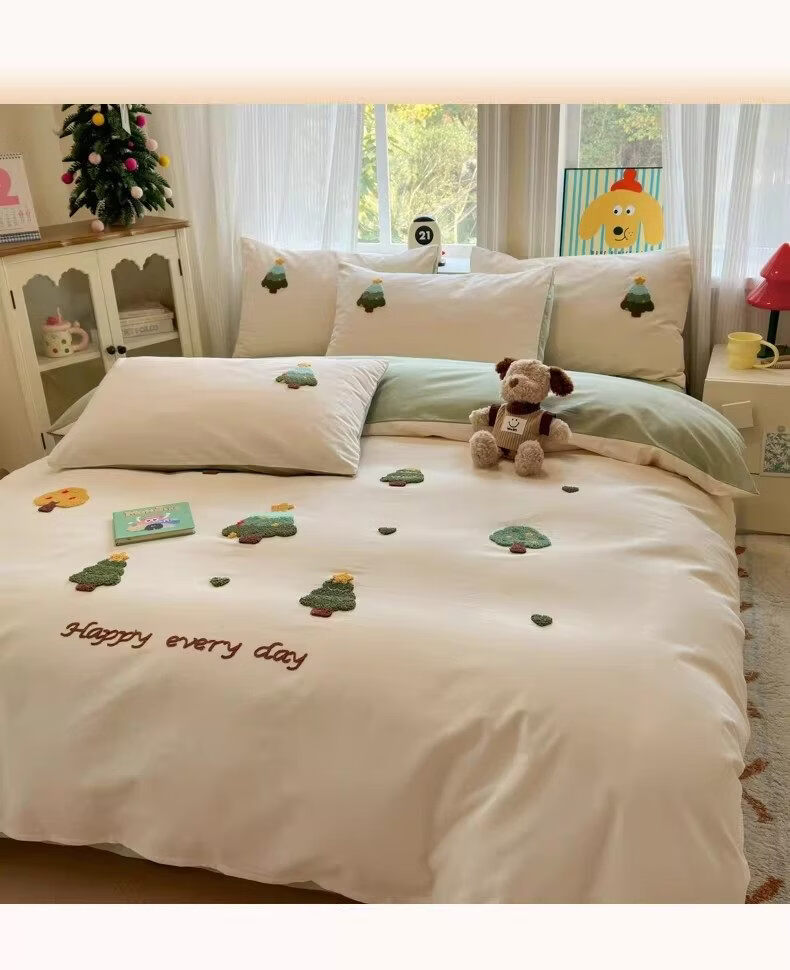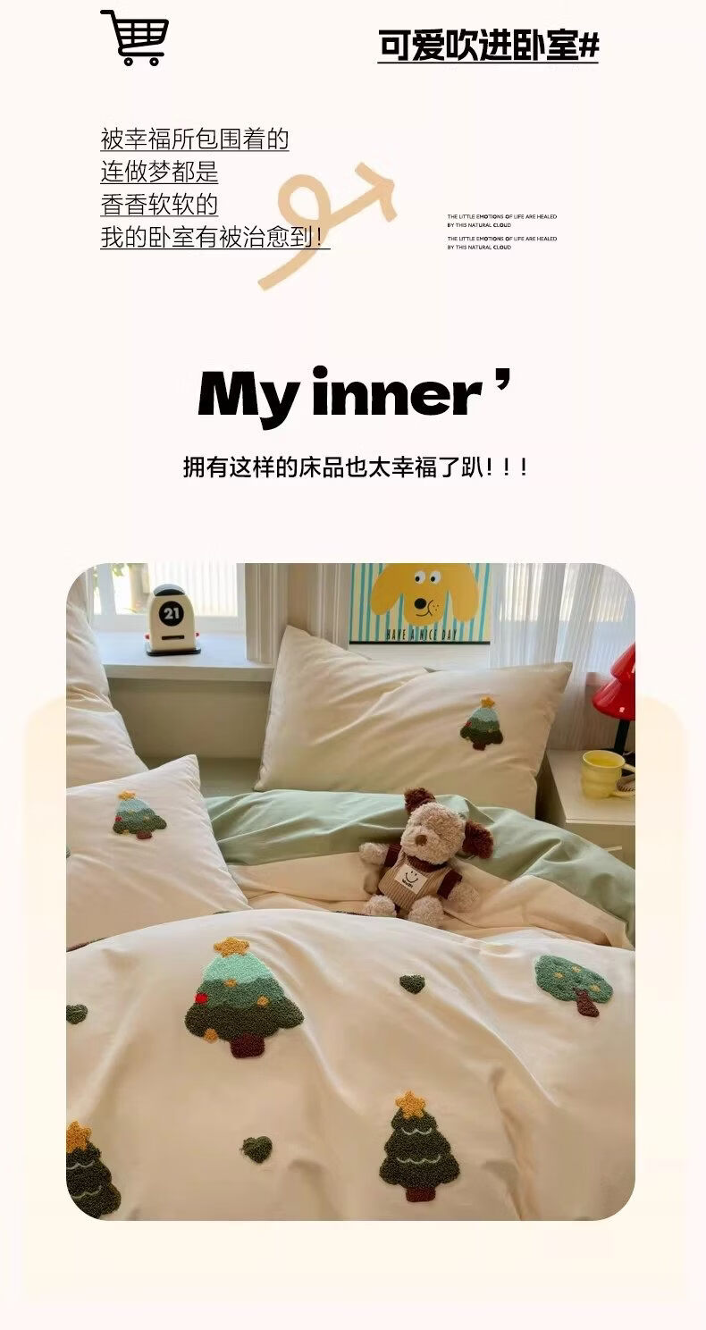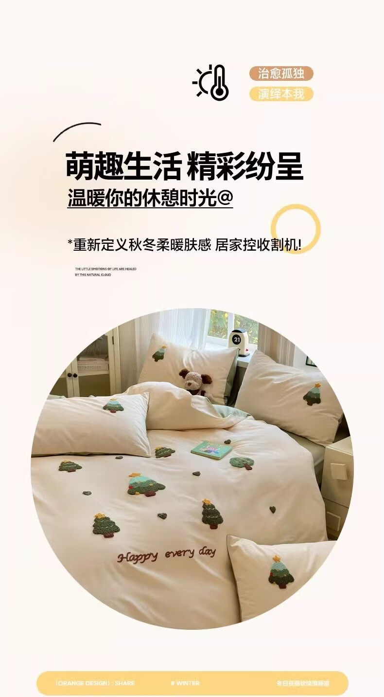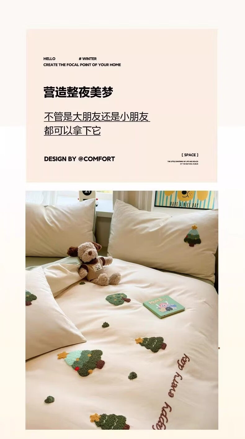猫人(MiiOW)卡通全棉加厚磨毛床上四件套秋冬纯棉学生宿舍单人被套床单三件套 圣诞心语【全棉亲肤丨柔软舒适】 1.2m 床单款 三件套-150x200cm被套