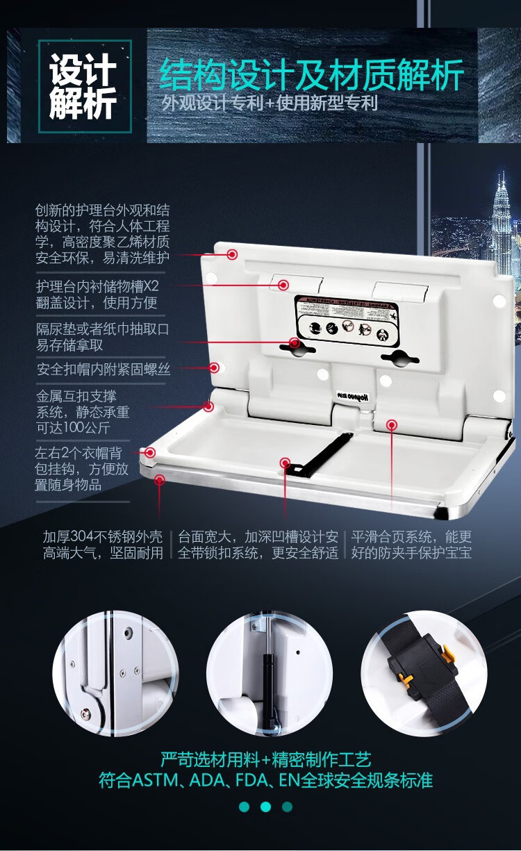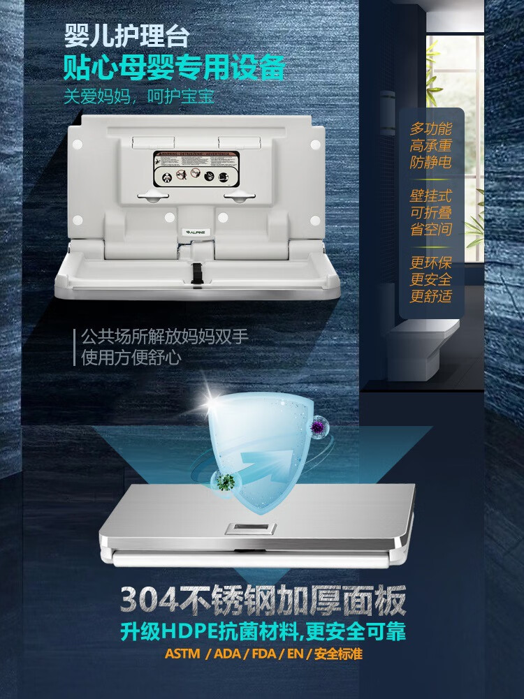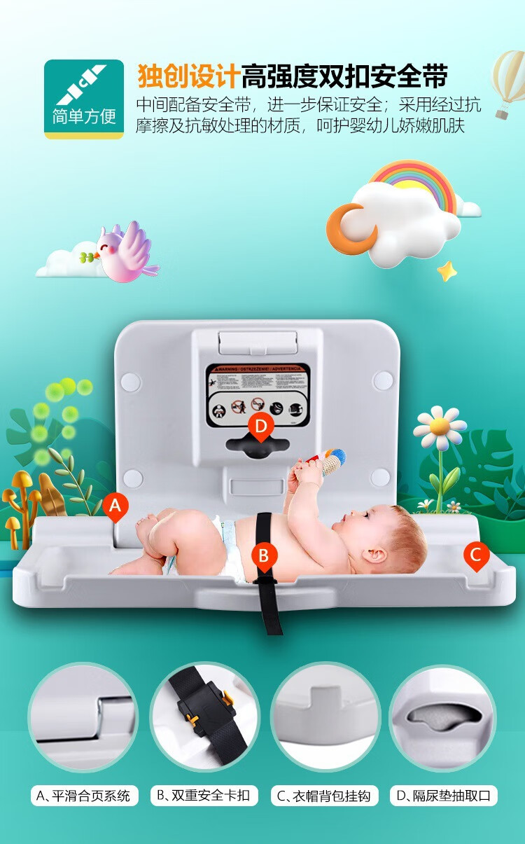 家文化(JIAWENHUA)第三卫生间婴儿护理台壁挂式儿童换衣桌折叠座椅母婴室换尿布台床 1104婴儿护理台(横款)半包不锈钢