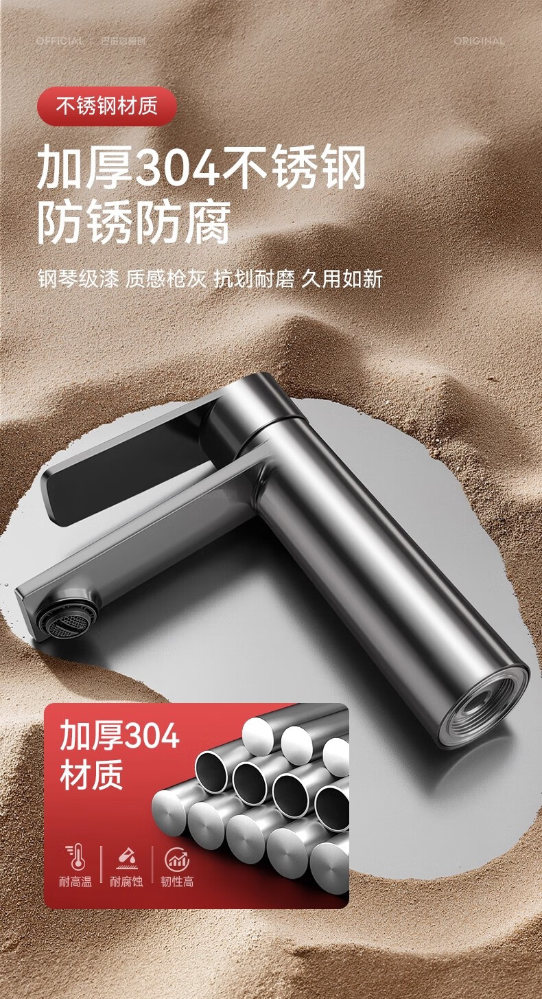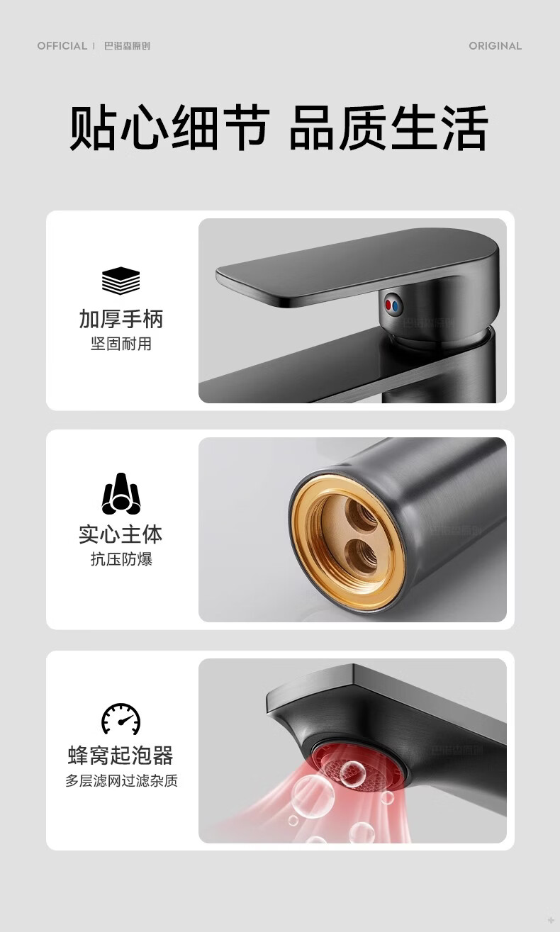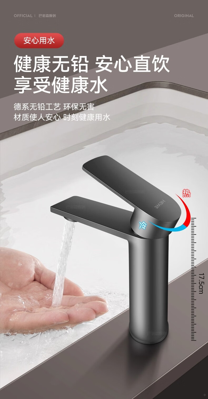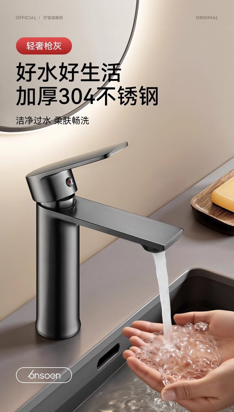睦格优品冷热面盆水龙头二合一家用卫生间浴室洗脸盆柜台盆洗漱台 轻奢灰【冷热双控】配80CM冷热管