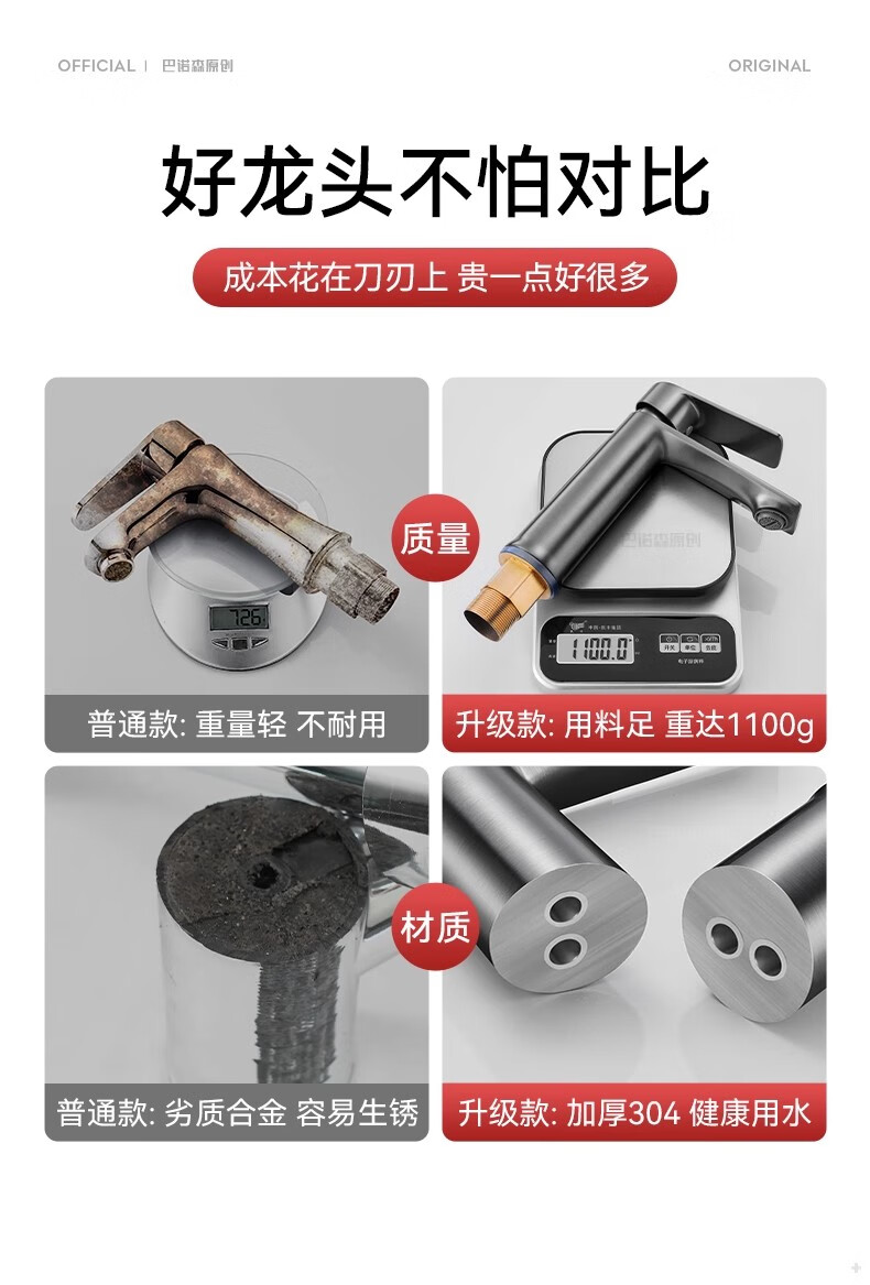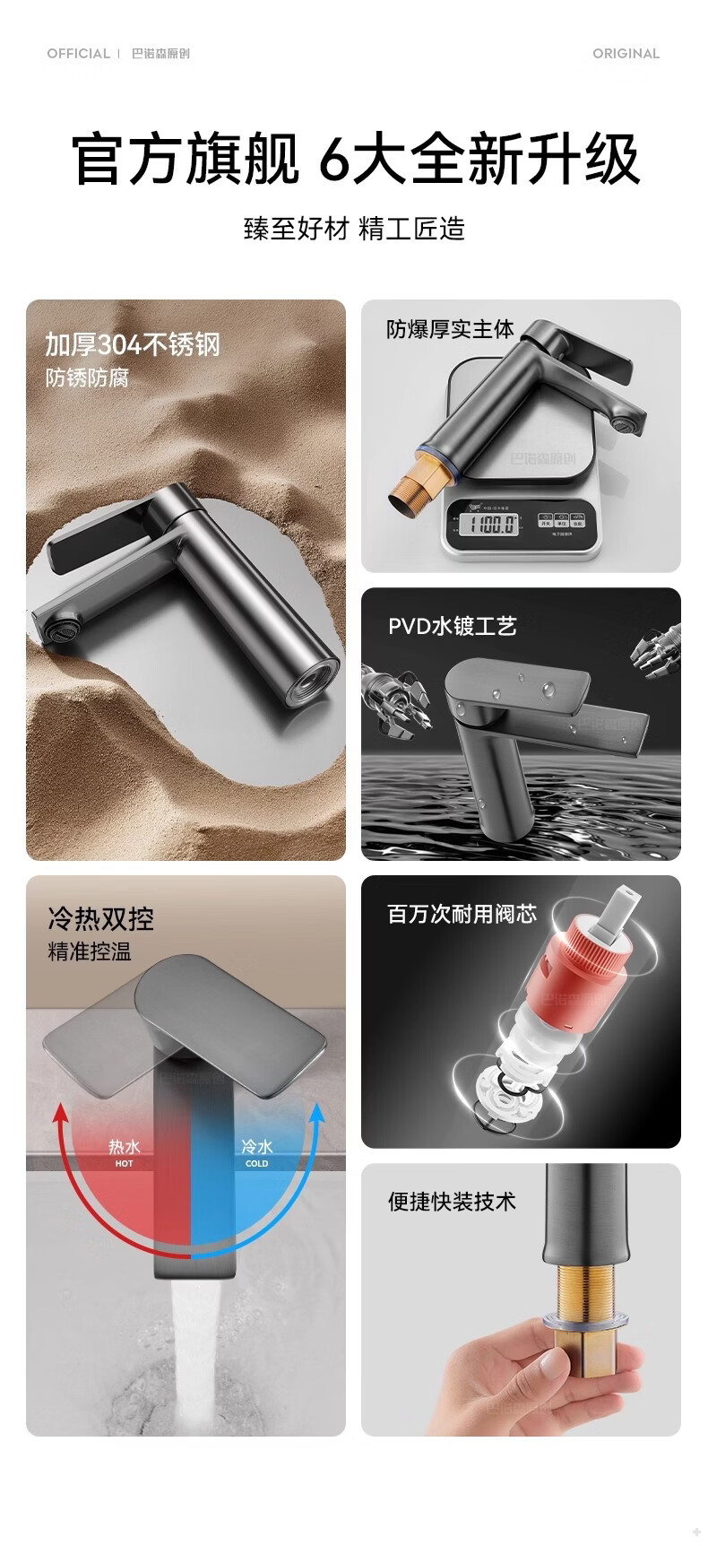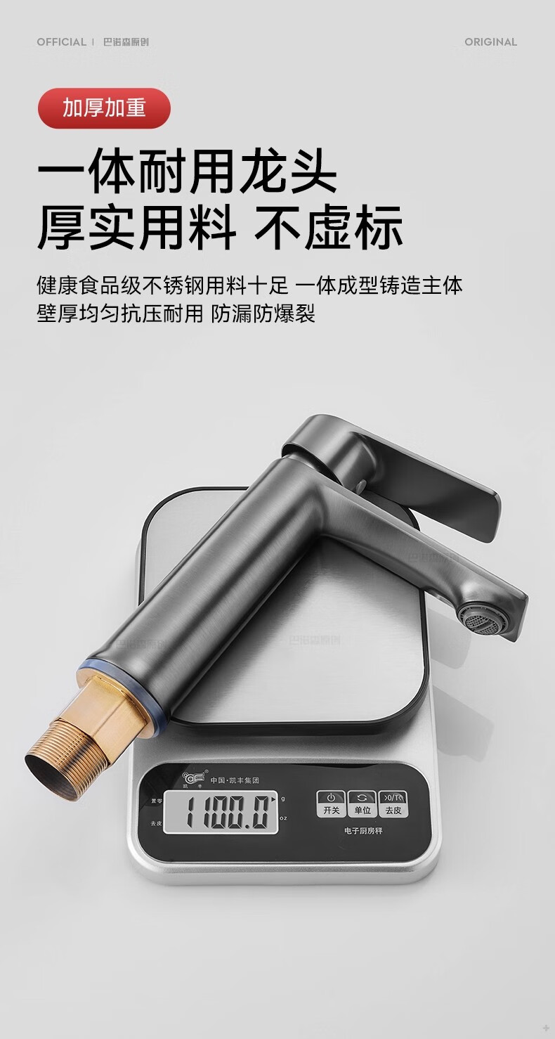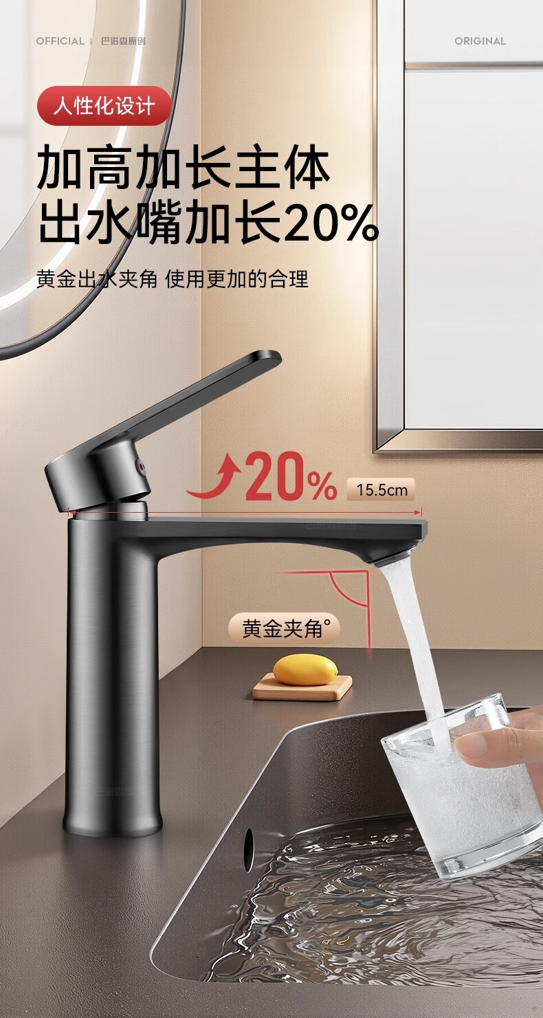 睦格优品冷热面盆水龙头二合一家用卫生间浴室洗脸盆柜台盆洗漱台 轻奢灰【冷热双控】配80CM冷热管
