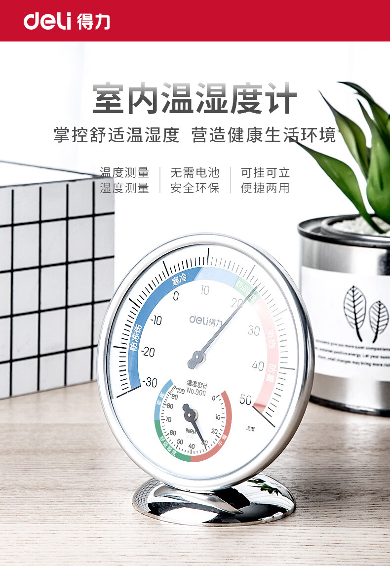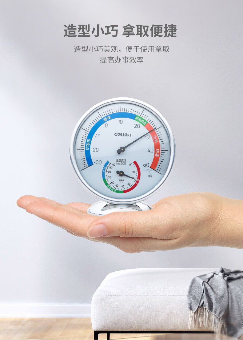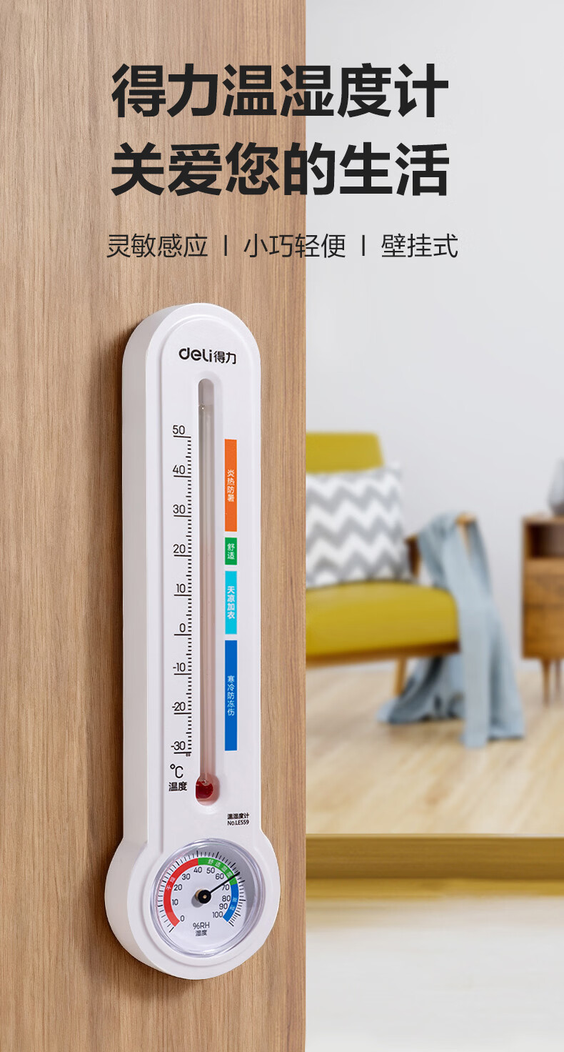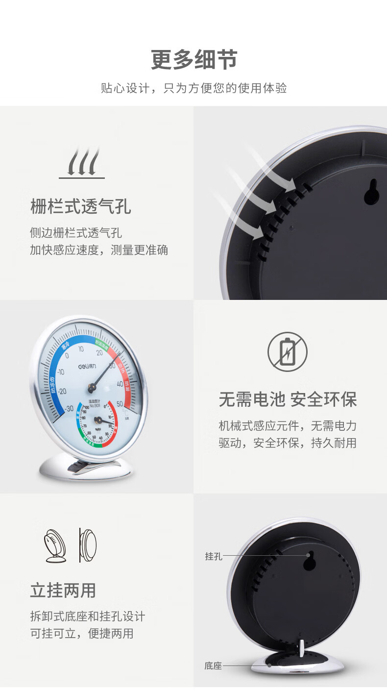 得力温湿度计机械家用室内电子温度计药店婴儿房温湿度表高精准壁挂式 【可挂可磁吸】温度计-无湿度显示