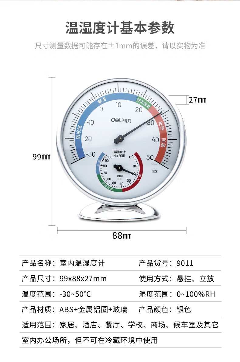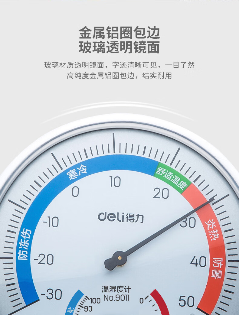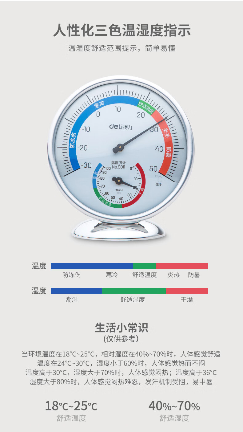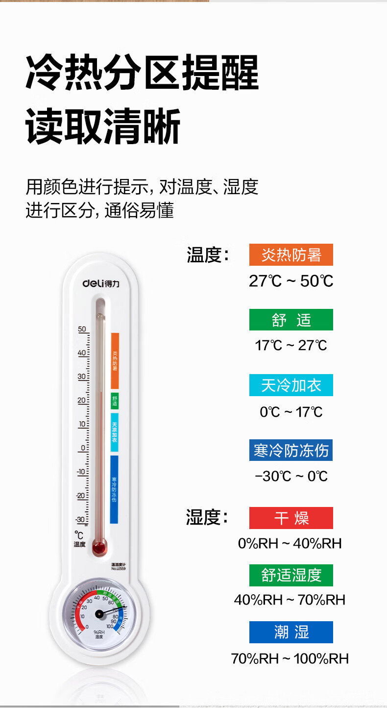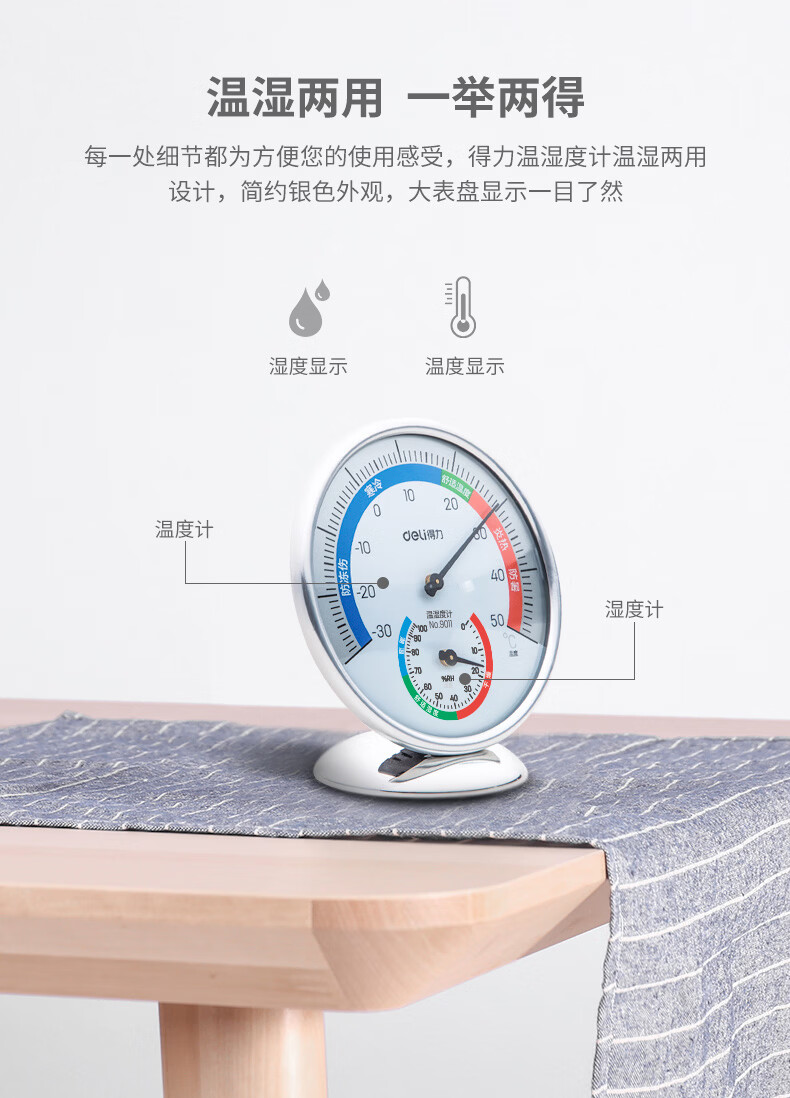 得力温湿度计机械家用室内电子温度计药店婴儿房温湿度表高精准壁挂式 【可挂可磁吸】温度计-无湿度显示