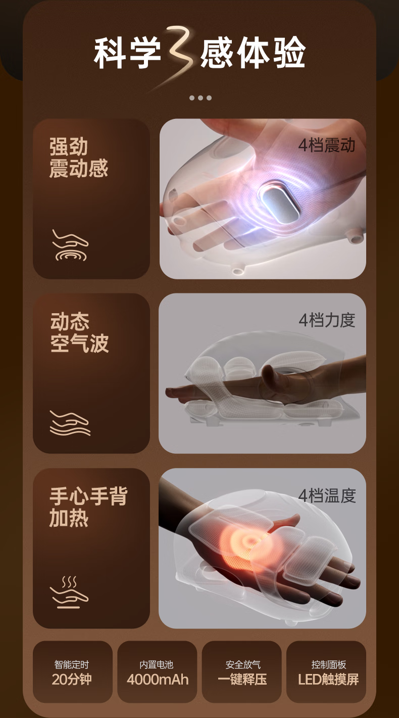 喜来康手部按摩器手腕指关节腱鞘炎按摩仪揉按手掌心热敷小钢炮震动款小鲸鱼送长辈实用送男女友生日礼物