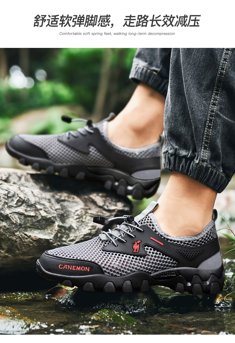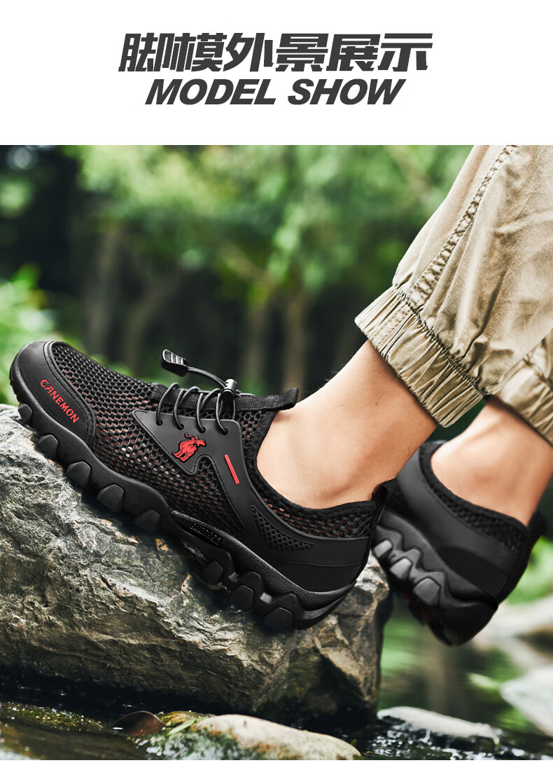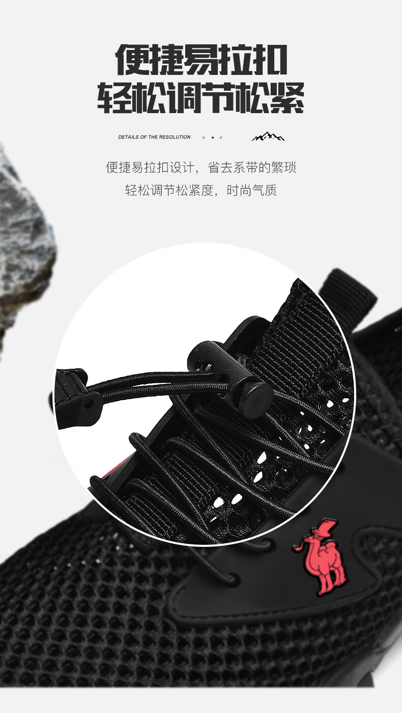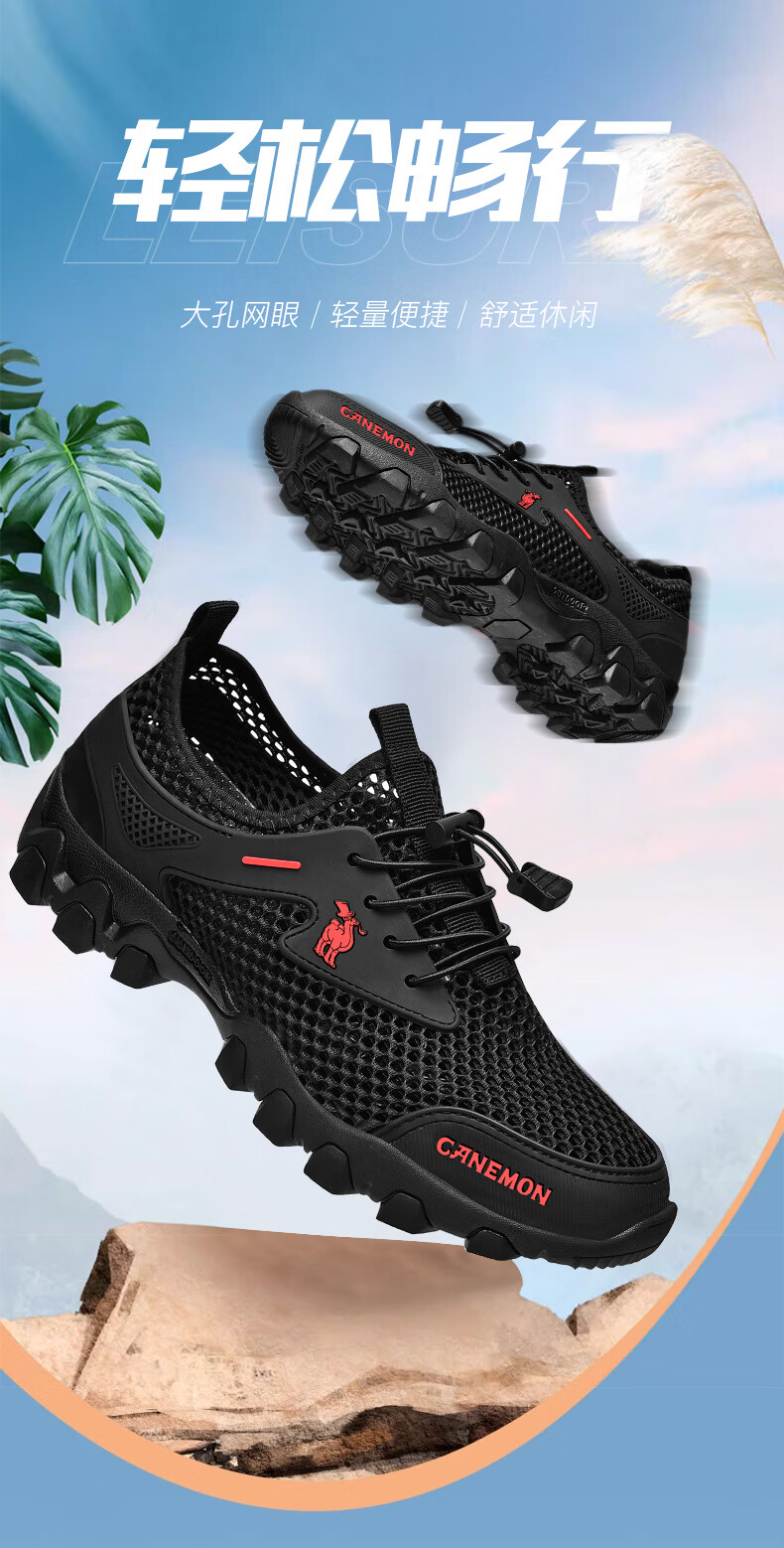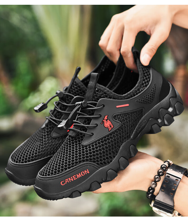 保罗骆驼男鞋 夏季运动户外网面休闲鞋子 耐磨透气溯溪登山鞋 徒步涉水 黑色【透气孔系列2386】 39 标准码脚宽拍大一码,赠运费险