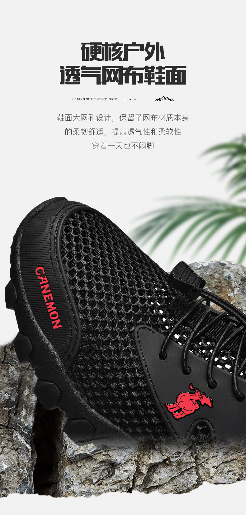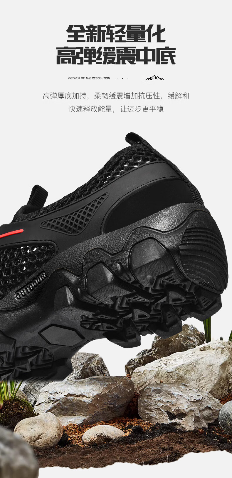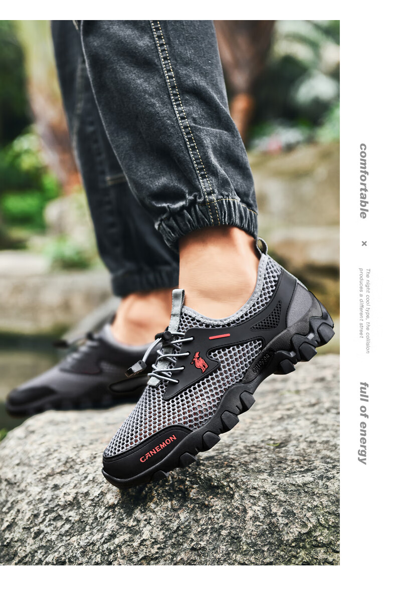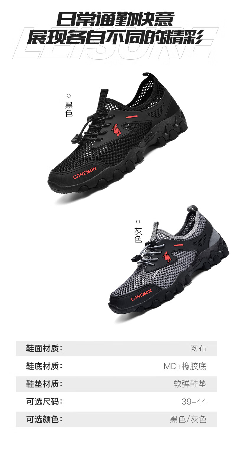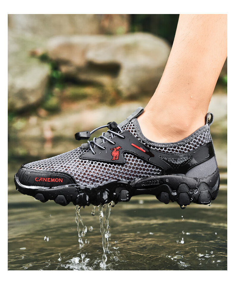 保罗骆驼男鞋 夏季运动户外网面休闲鞋子 耐磨透气溯溪登山鞋 徒步涉水 黑色【透气孔系列2386】 39 标准码脚宽拍大一码,赠运费险