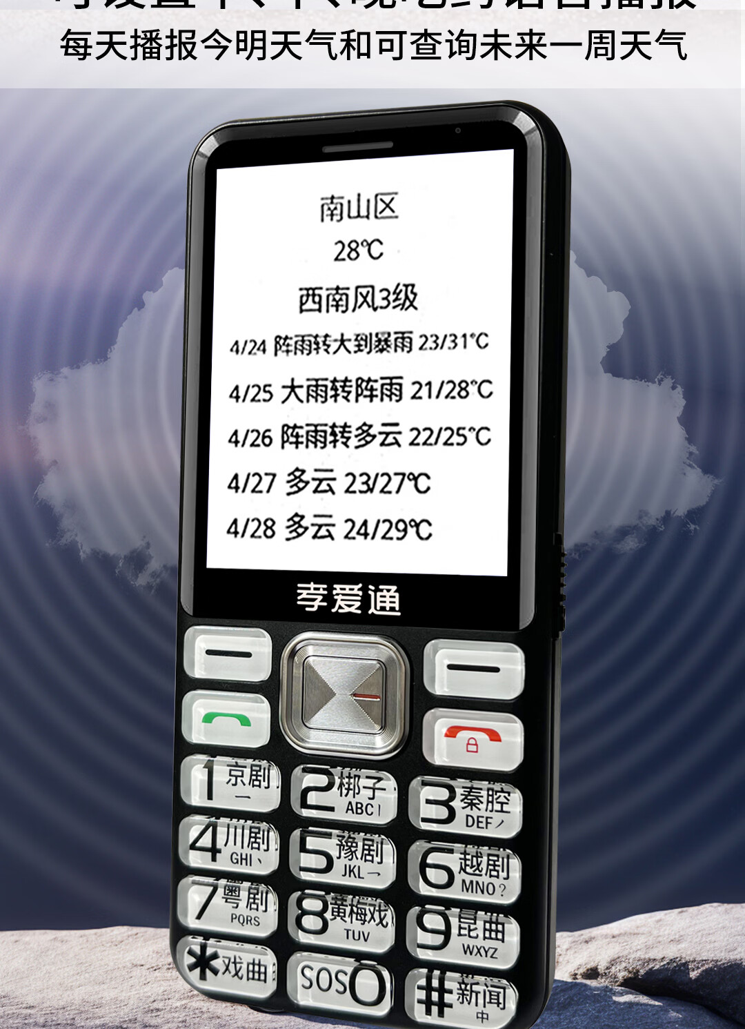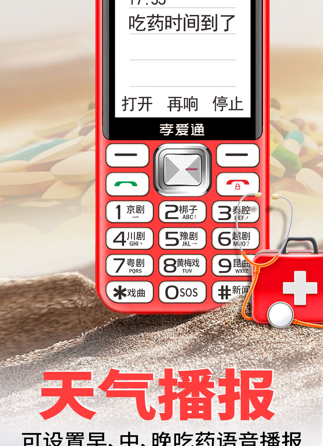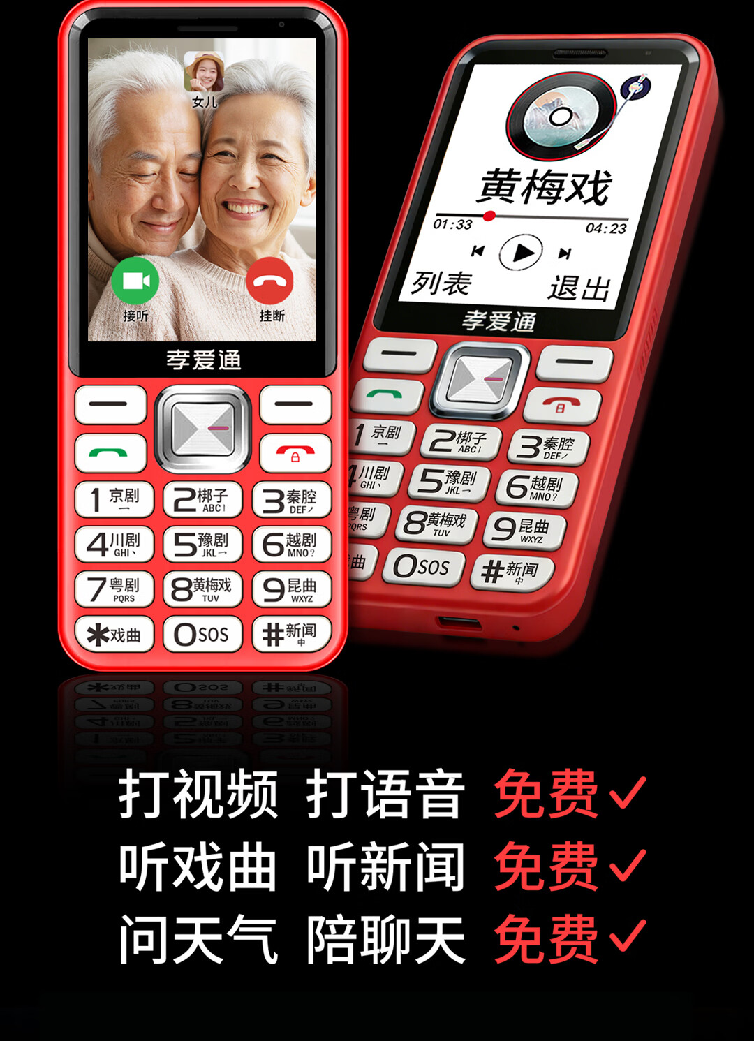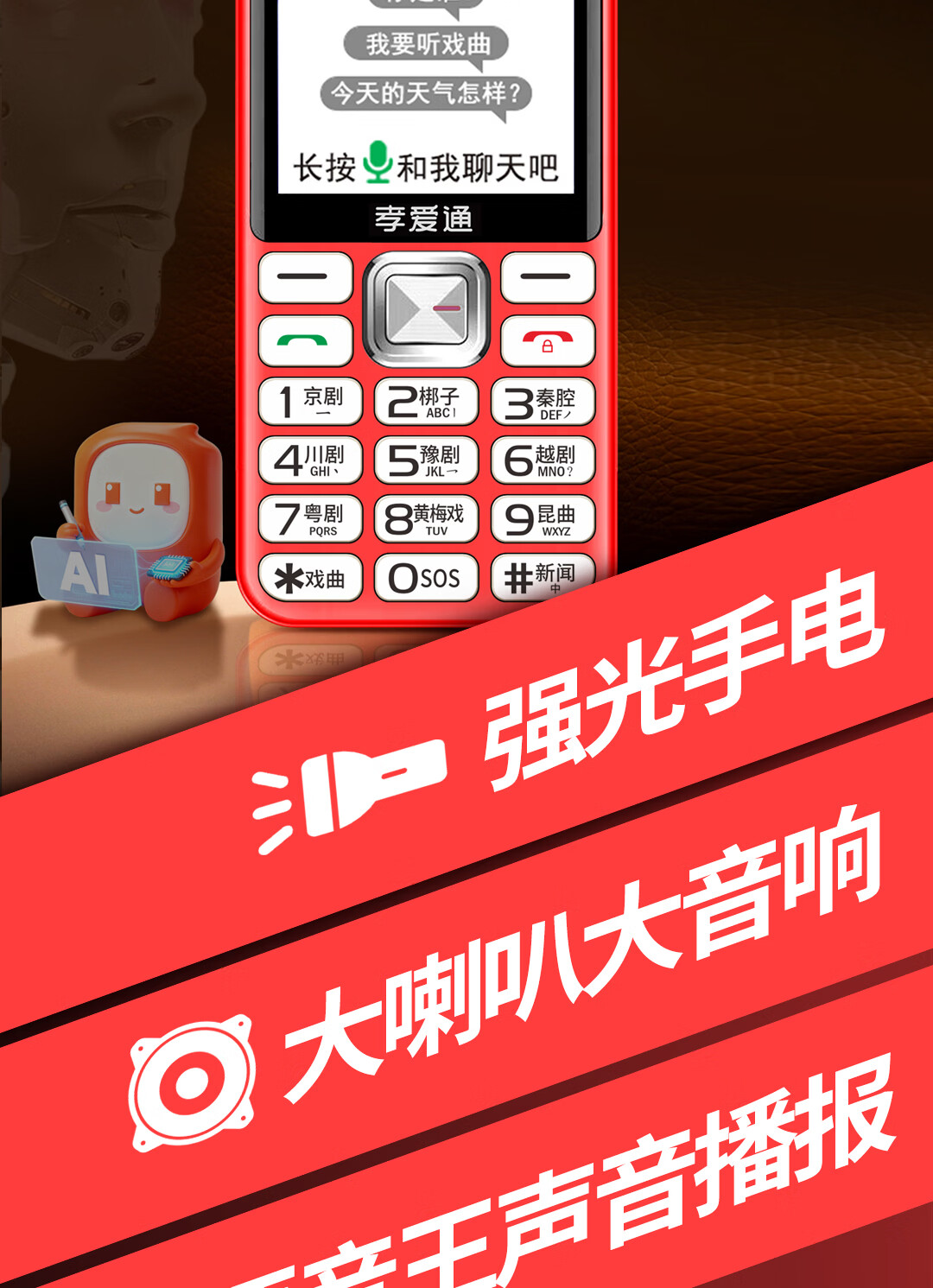 孝爱通老人专用手机2026新款高适配老人机 一键戏曲+AI语音 免插卡全年流量 微信视频子女好操作 红色(4G全网通)