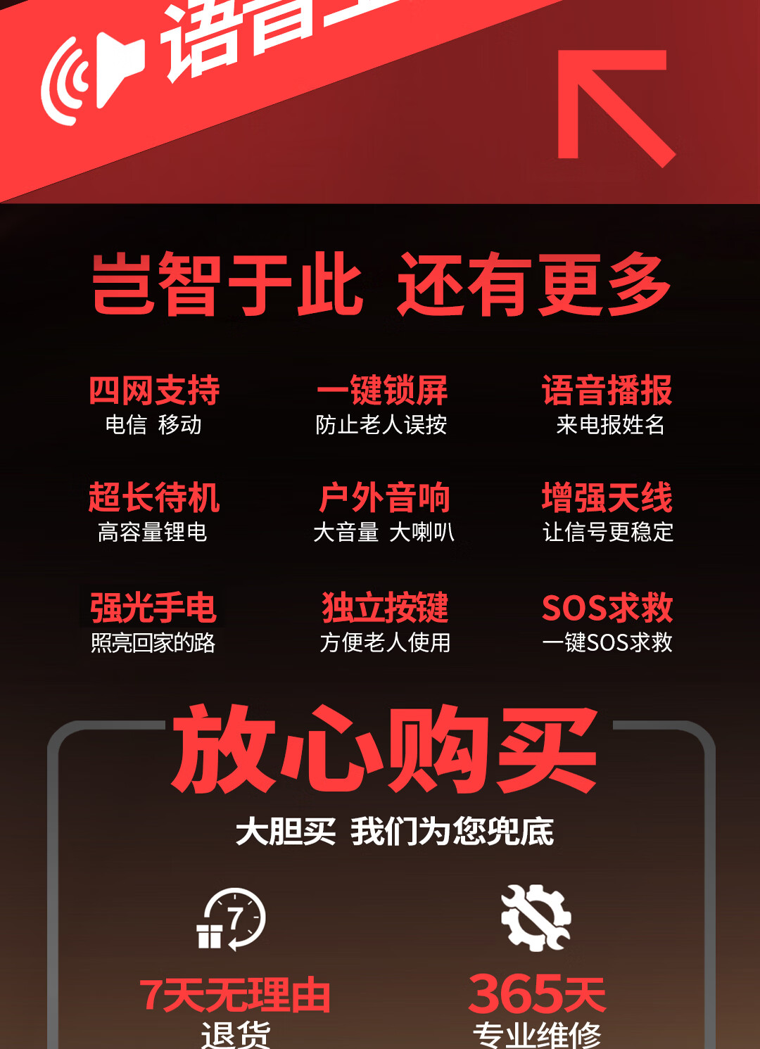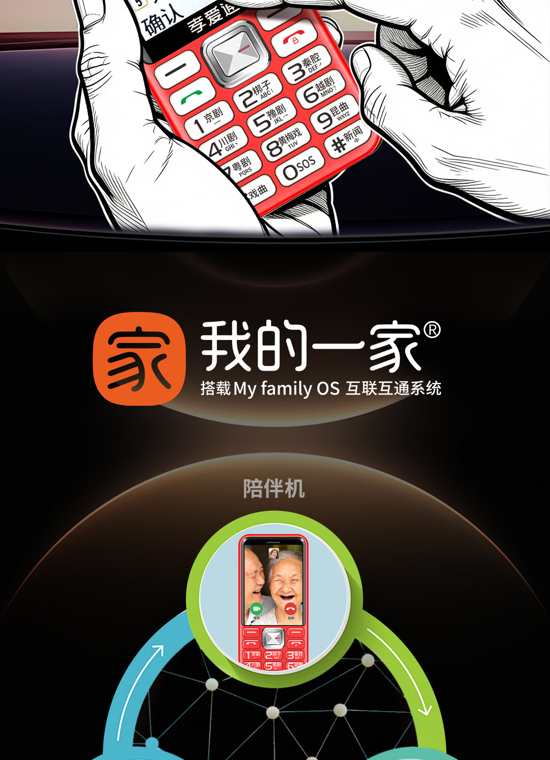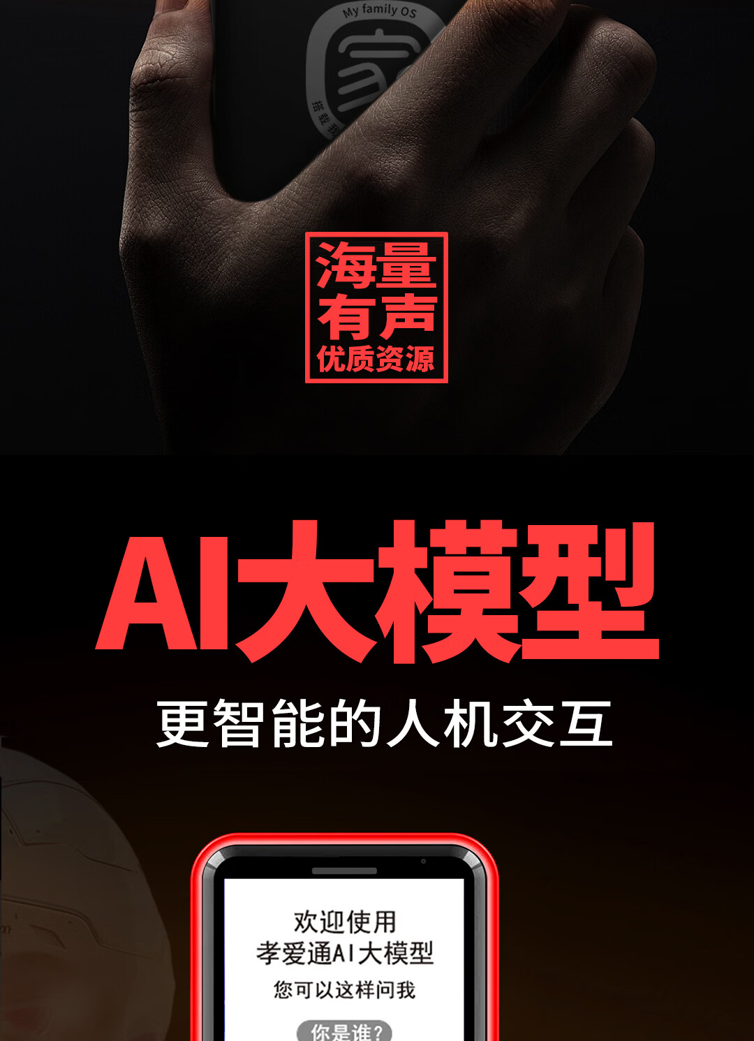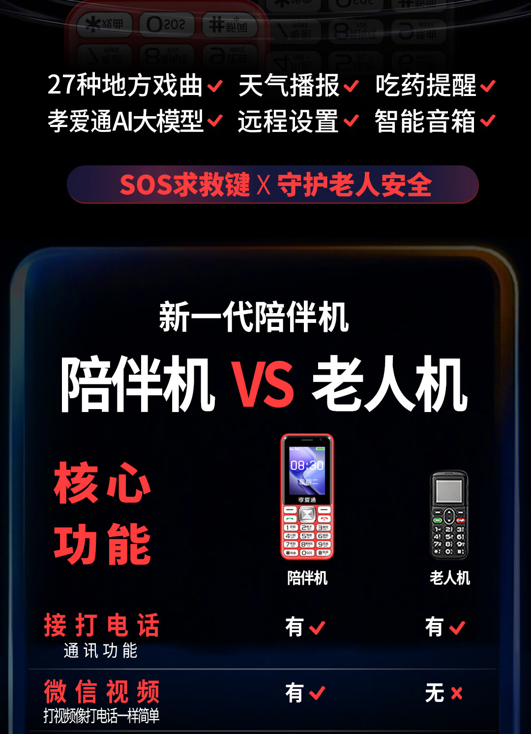 孝爱通老人专用手机2026新款高适配老人机 一键戏曲+AI语音 免插卡全年流量 微信视频子女好操作 红色(4G全网通)
