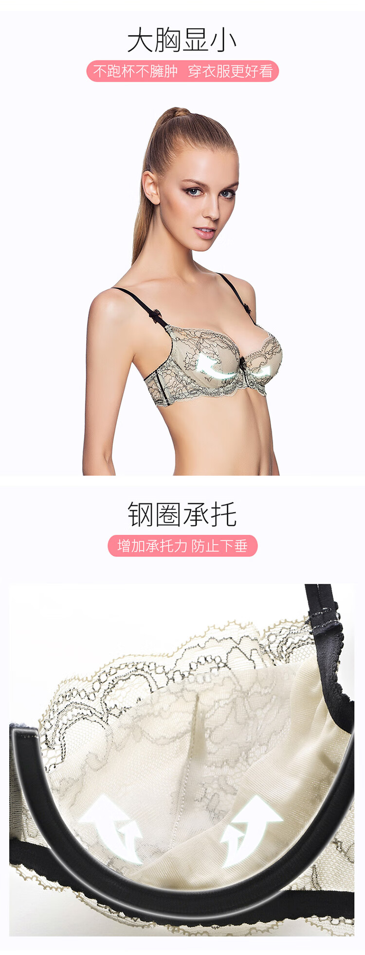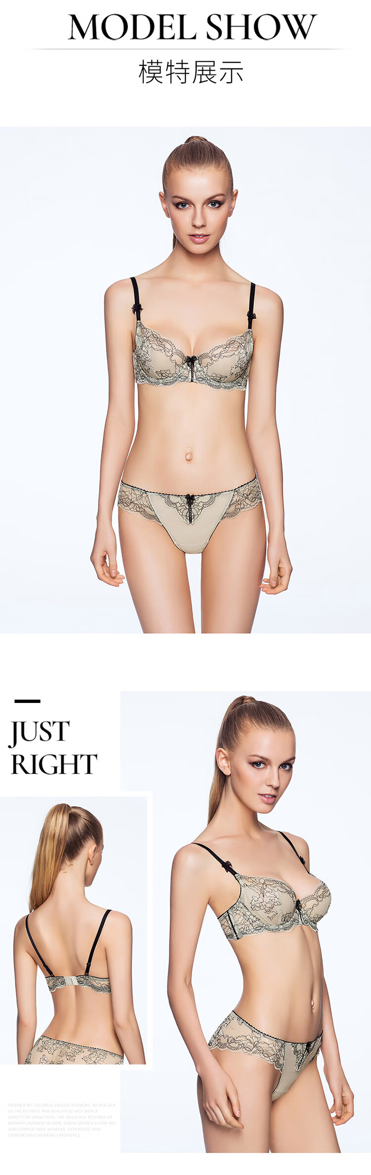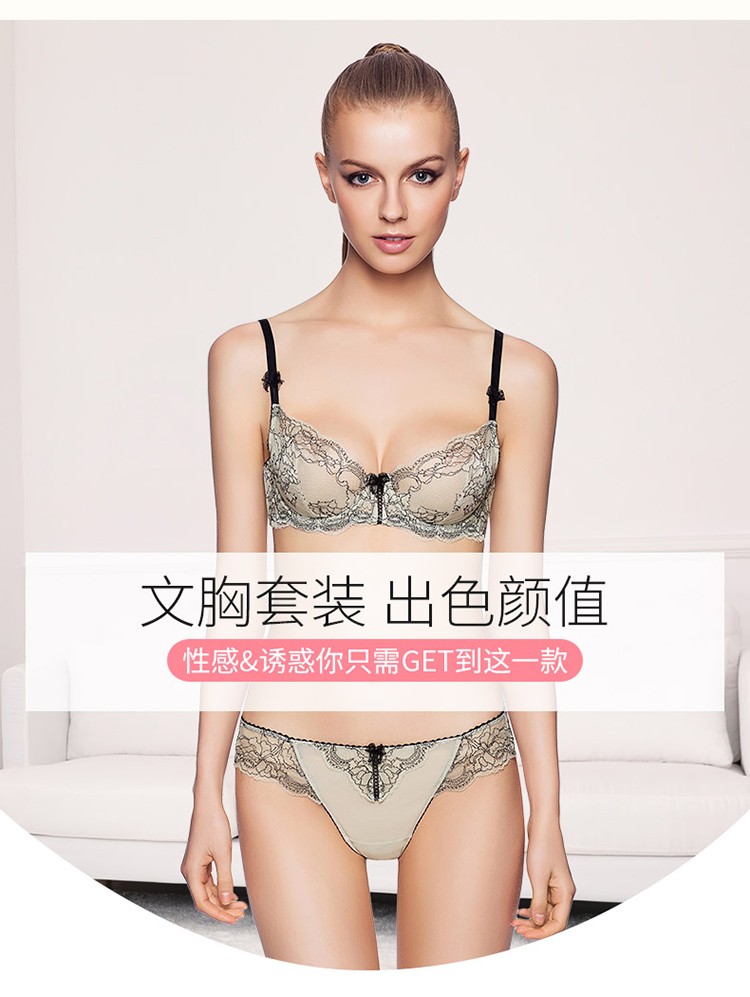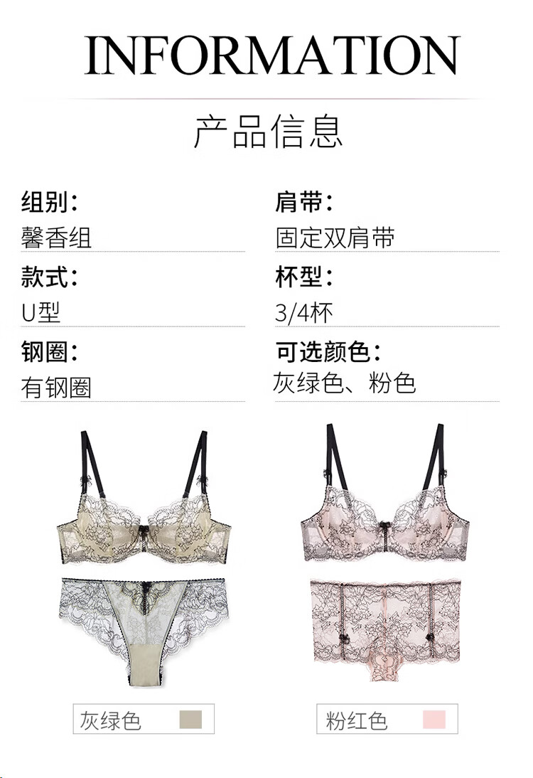 夏娃的诱惑馨香组女士女衣女套装内裤性感蕾丝文胸大胸显小上托防下垂胸罩 灰绿色 75C