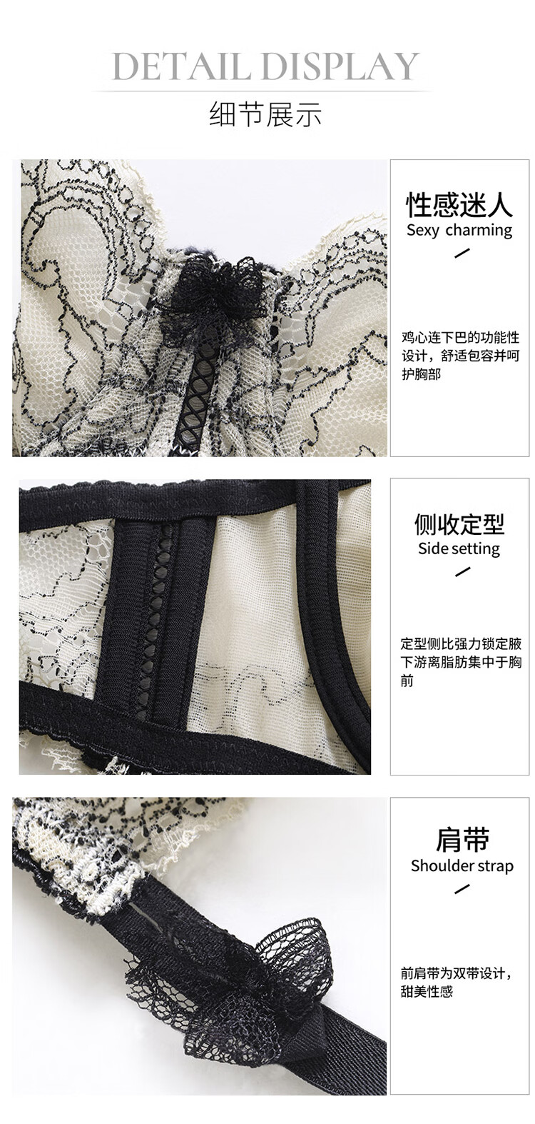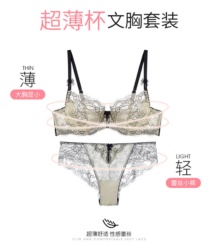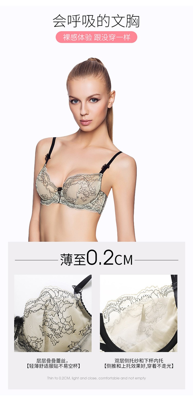 夏娃的诱惑馨香组女士女衣女套装内裤性感蕾丝文胸大胸显小上托防下垂胸罩 灰绿色 75C