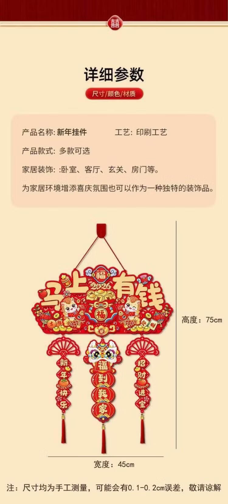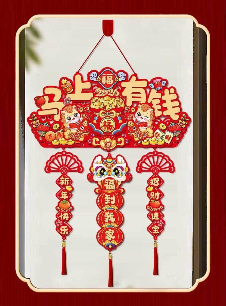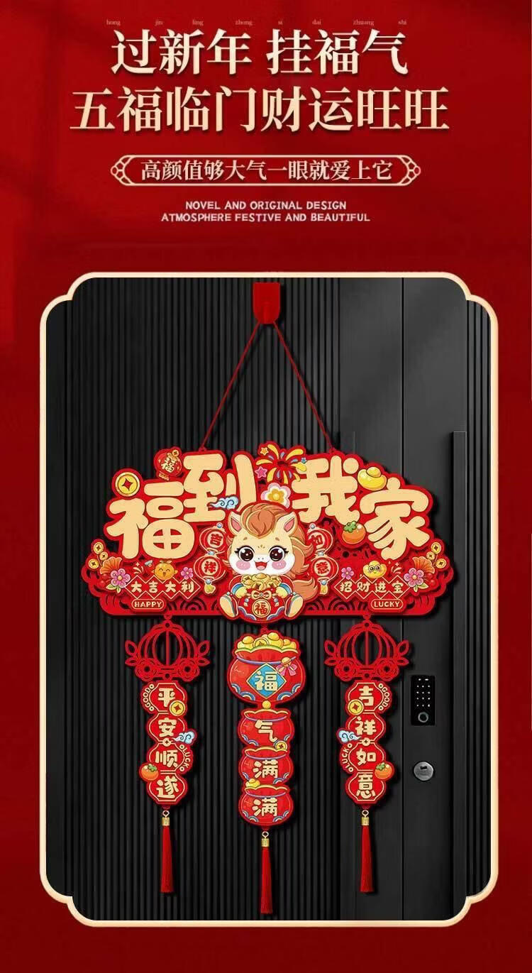 清洁JTT 马年新年挂件玄关装饰 福到我家+马上有钱(组合款2个装)