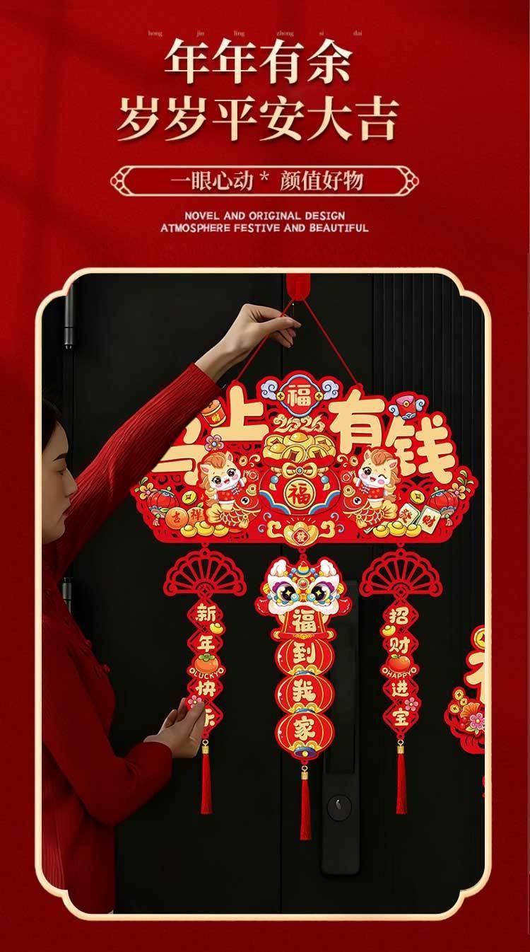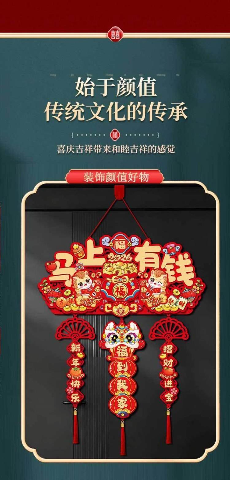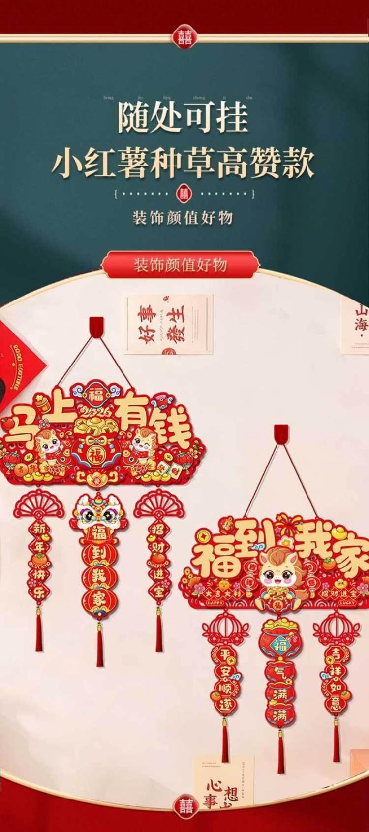 清洁JTT 马年新年挂件玄关装饰 福到我家+马上有钱(组合款2个装)