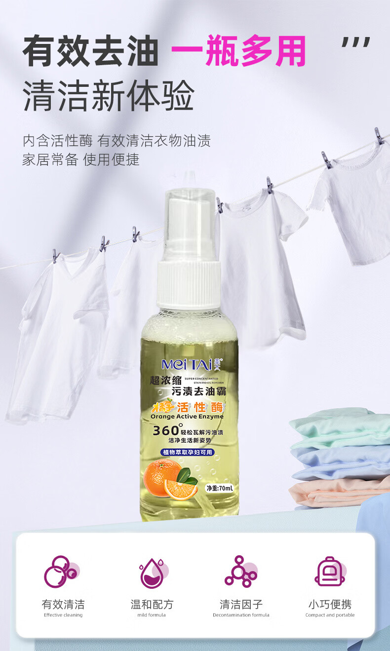 美太(MEITAI)美太超浓缩污渍去油霸厨房火锅油口红渍清洁孕妇适用衣物去油剂 5瓶