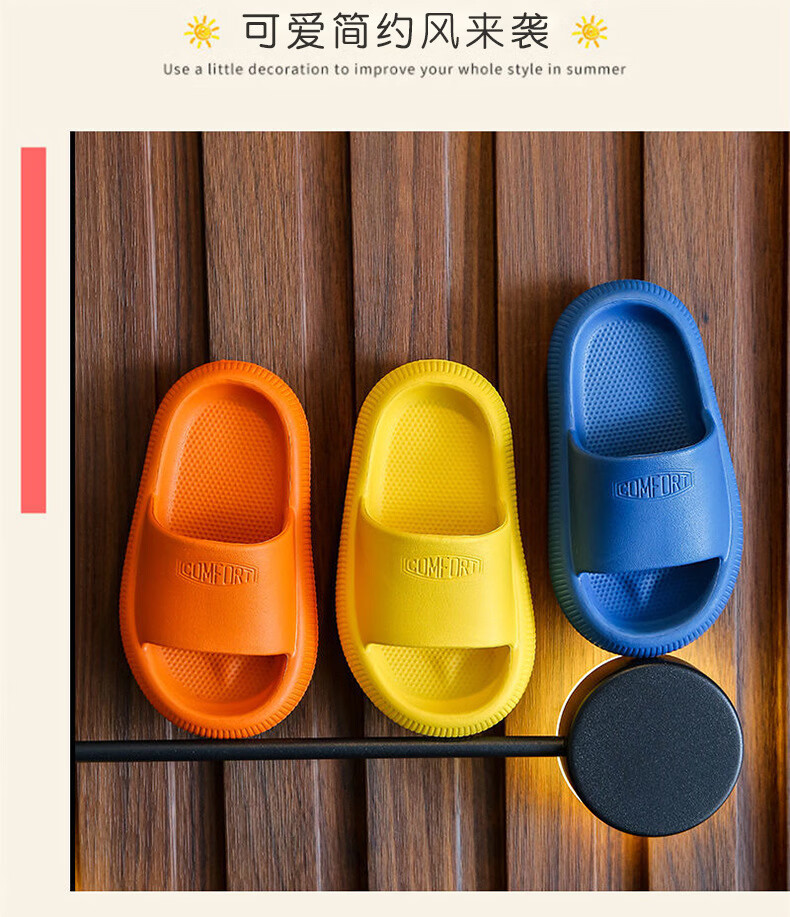 【精选直发】儿童踩屎感拖鞋小孩拖鞋男童女夏季外穿一字拖厚底软 黄色 24 /25(145mm内长