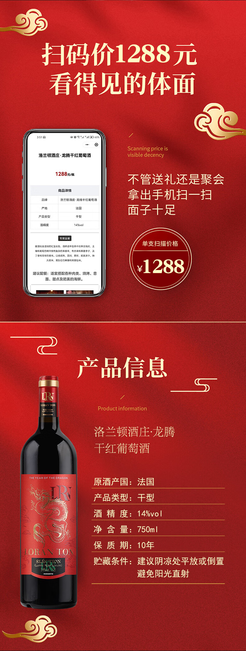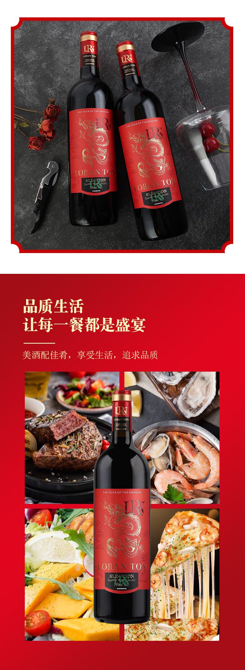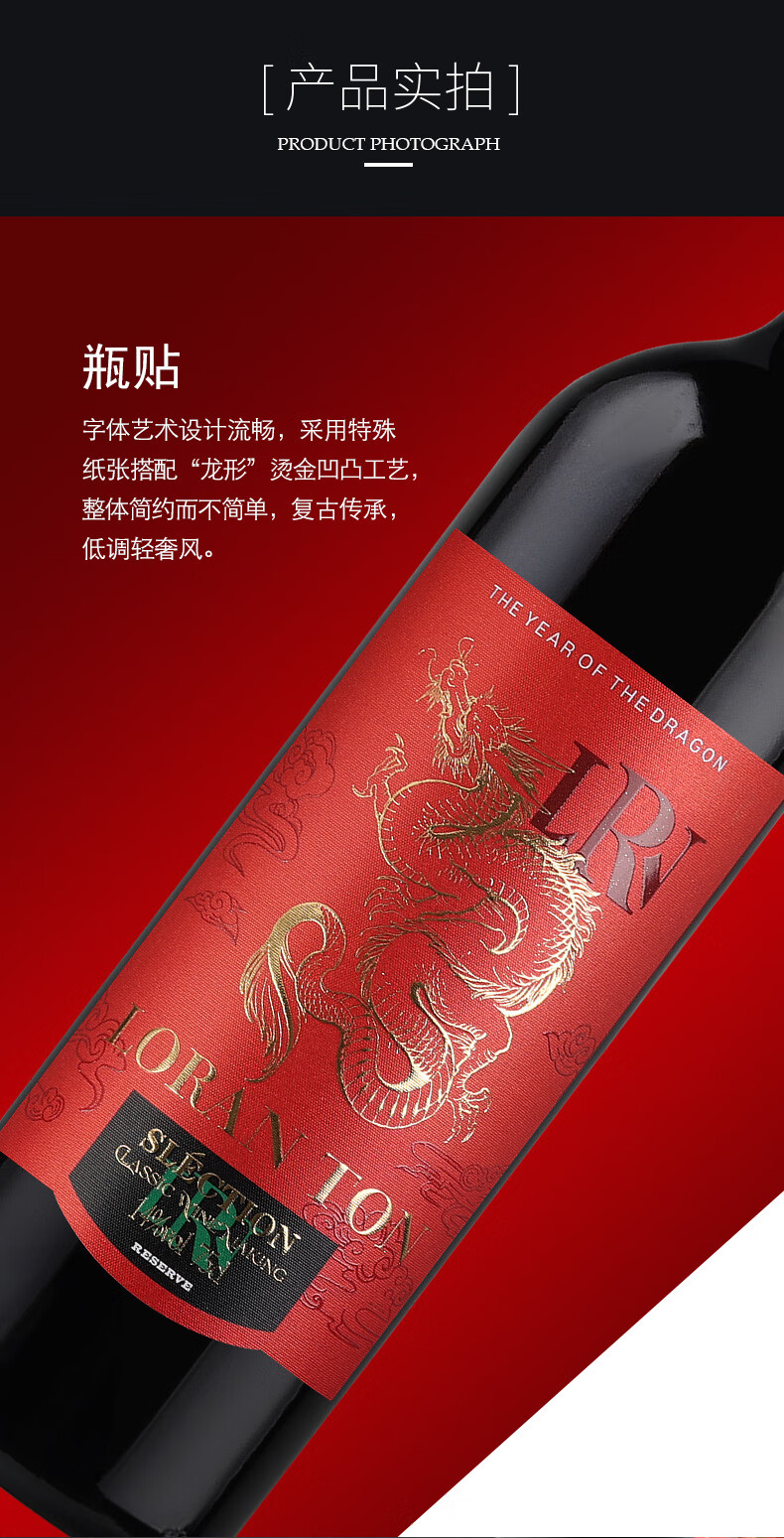 洛兰顿 酒庄红酒龙腾干红葡萄酒法国进口原酒6瓶整箱 龙腾干红750mL*6瓶