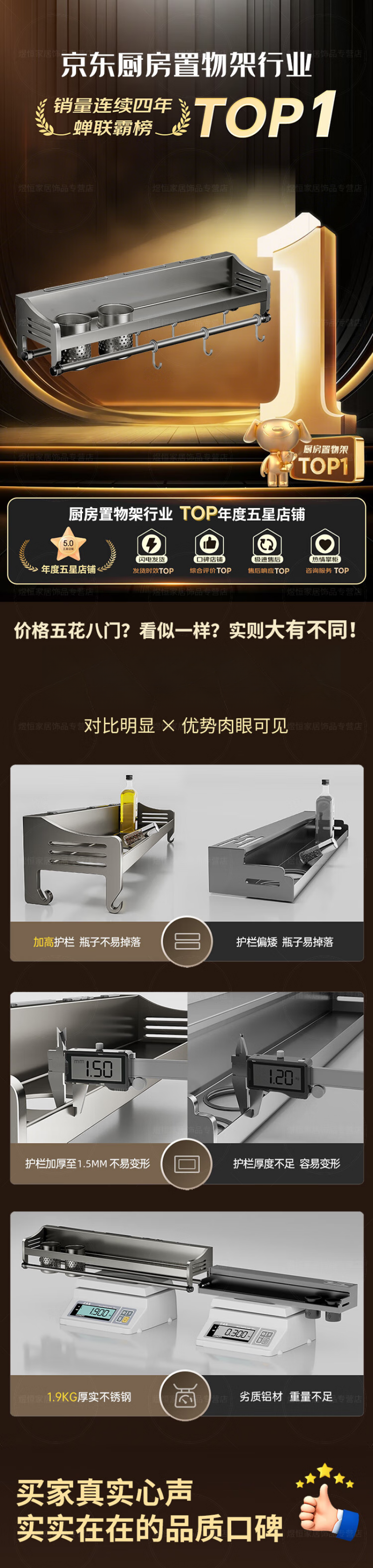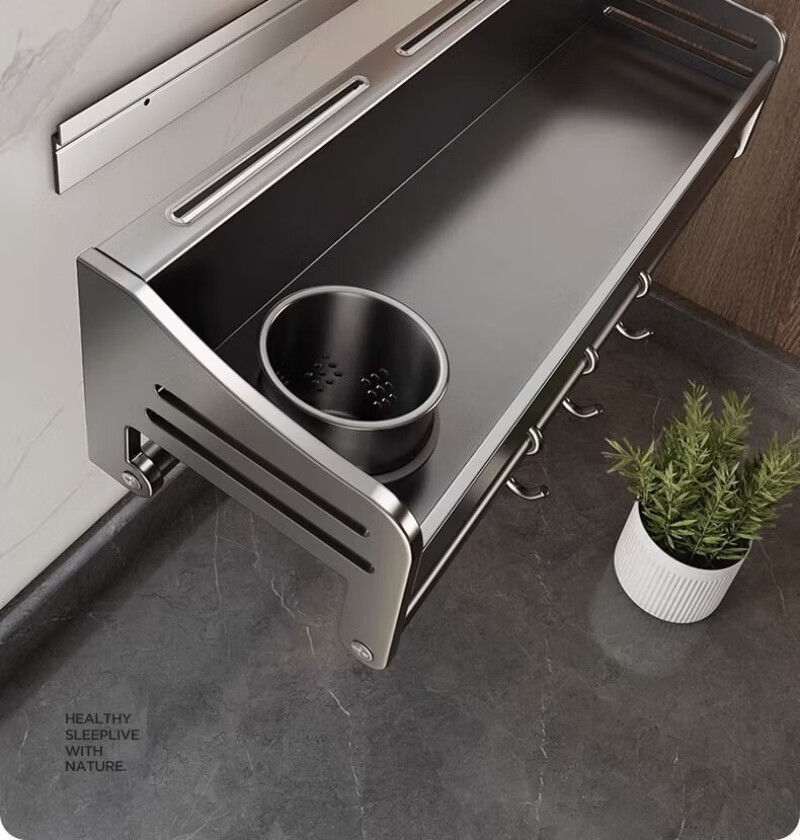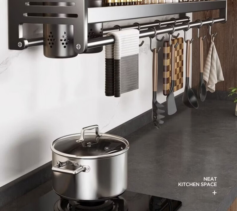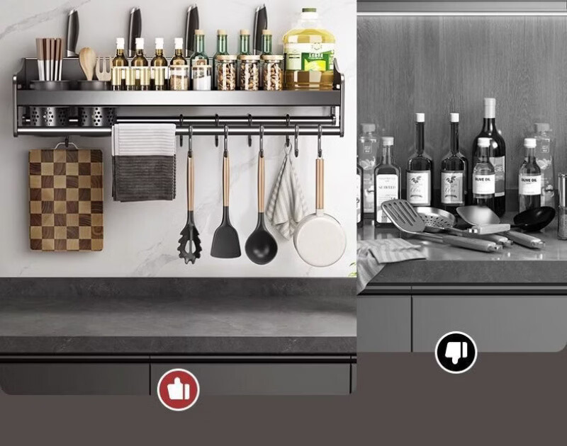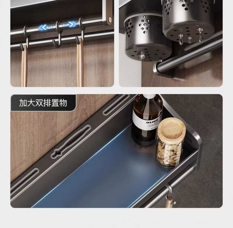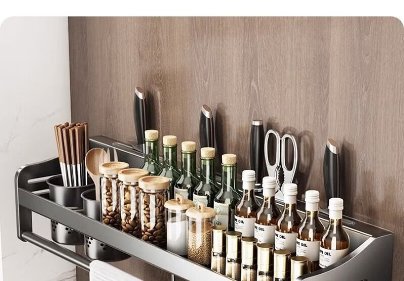 Lovefamily德国厨房收纳置物架多功能壁挂式调料菜刀收纳架免打孔调味用具家 三杯4刀槽+14钩 80cm*12cm*13cm