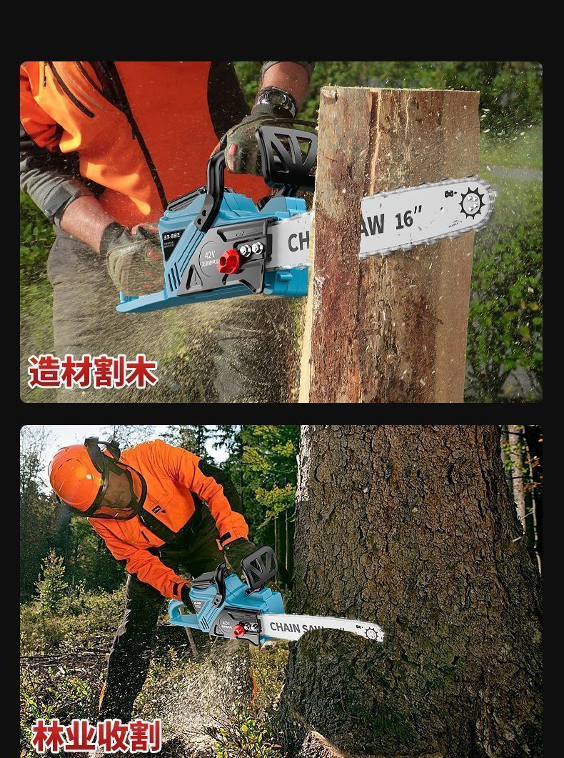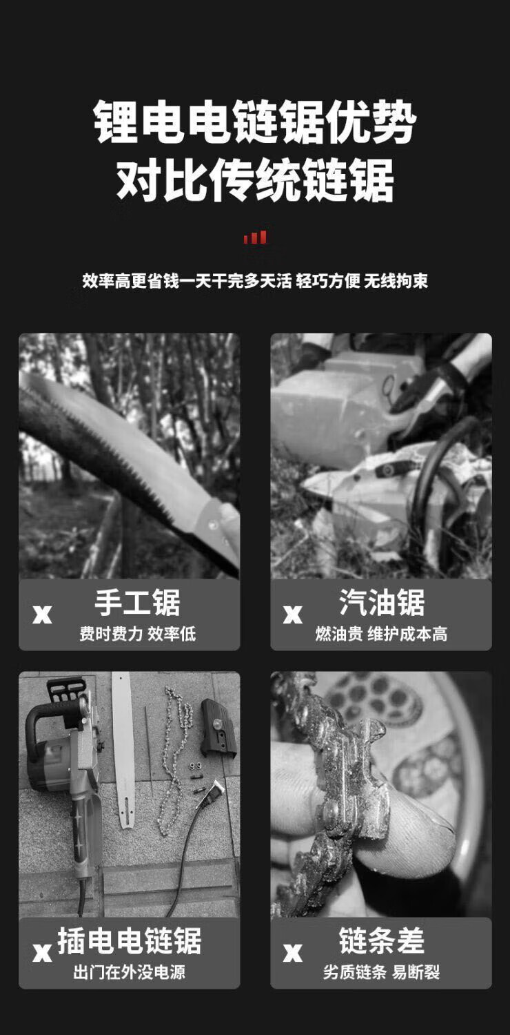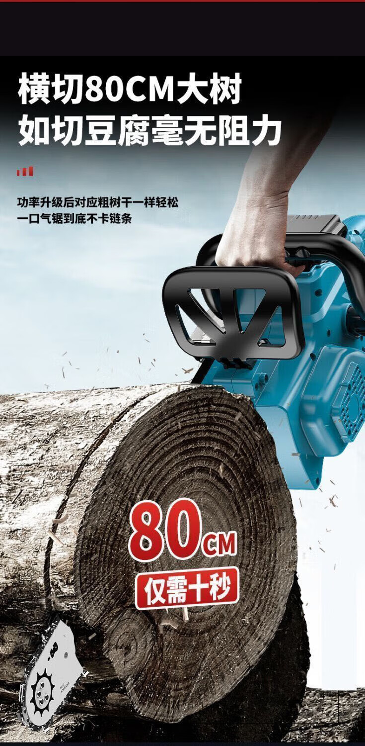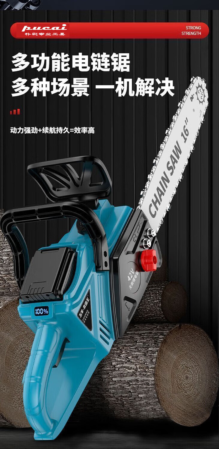 PUCAI高速锂电锯大容量充电式电锯大功率手持户外伐木锯家用锯电链锯 16寸超大容量3电池4链条