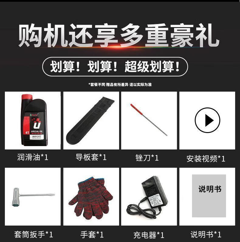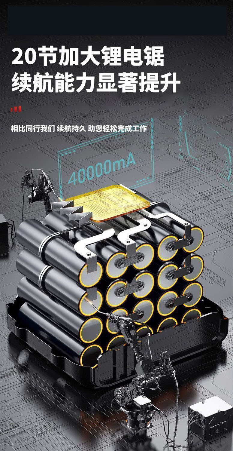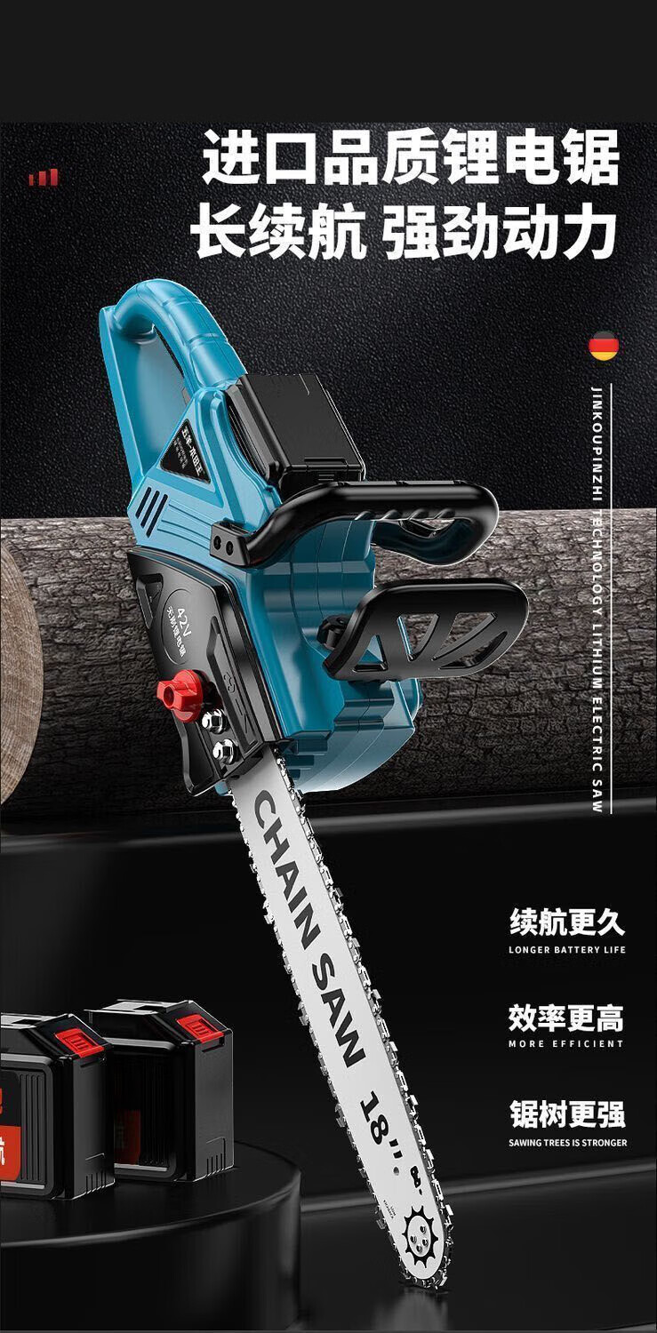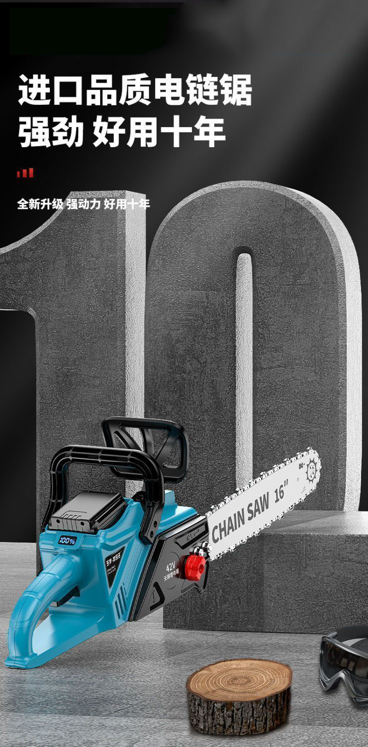 PUCAI高速锂电锯大容量充电式电锯大功率手持户外伐木锯家用锯电链锯 16寸超大容量3电池4链条