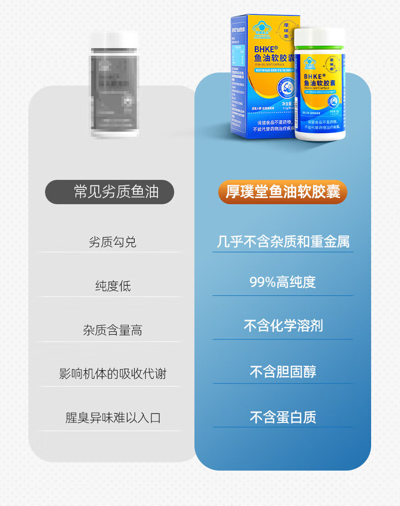 厚璞堂(HOUPUTANG)鱼油软胶囊深海鱼油高含量高纯度omega3科学 1盒体验装【厚璞堂正品】
