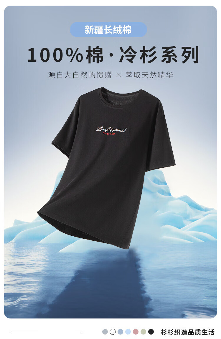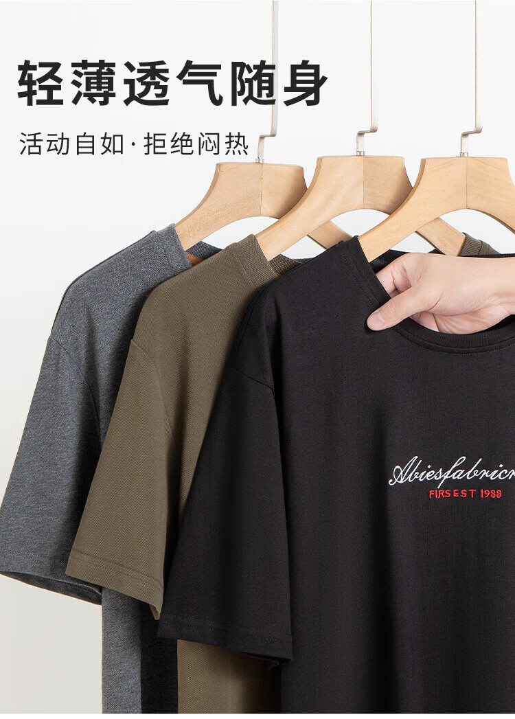 杉杉(FIRS)纯棉圆领T恤男夏季新款休闲运动上衣亲肤透气短袖男装 黑色 M (170/88A)