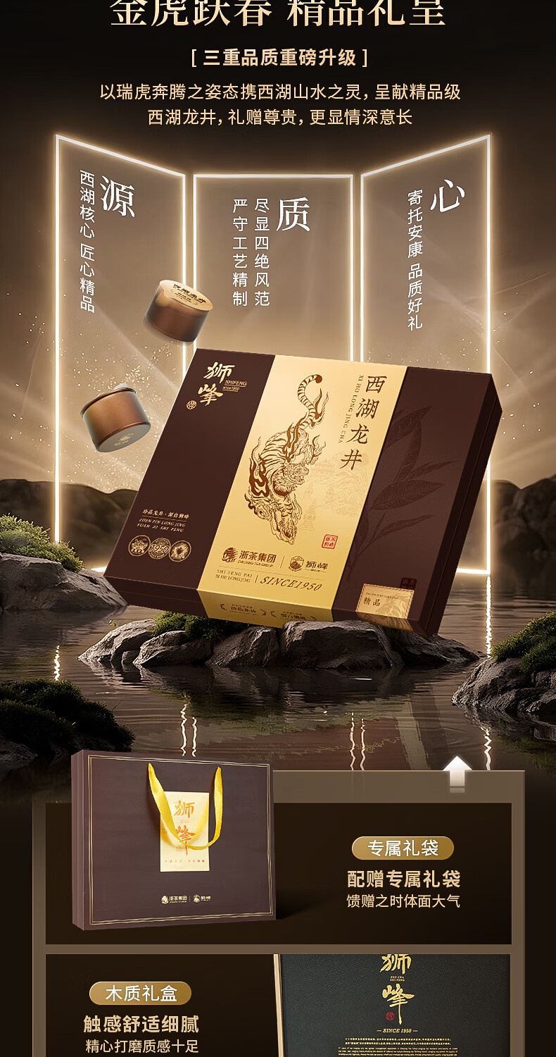 狮峰2026新茶预售明前精品西湖龙井茶叶小罐绿茶礼盒春茶送礼长辈100g