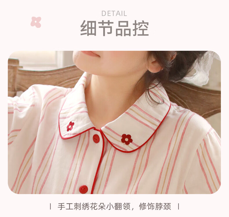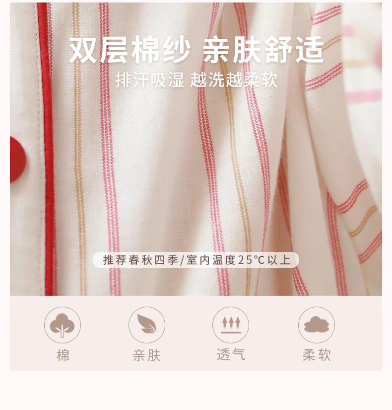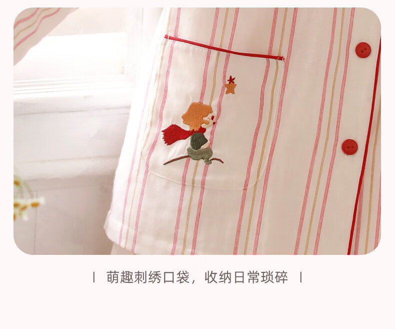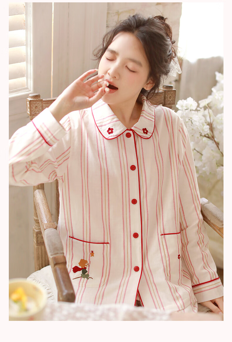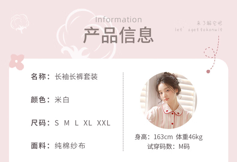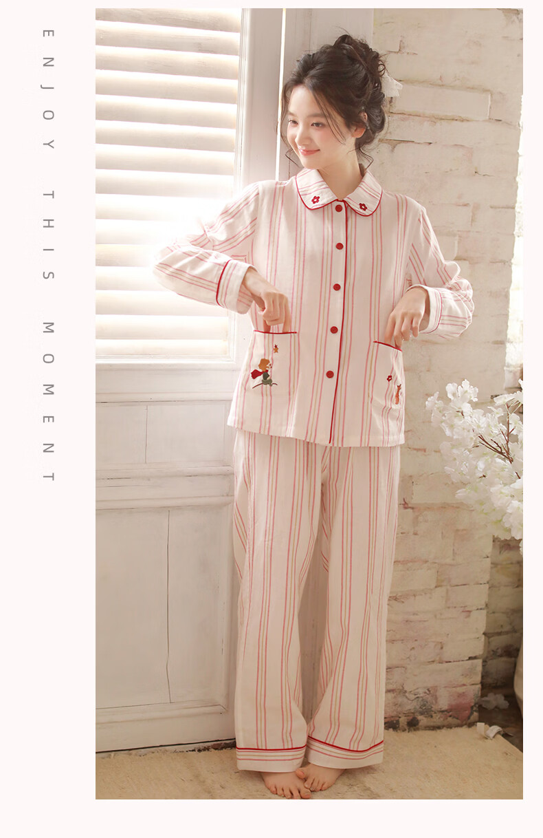 蔓秋 MEJU春夏小王子女士家居服纱布长袖长裤套装 米白 L 125斤以内