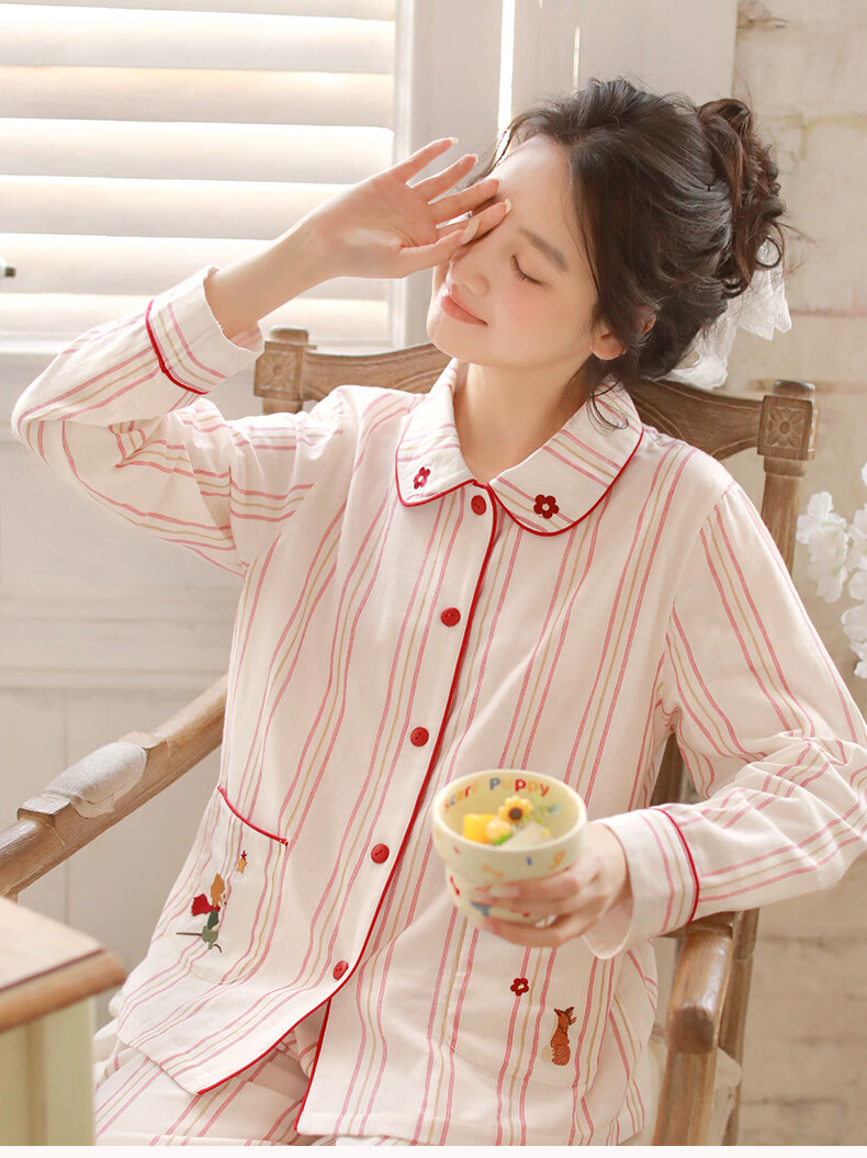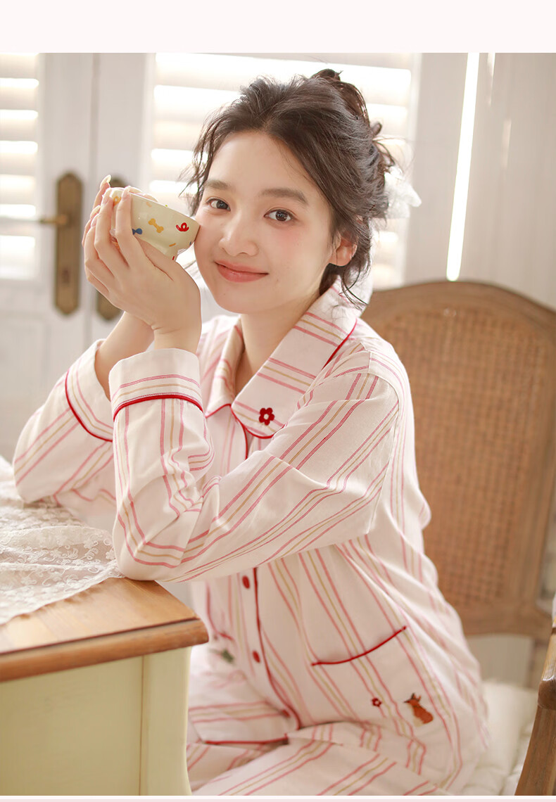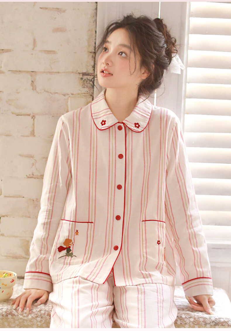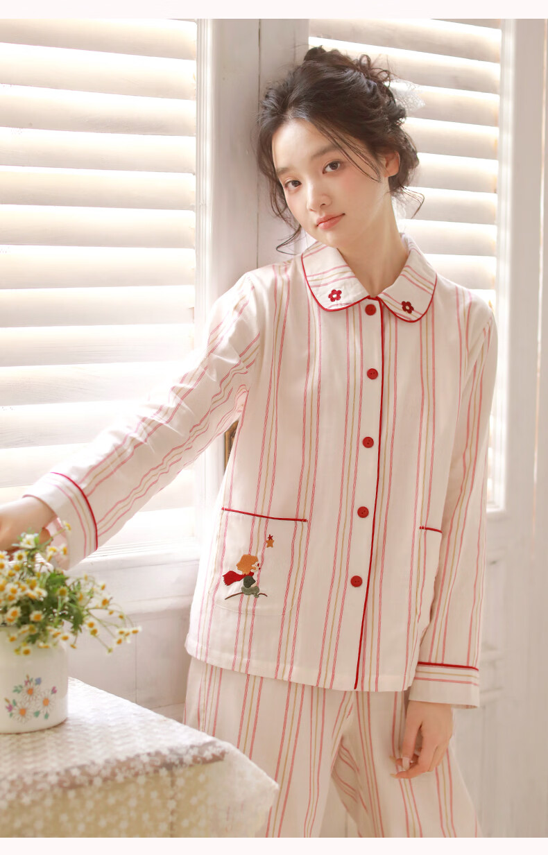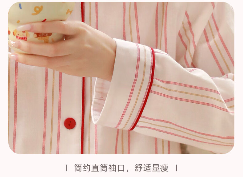 蔓秋 MEJU春夏小王子女士家居服纱布长袖长裤套装 米白 L 125斤以内