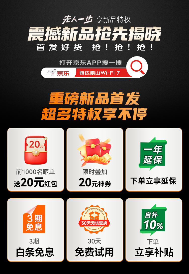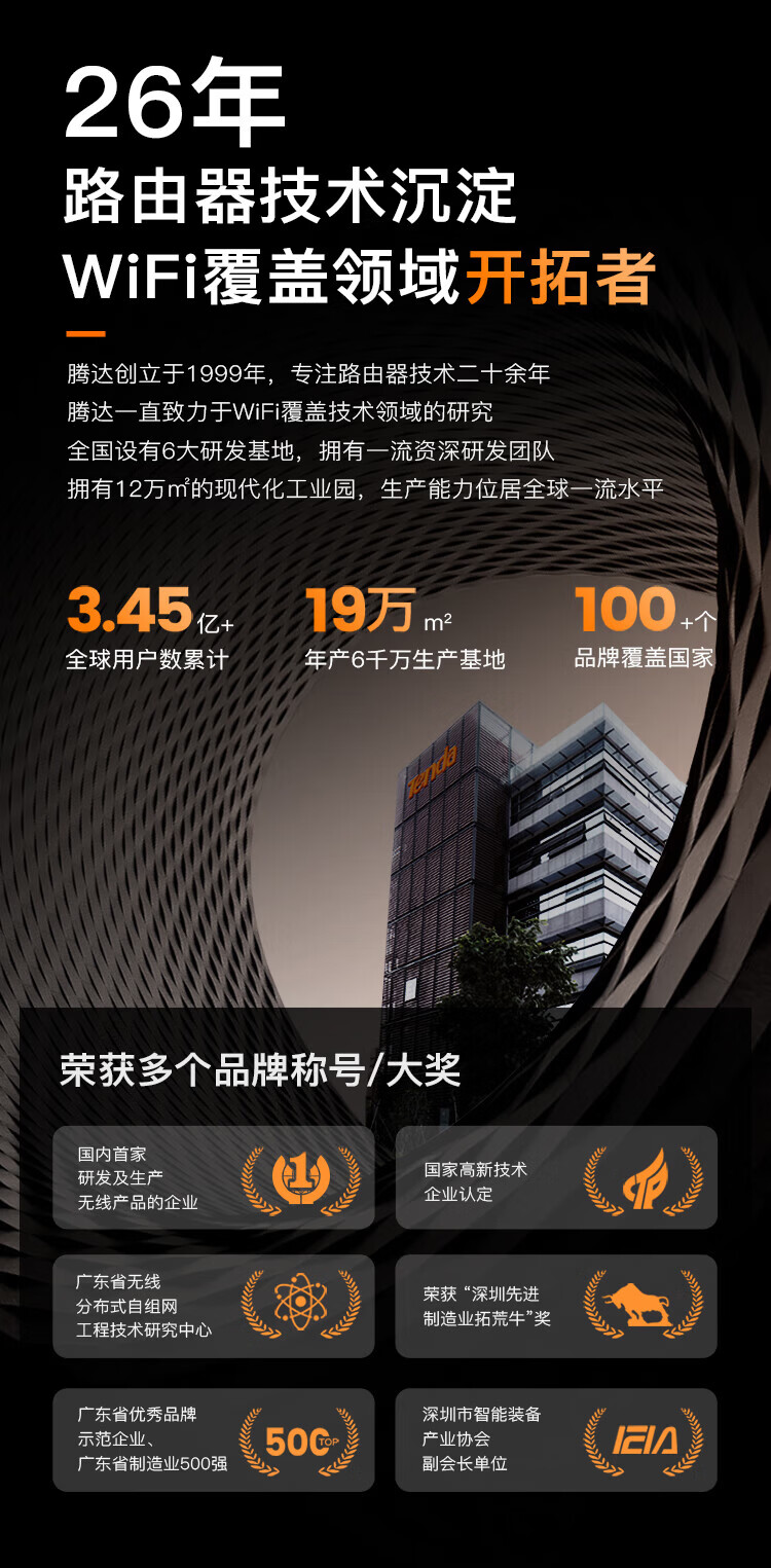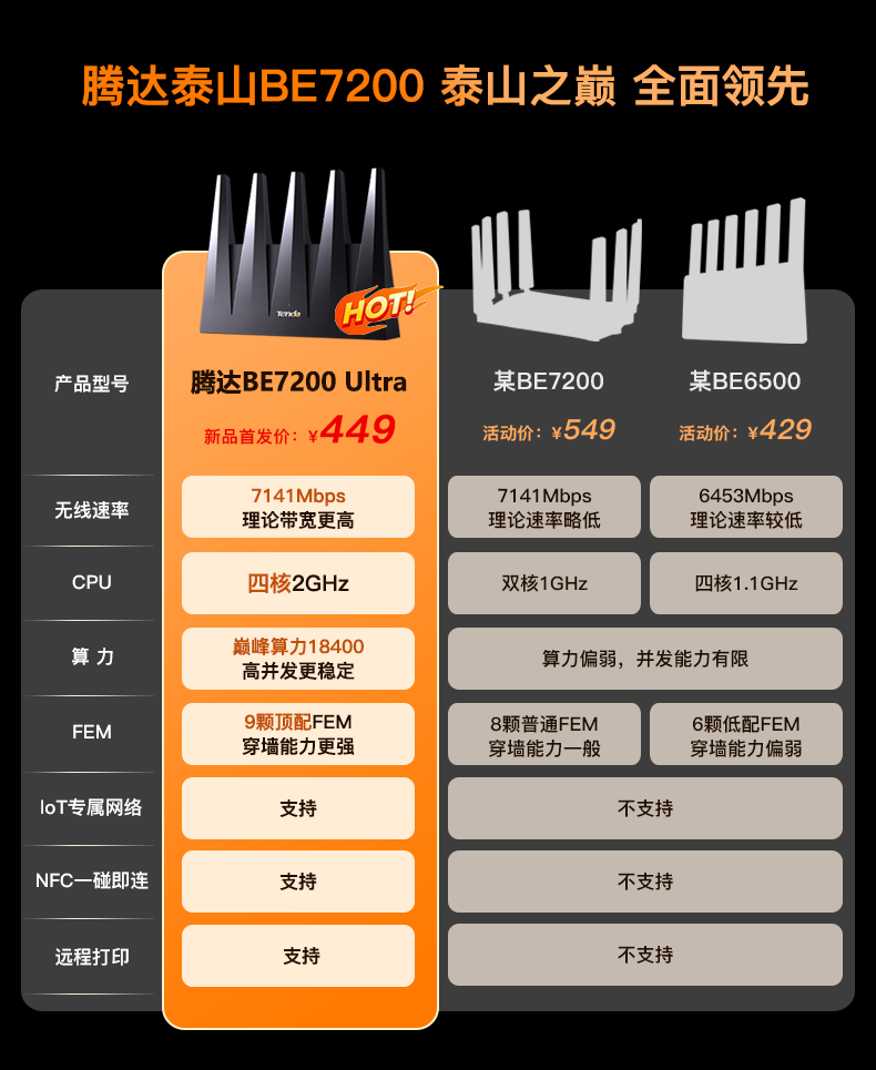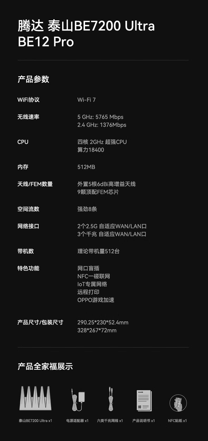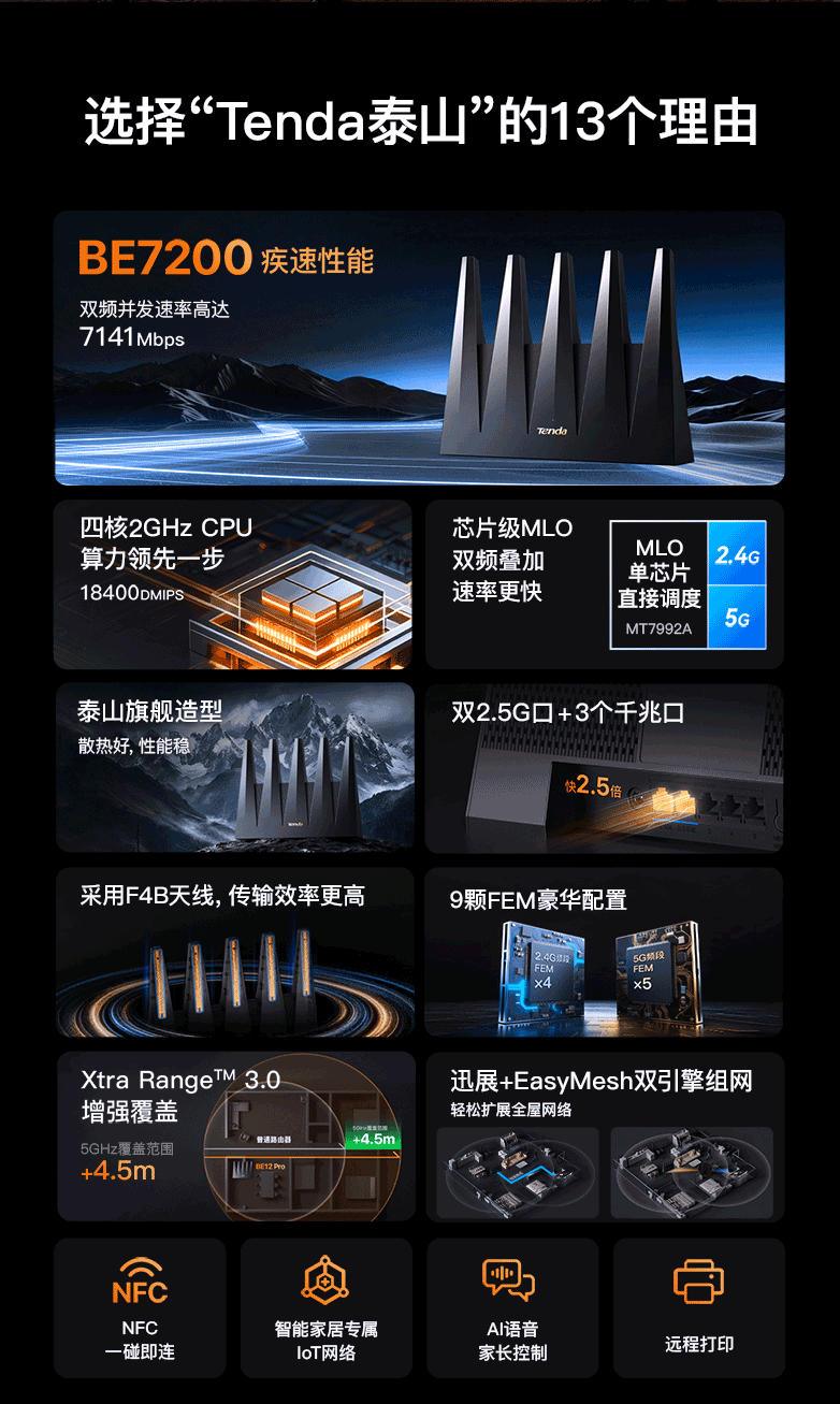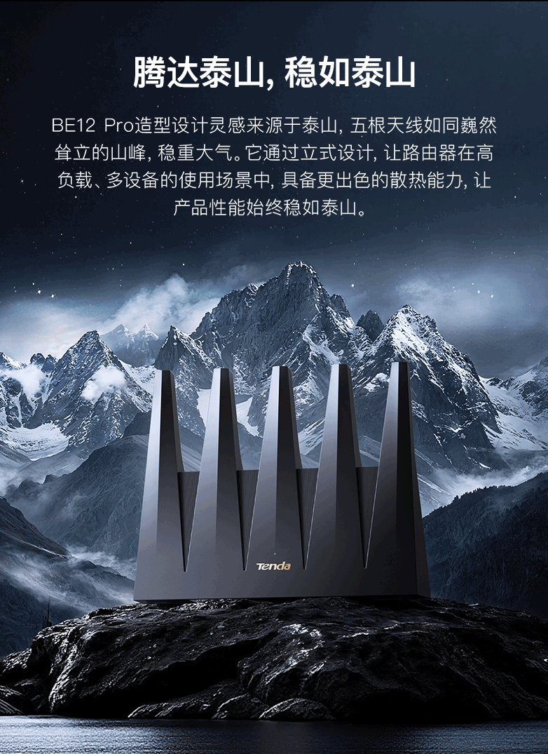Tenda腾达路由器WiFi7【泰山BE7200 Ultra】千兆穿墙王信号增强无线家用电竞放大器立式BE12 Pro