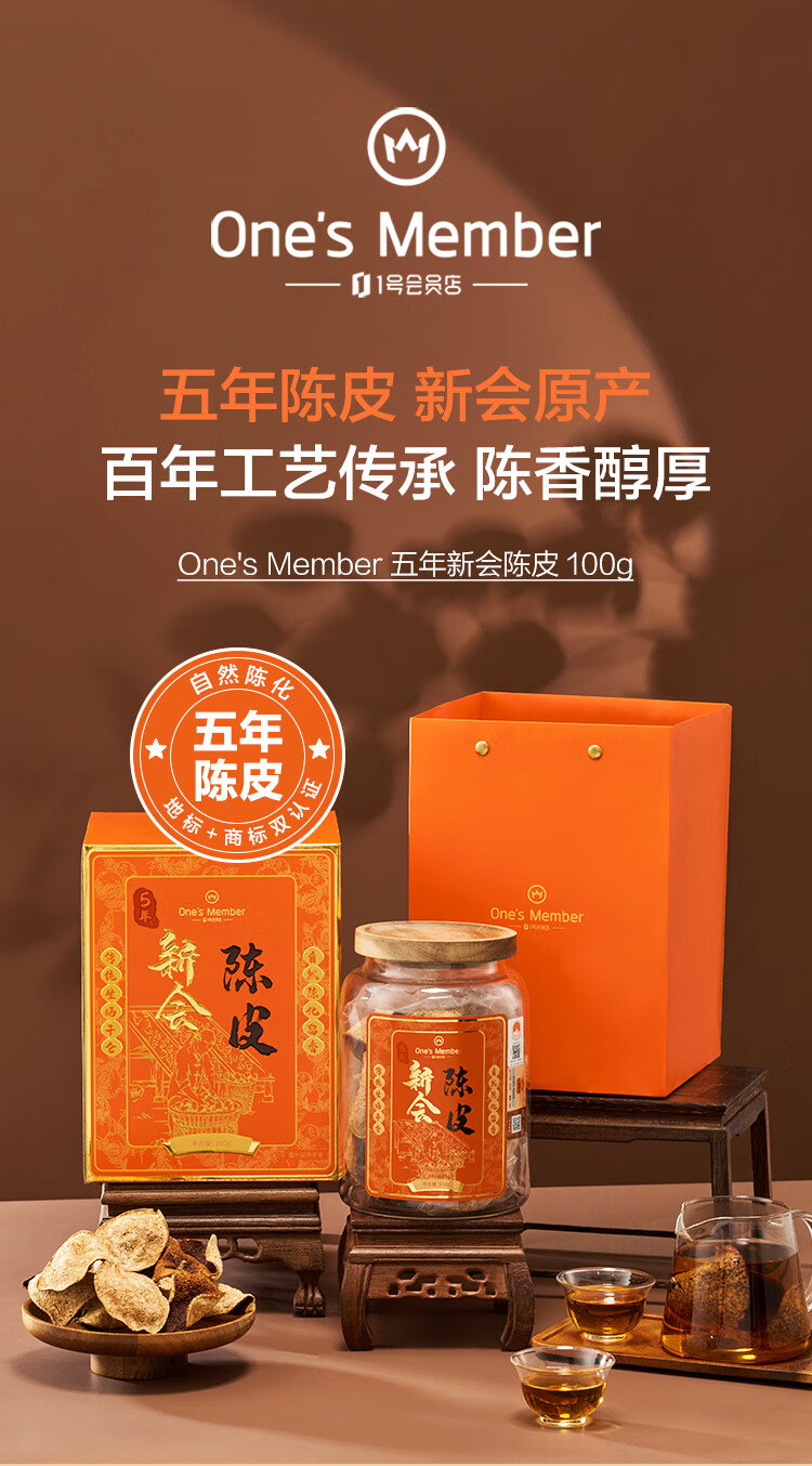 1号会员店地标商标认证5年陈皮100g 正宗传统生晒新会陈皮 送礼送长辈朋友