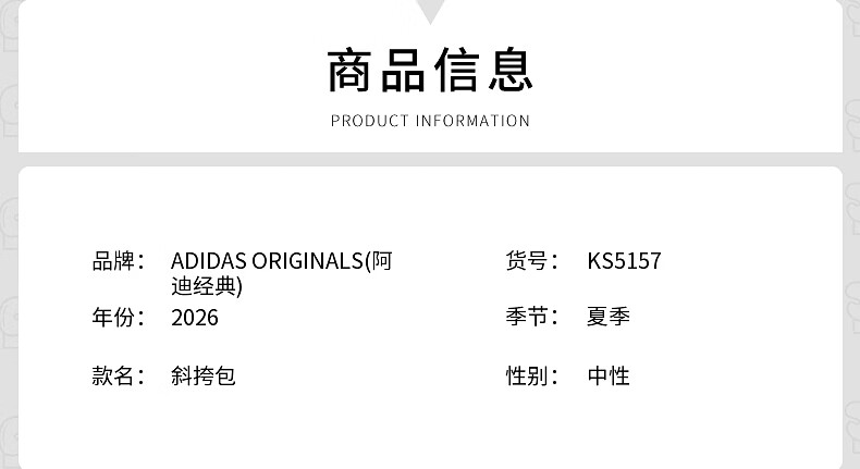 阿迪达斯(adidas)三叶草 2026夏季新款时尚百搭运动休闲斜挎包 KS5157 均 码 NS