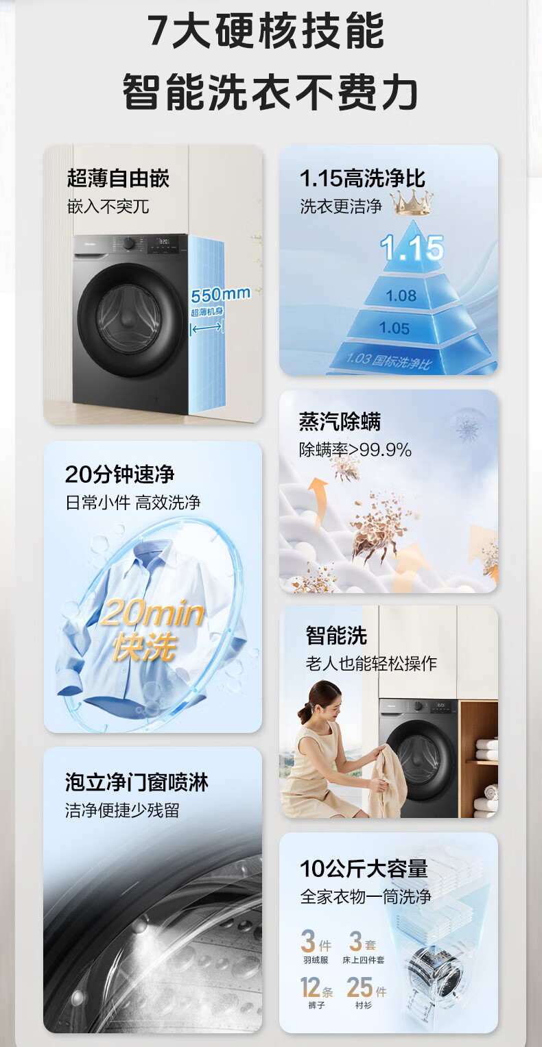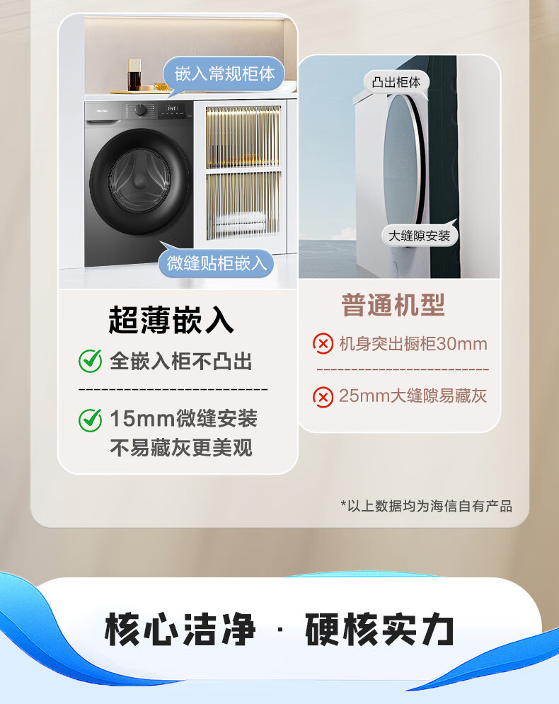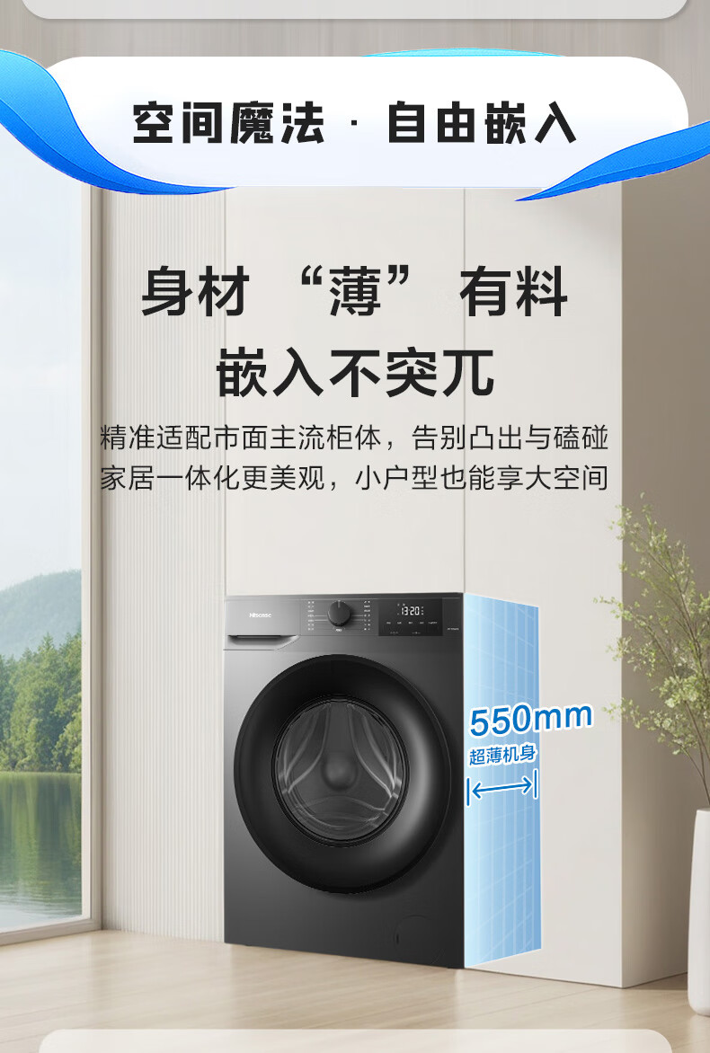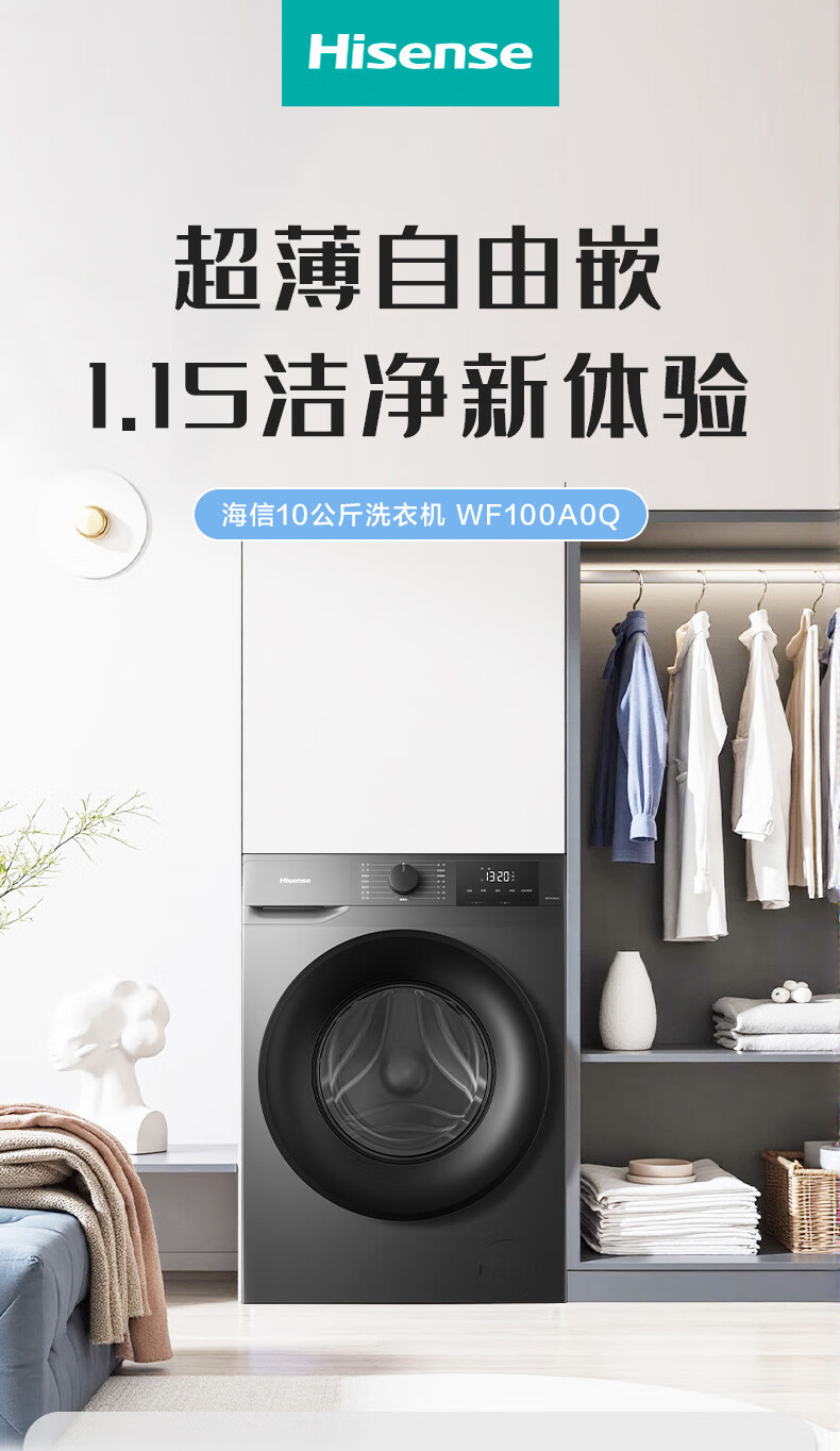海信(Hisense)全自动滚筒单洗洗衣机 10KG超薄高洗净比一级能效小型出租家用WF100A0Q以旧换新家电补贴 京东自营