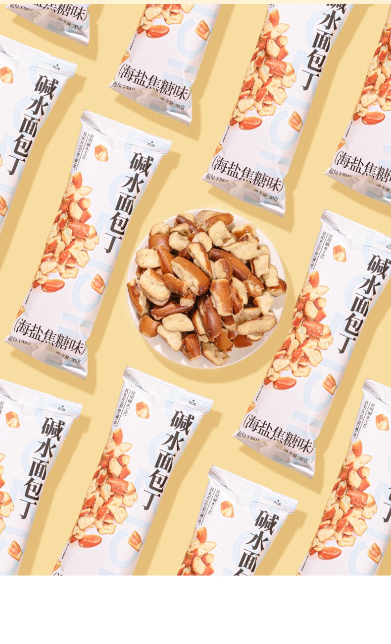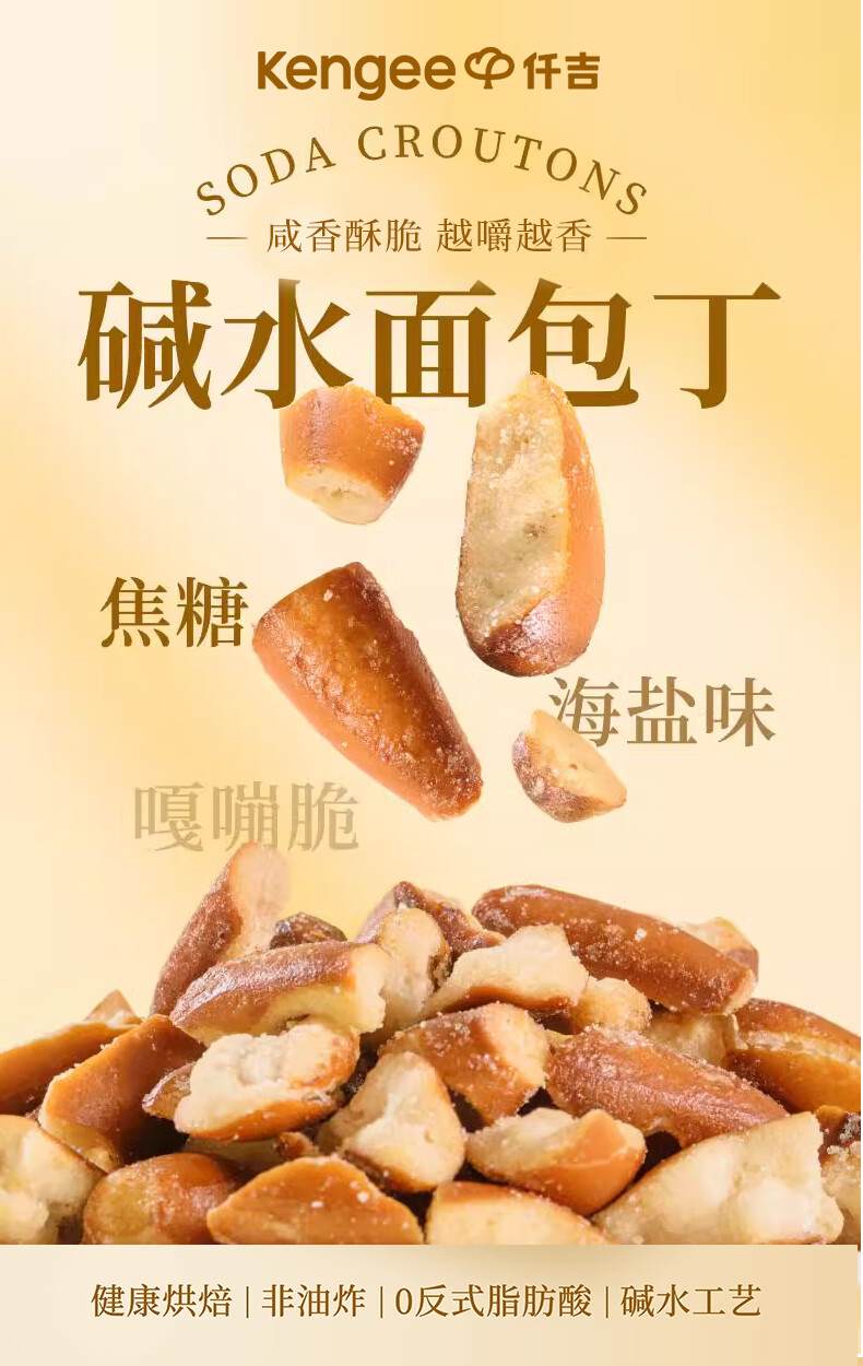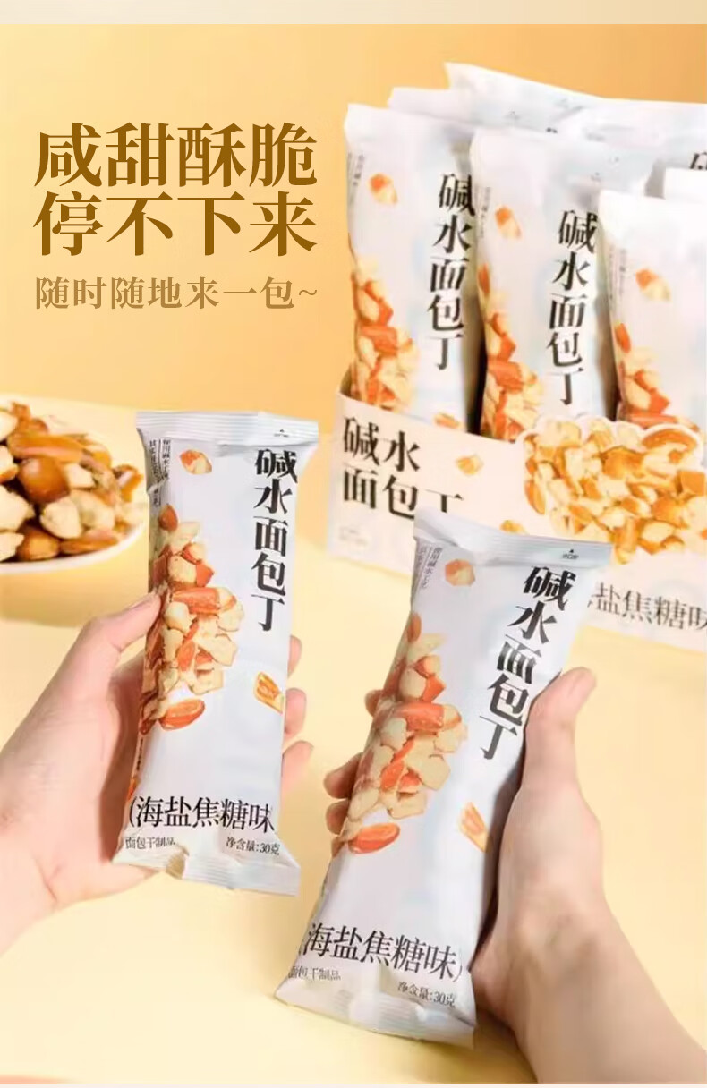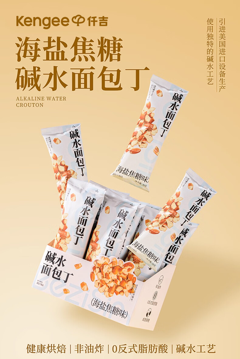 仟吉碱水面包丁海盐焦糖味酥脆饼干办公室零食休闲香脆干脆面咸香 【每袋仅3.15元】面包丁*6袋
