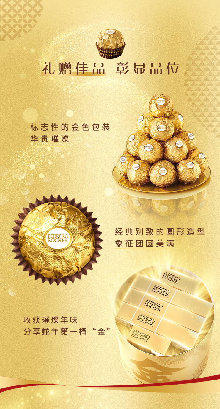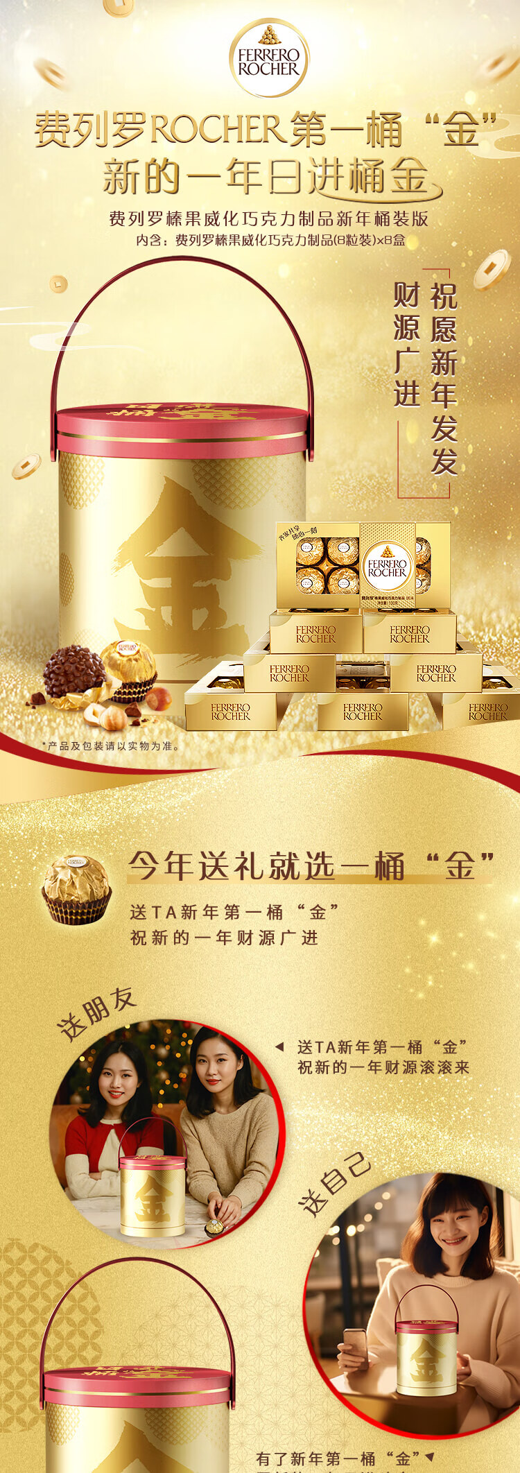 费列罗 巧克力发财桶礼盒 8粒*8盒800g 休闲零食 糖果 年货礼盒