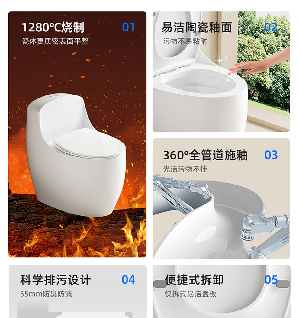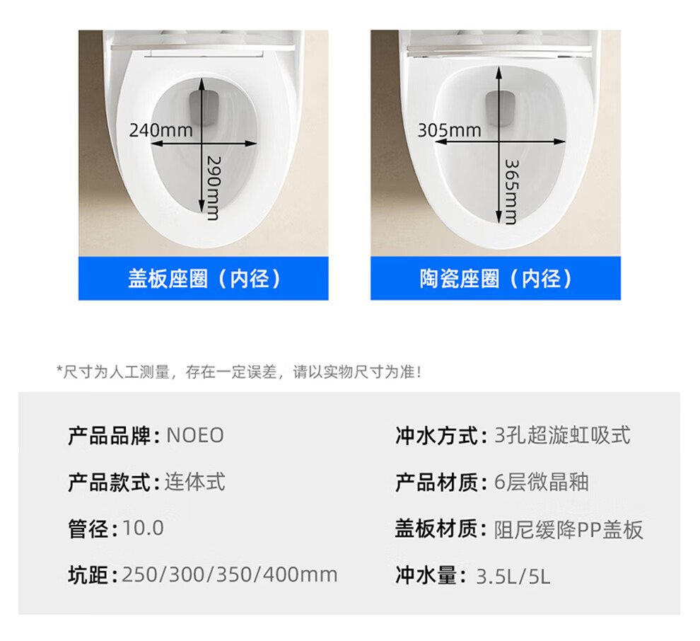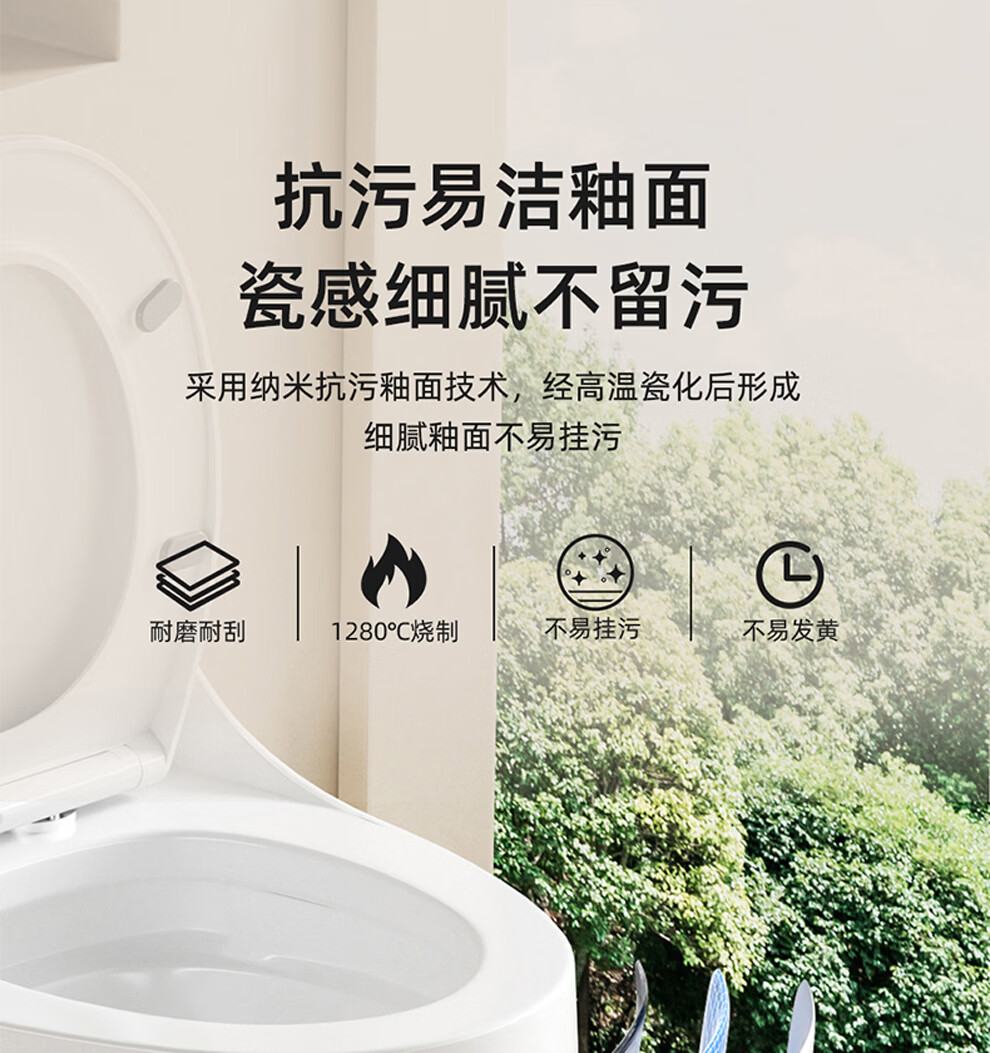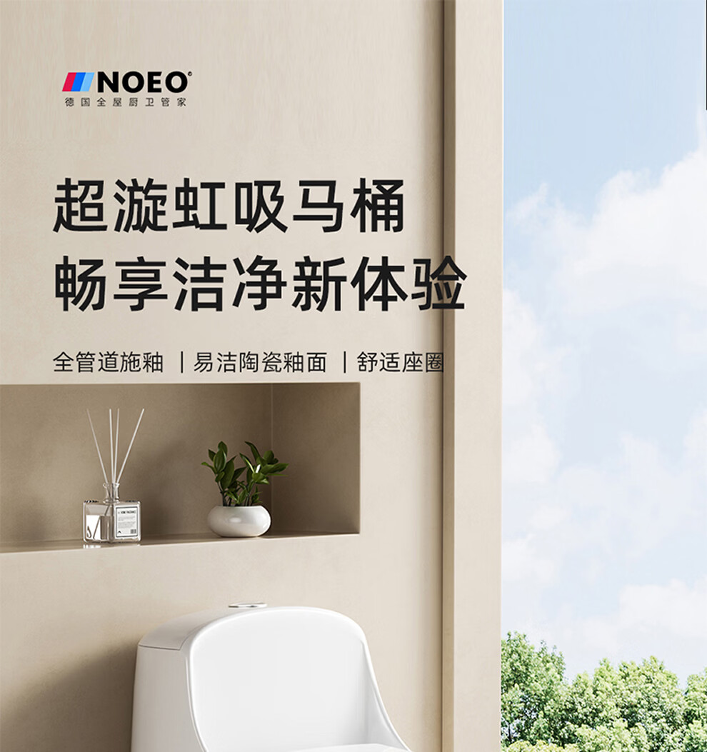 NOEO家用抽水马桶防溅水防臭防堵大口径静音缓降虹吸式陶瓷马桶座便器 纳米智洁釉+强劲虹吸+全管道施釉 250/300/350/400mm 下单联系客服备注