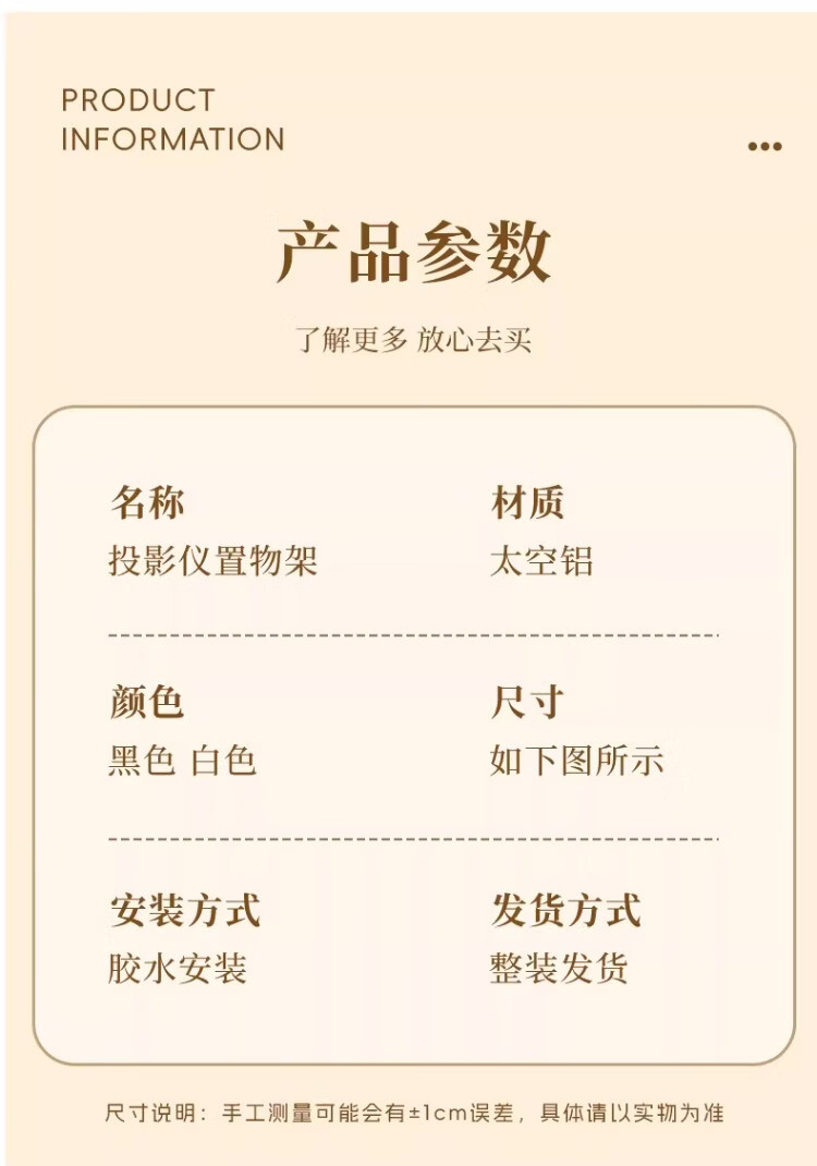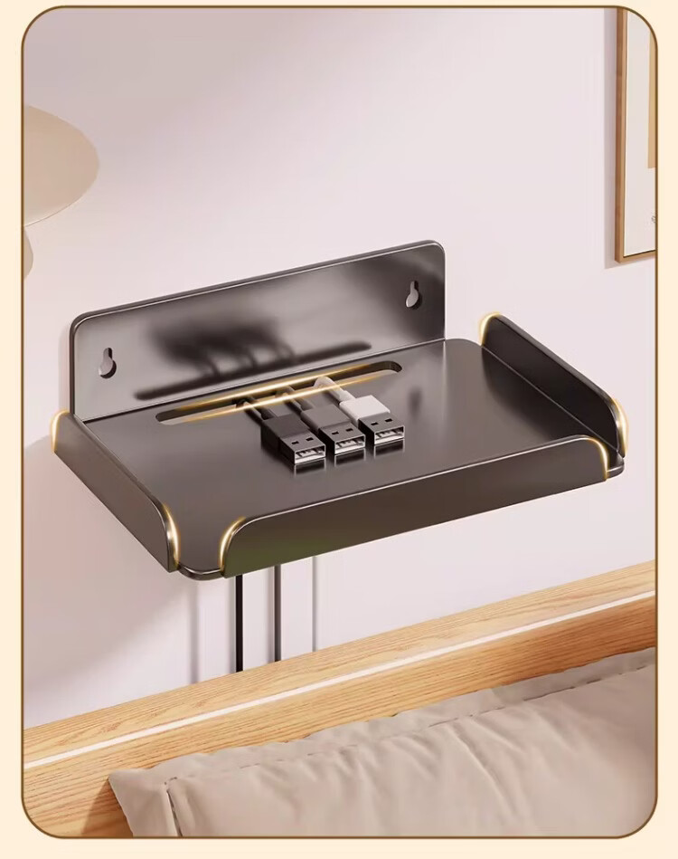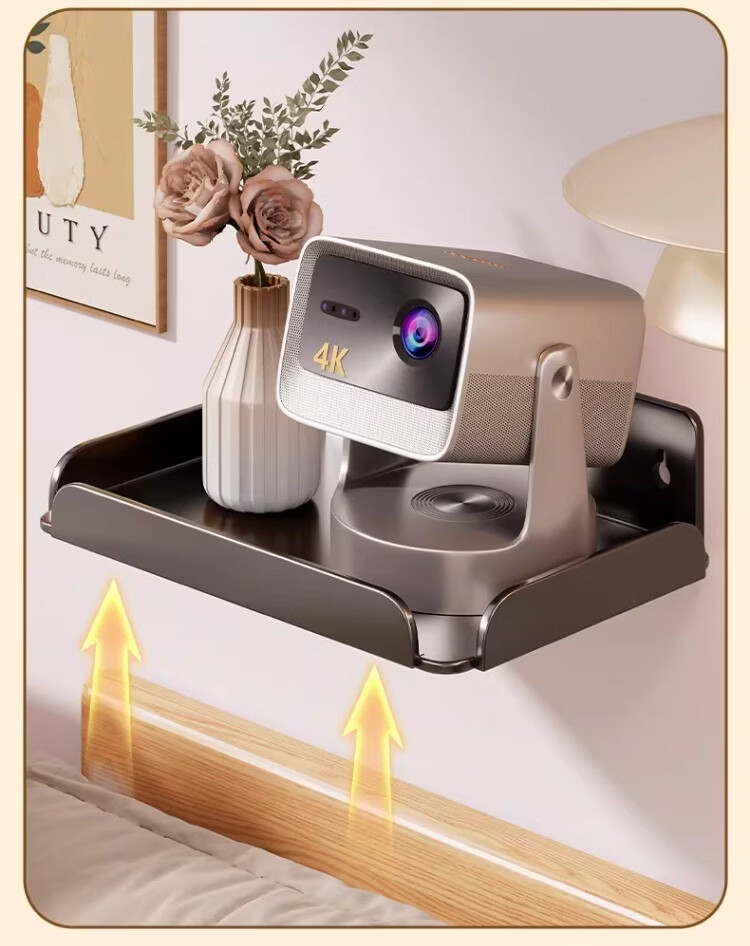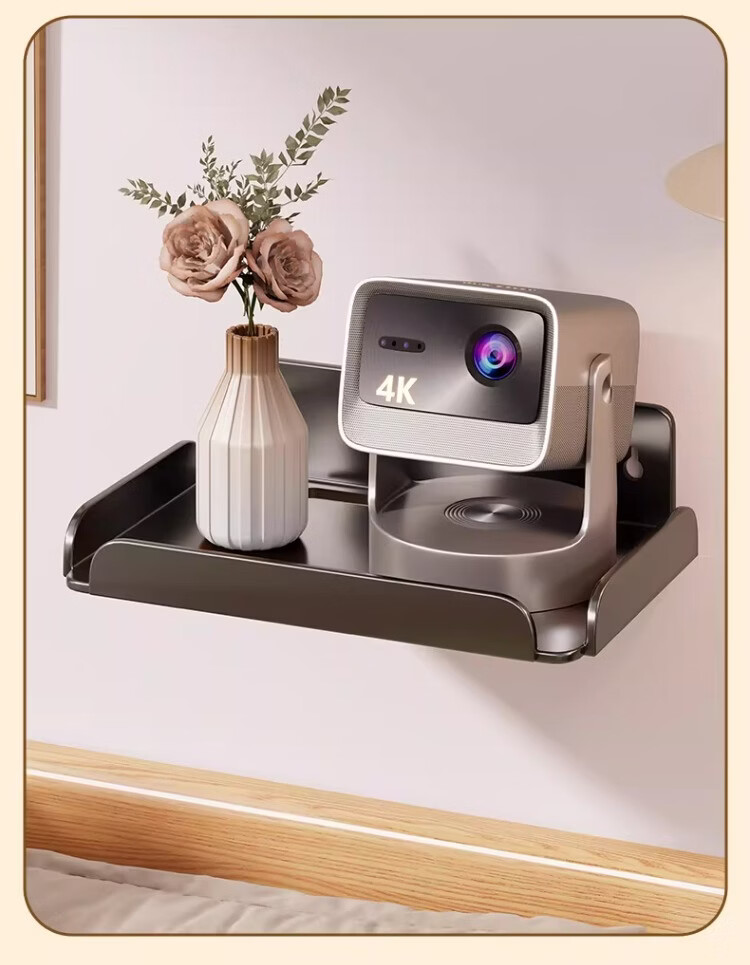 尔思家投影仪支架免打孔床头壁挂式卧室家用多功能墙上置物架多层托架 黑色大号【单个装】