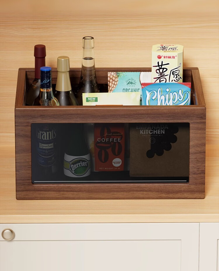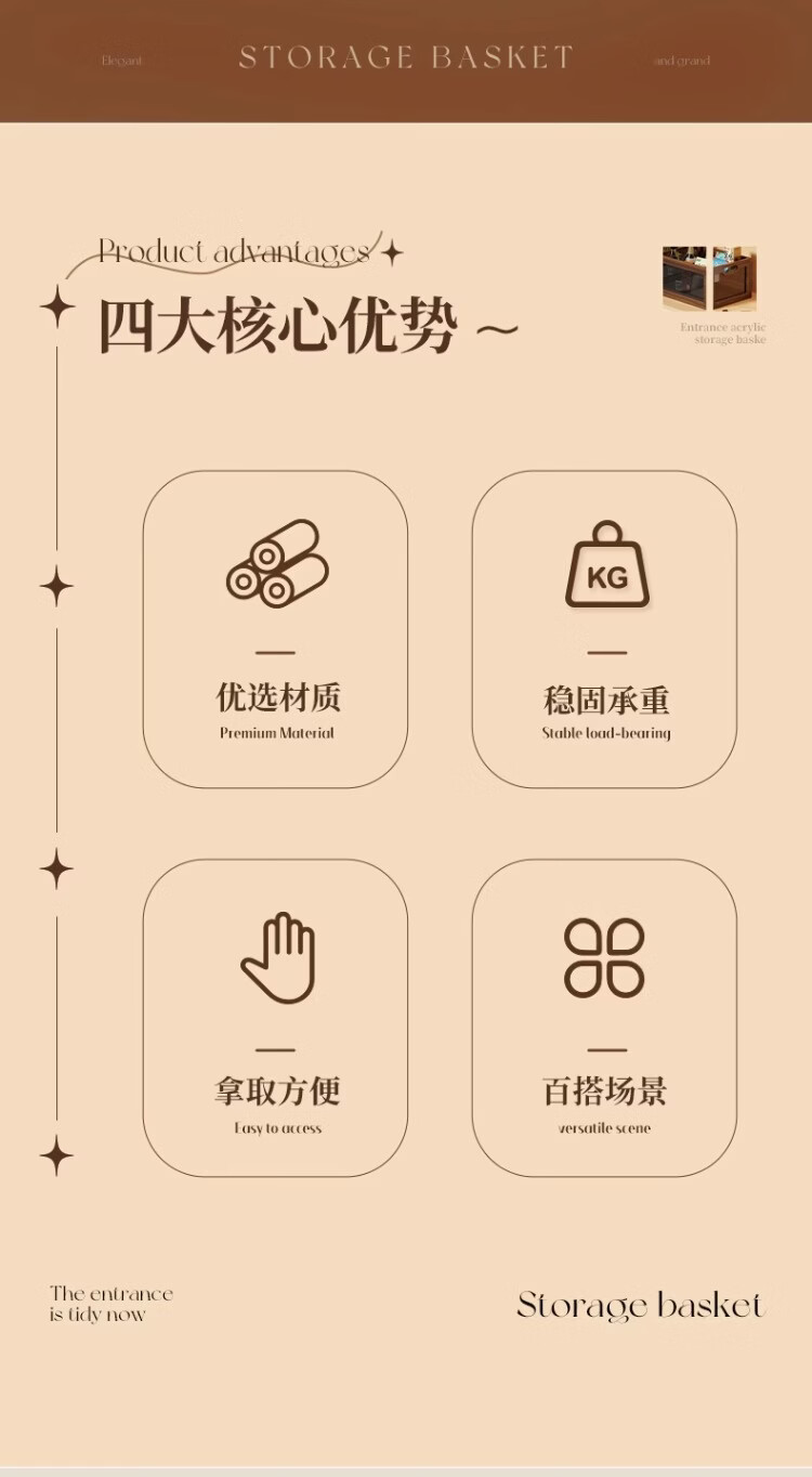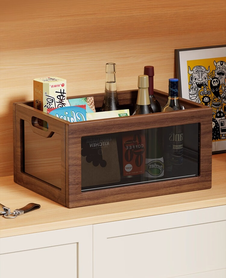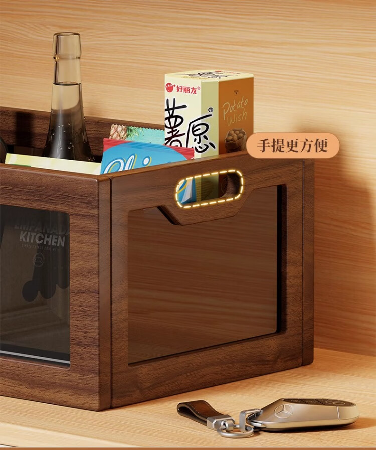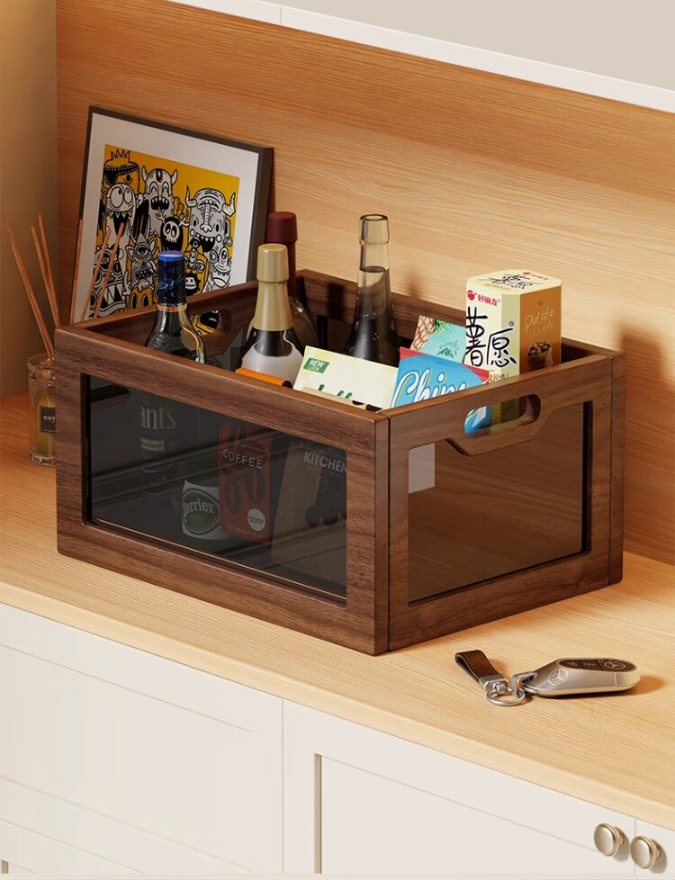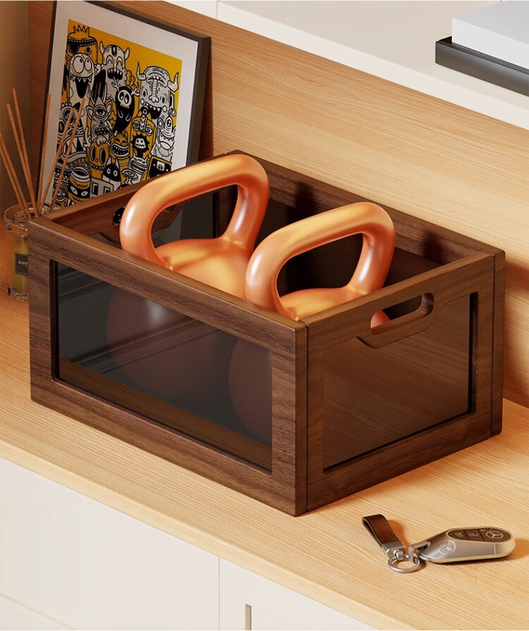 尔思家玄关收纳盒入户门口钥匙架实木置物架家用装饰摆件桌面杂物鞋柜上 胡桃-黑茶
