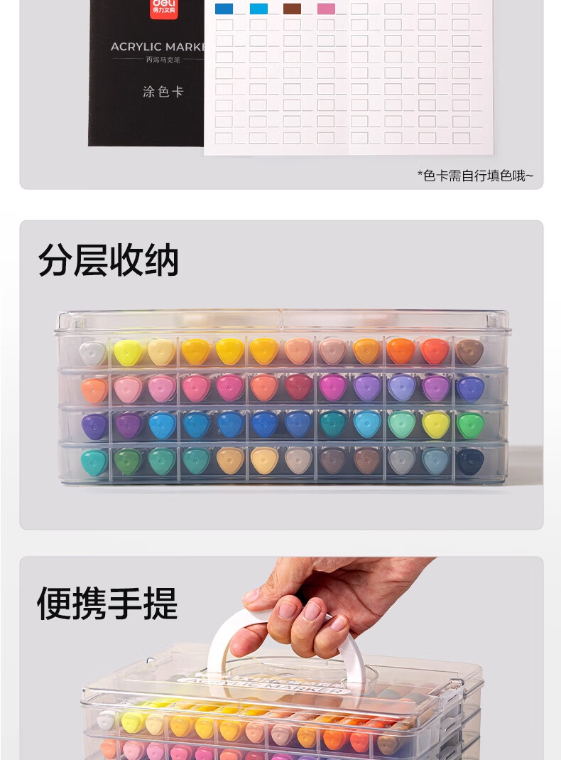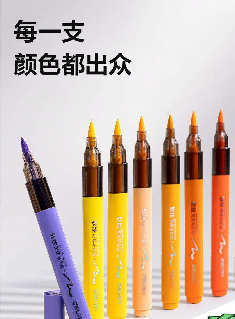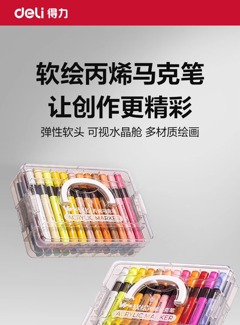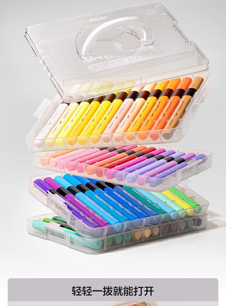 得力层叠盒丙烯马克笔25新款软头小学生美术不透色可叠色画笔儿童无毒水彩笔可水洗幼儿园彩色笔画画笔 【24色-层叠盒】圆杆-硬头丙烯马克笔