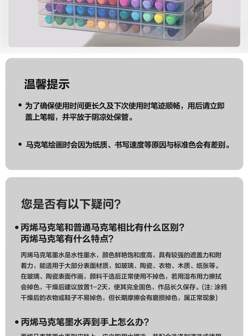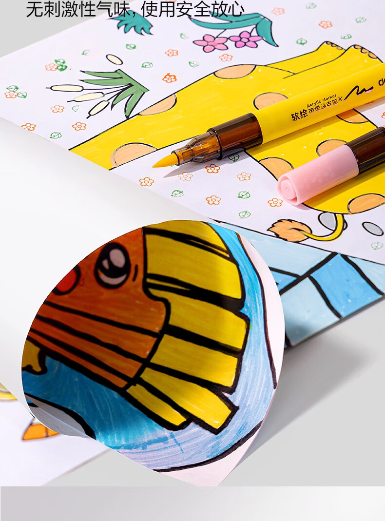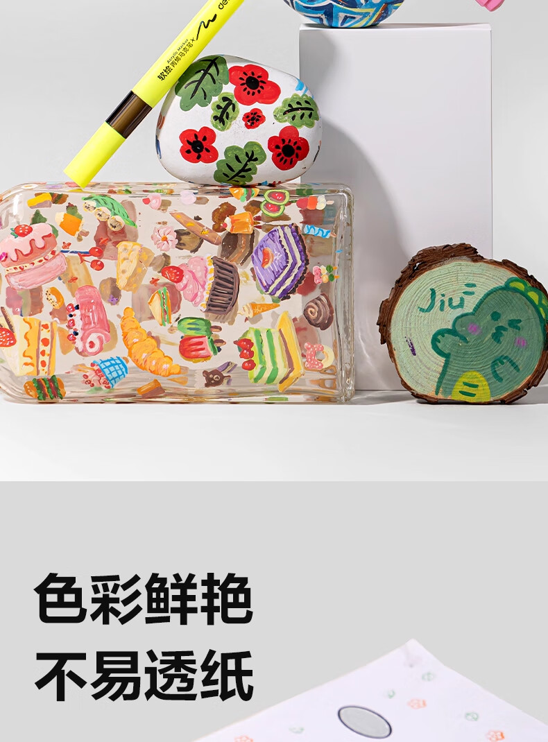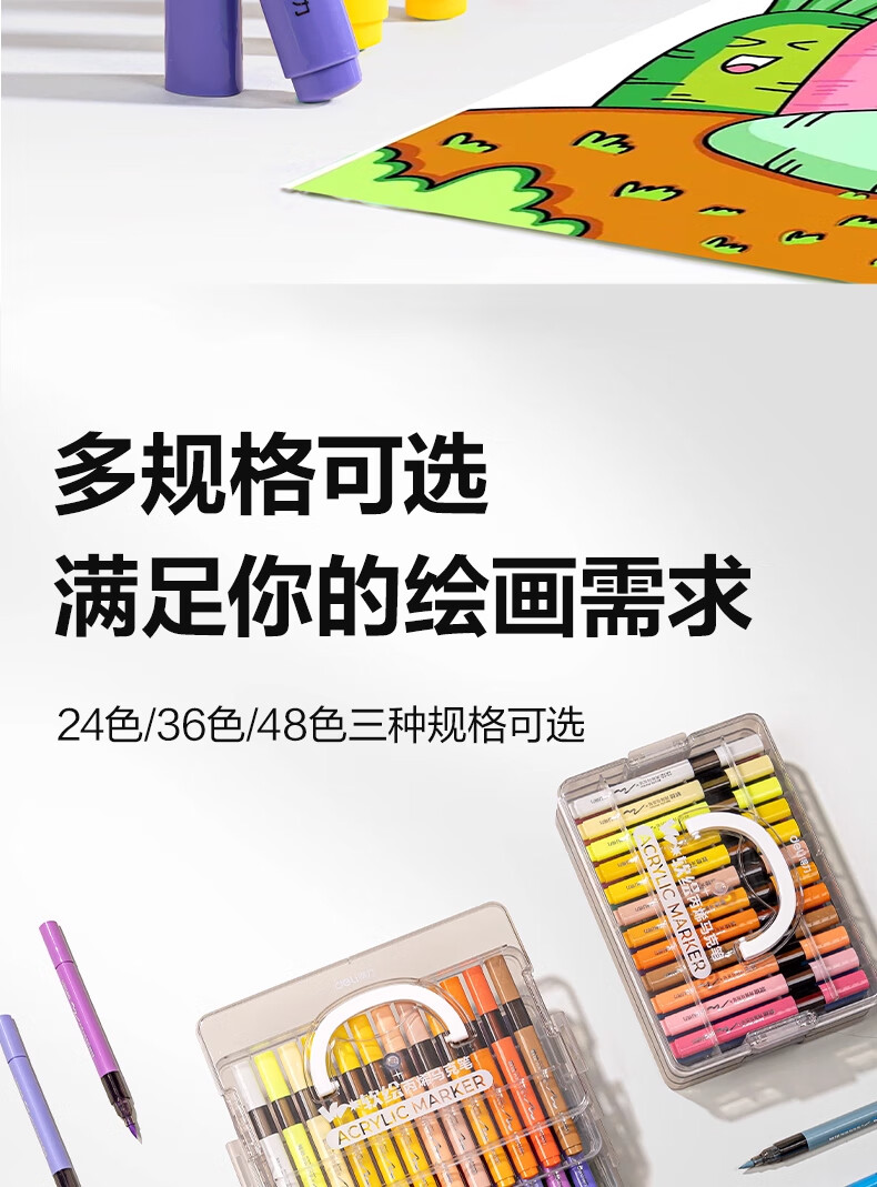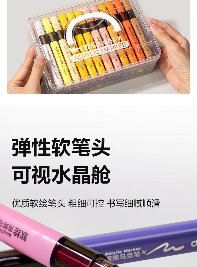 得力层叠盒丙烯马克笔25新款软头小学生美术不透色可叠色画笔儿童无毒水彩笔可水洗幼儿园彩色笔画画笔 【24色-层叠盒】圆杆-硬头丙烯马克笔