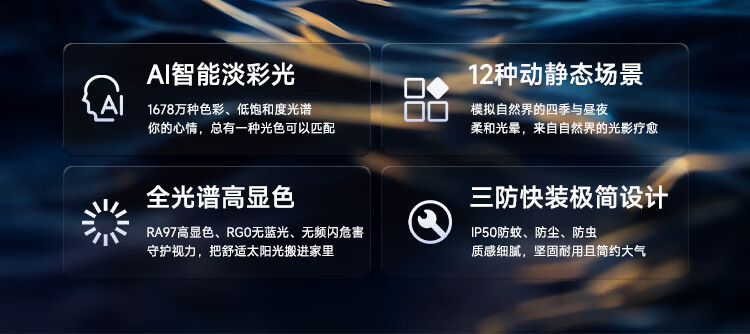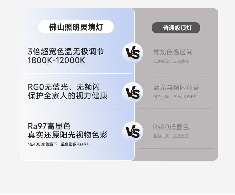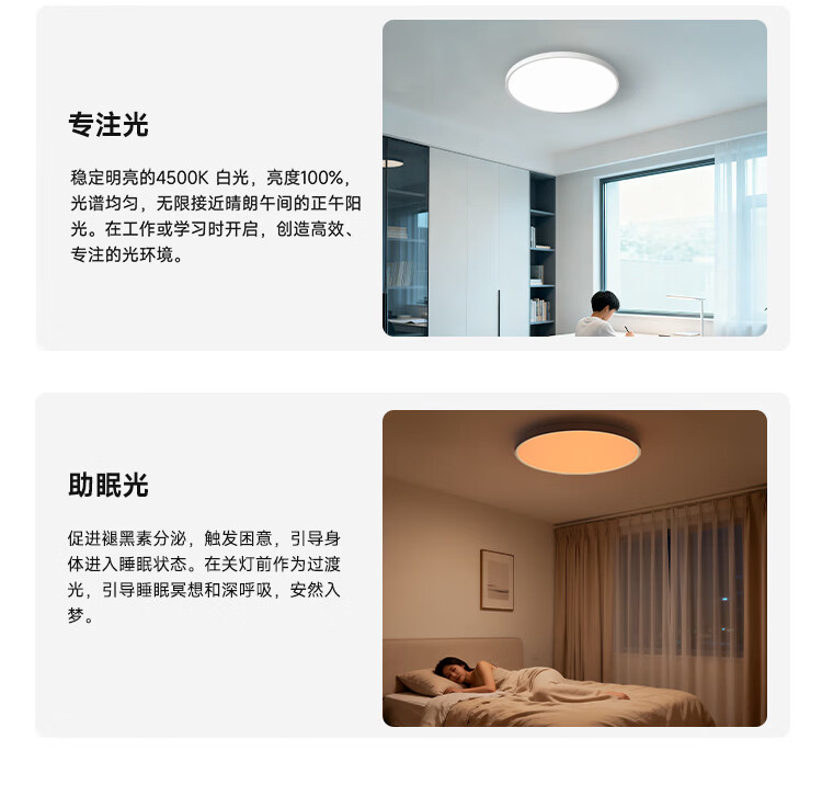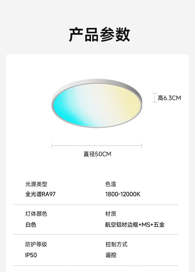FSL佛山照明 吸顶灯客厅卧室新款全光谱护眼全色域AI淡彩光极简快装 48W 12㎡内适用 2880lm 全色域