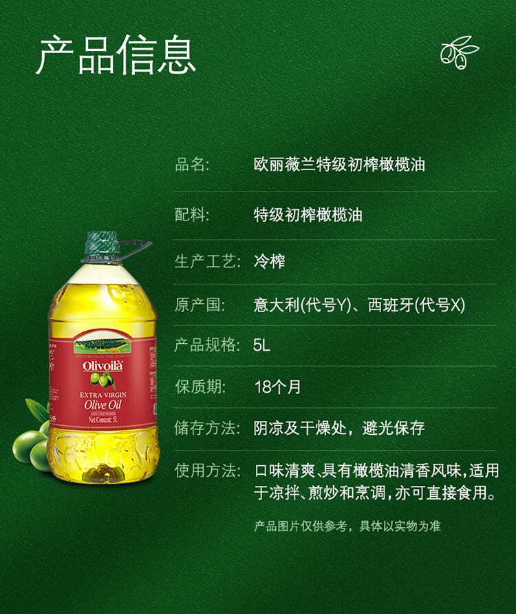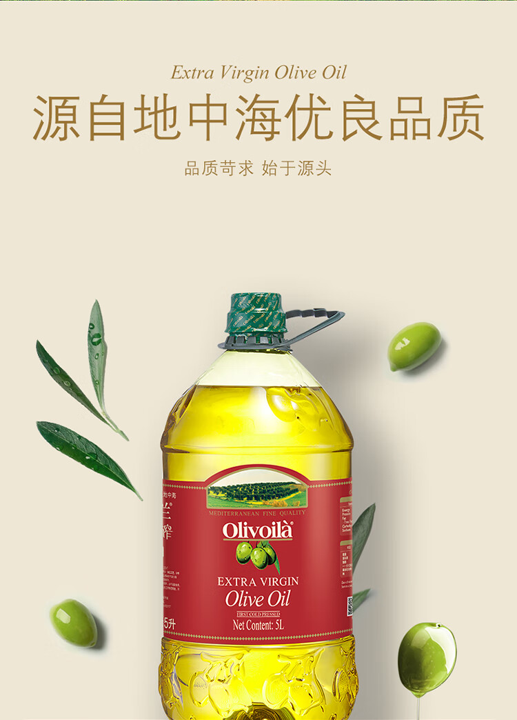 欧丽薇兰 Olivoila【保真橄榄油】食用油 特级初榨橄榄油5L