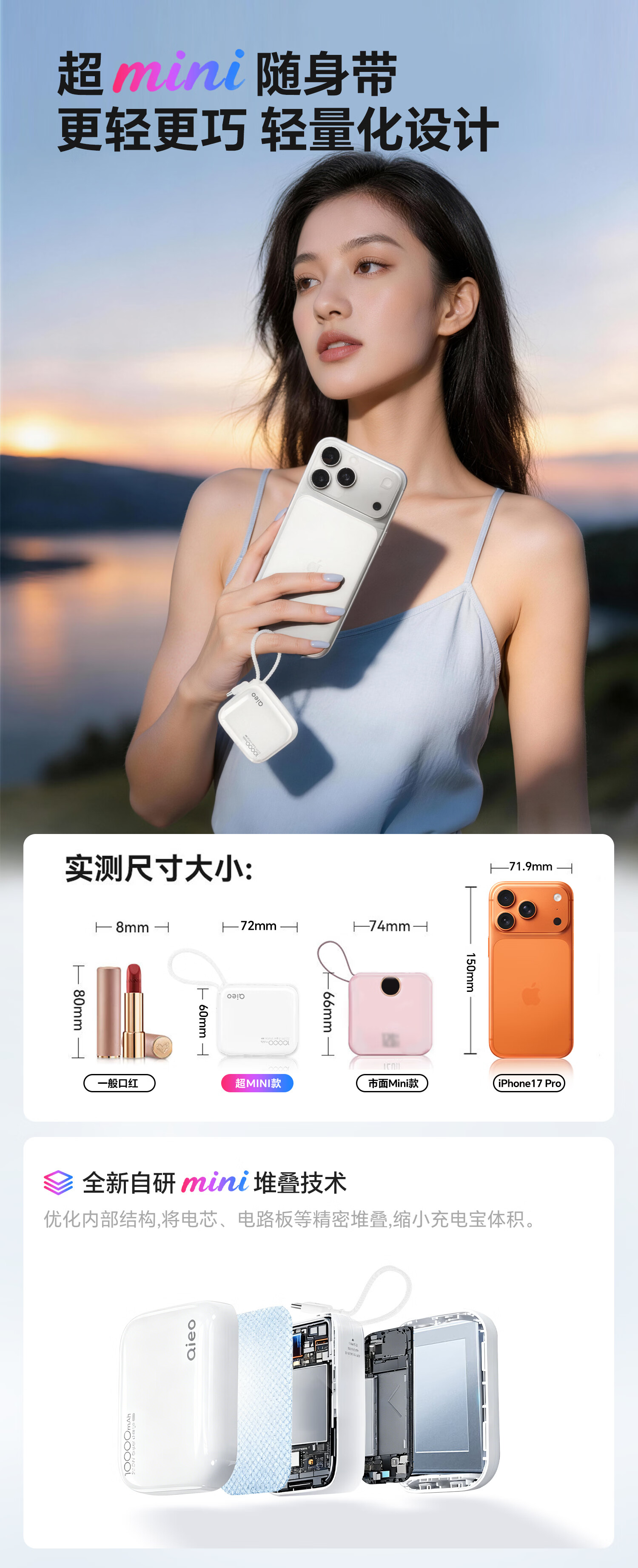 Qieo【新3c认证丨限量新品大促】充电宝20000毫安 可上飞机小巧便携自带线超大容量 快充小米华为苹果 新3C【20000mAh|大容量】旗舰版 云雾白